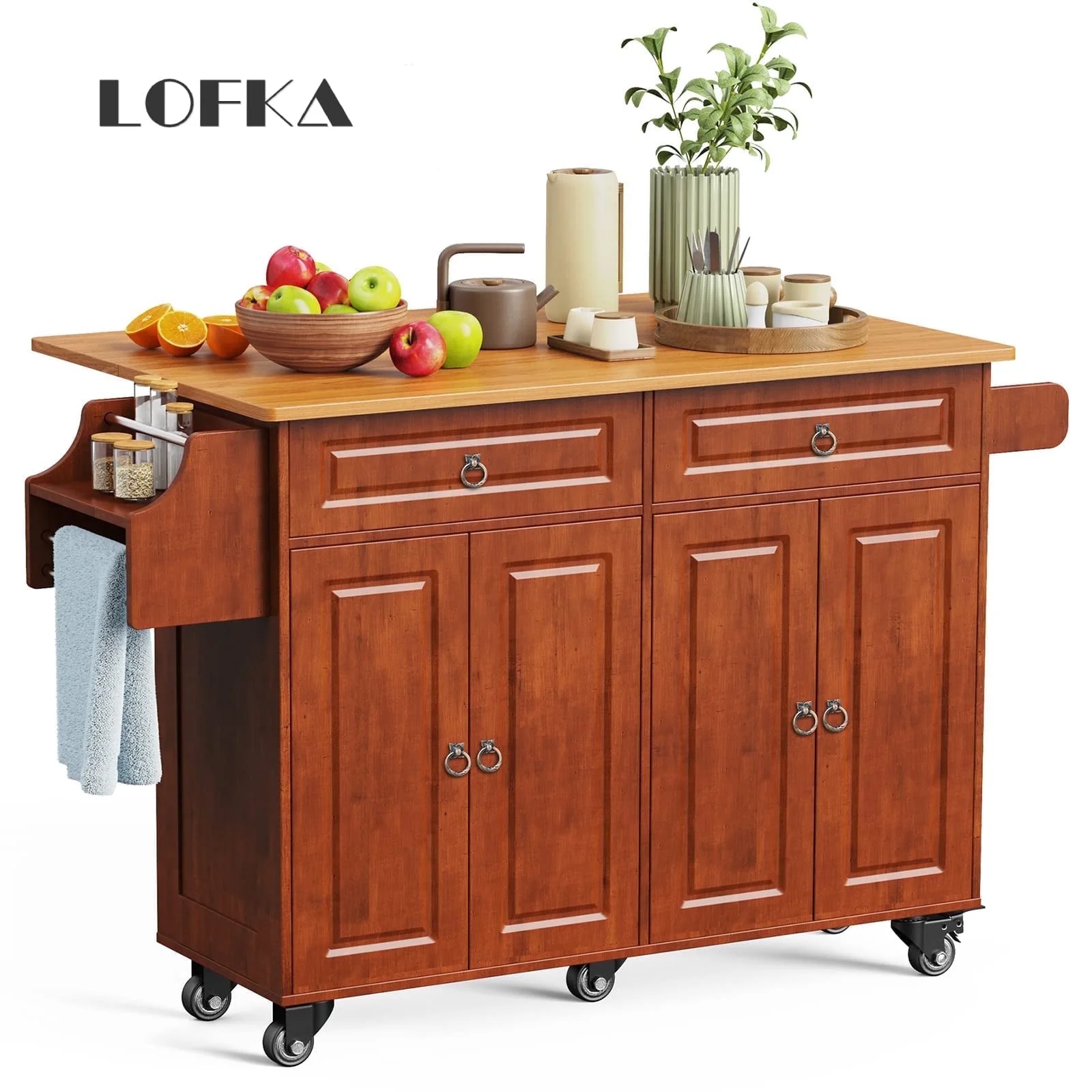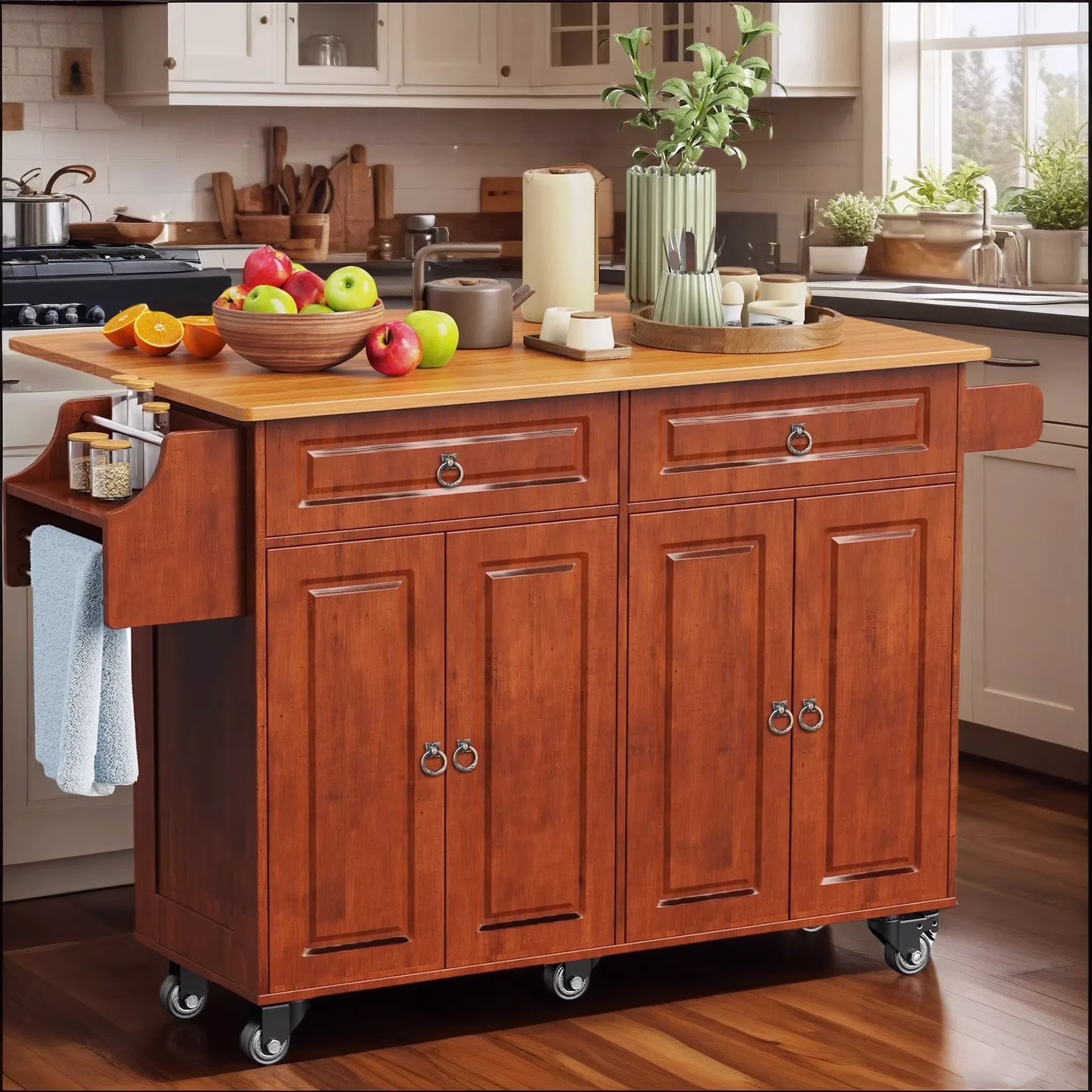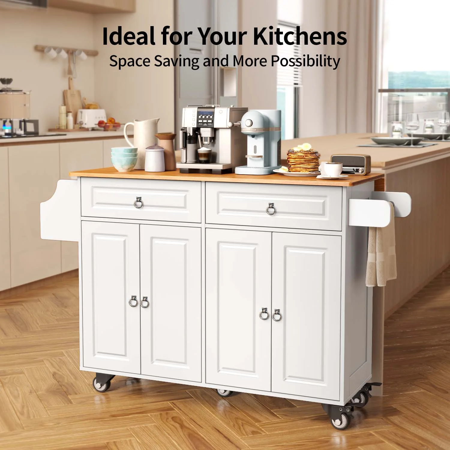 ??Solid & Sturdy Kitchen Cart - Premium MDF material and rubber wood tabletop add a durable and eco-friendly advantage to this island table for kitchen to last for long years with longer lifespan. Special paint surface also makes it sturdier to firmly hold the items with a high capacity of 150 lbs for the main top.