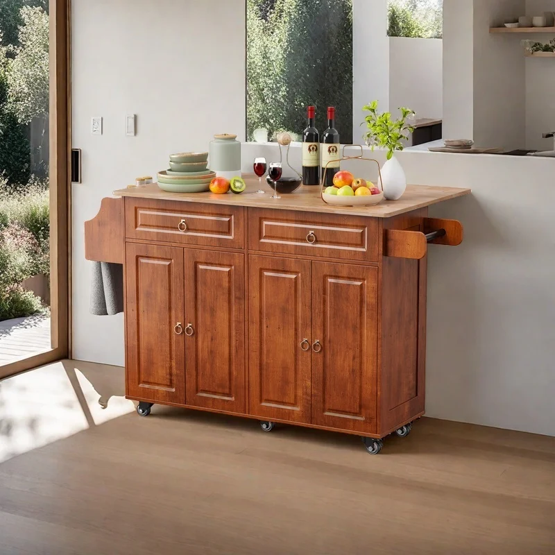 ??Two Locking Wheels - The kitchen island cart is designed with 4 smooth wheels,including two locking wheels to meet your desire of moving everywhere and stabilize. Big premium rubber-made wheels allow you to move on the ground without too much noise for better move.