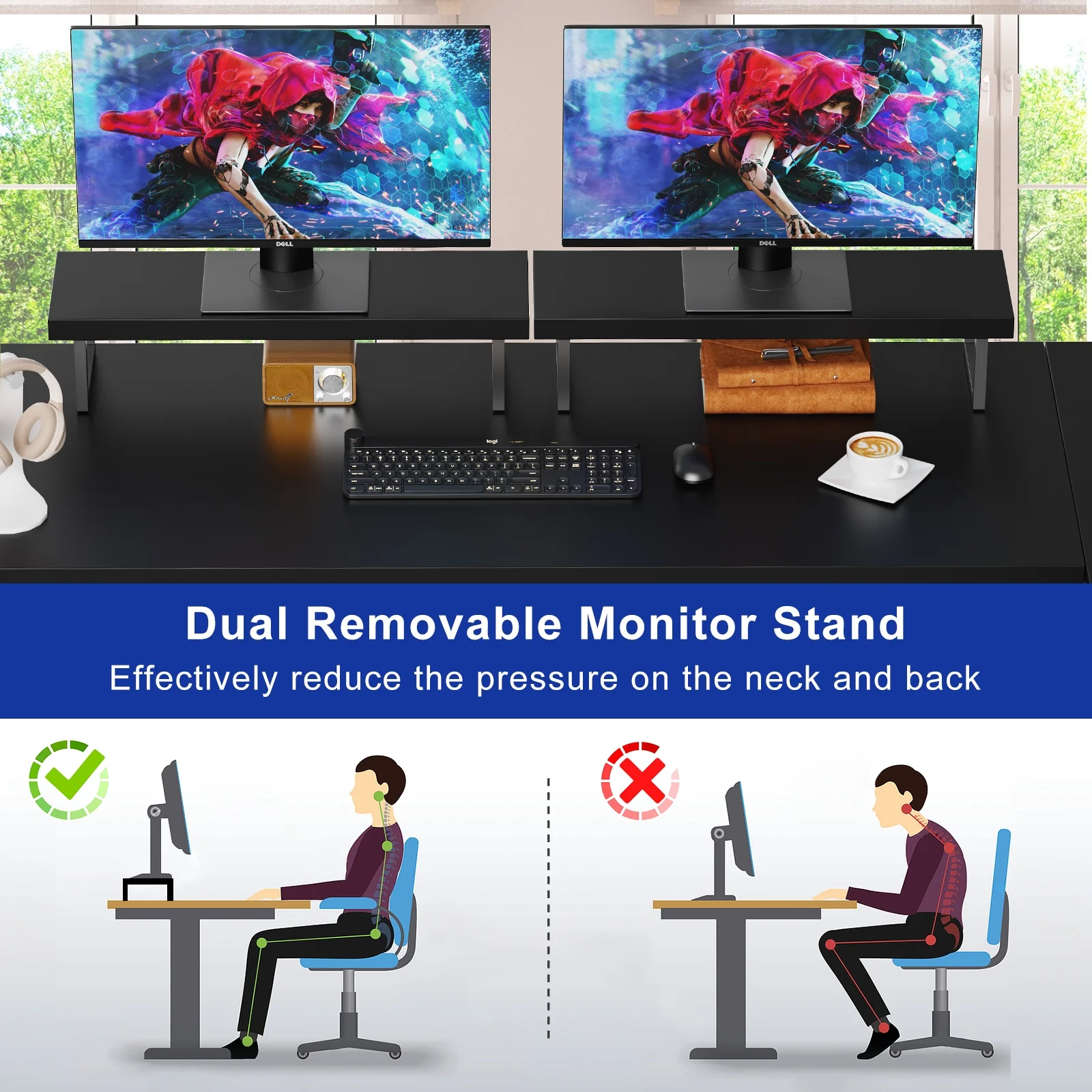 ??Dual Monitor Stand with Ergonomic Design: The built-in dual monitor stands raise your screens to eye level, encouraging correct posture and alleviating tension in your neck and back during prolonged periods of work or leisure.
