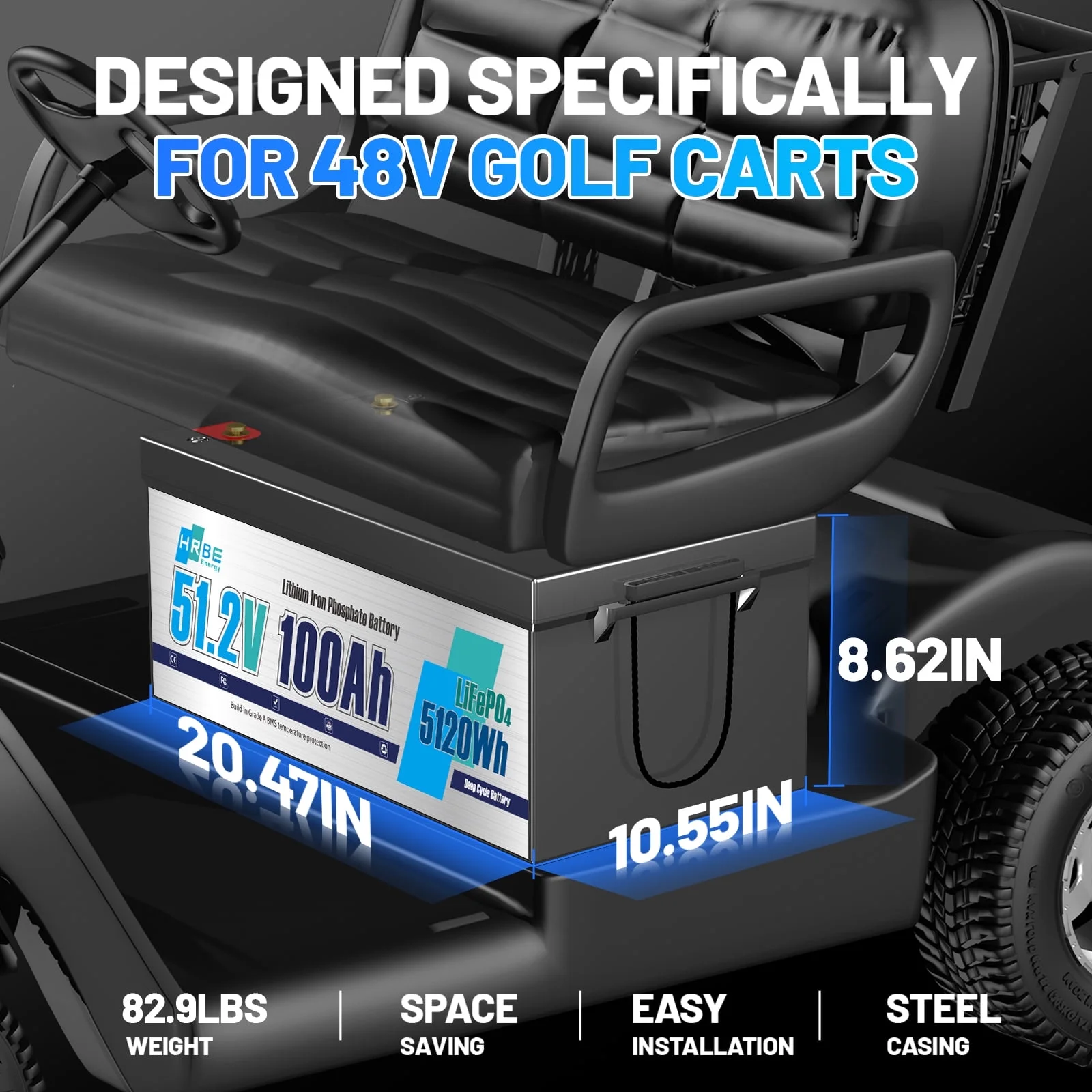 - HRBEENERGY 48V lithium batteries for golf carts are the perfect choice for lead-acid battery conversion and upgrade, they are 30% smaller and 63% lighter than ordinary lead-acid batteries, with 3-5 times higher energy density, which improves the maneuverability and performance of golf carts.
