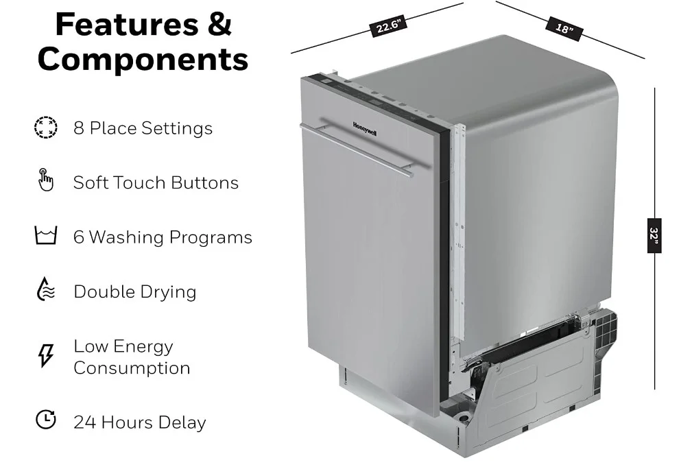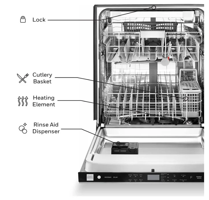 - MULTIPLE FUNCTIONS: There are 6 washing programs to choose from- heavy, normal, eco, glass, rapid, and rinse.