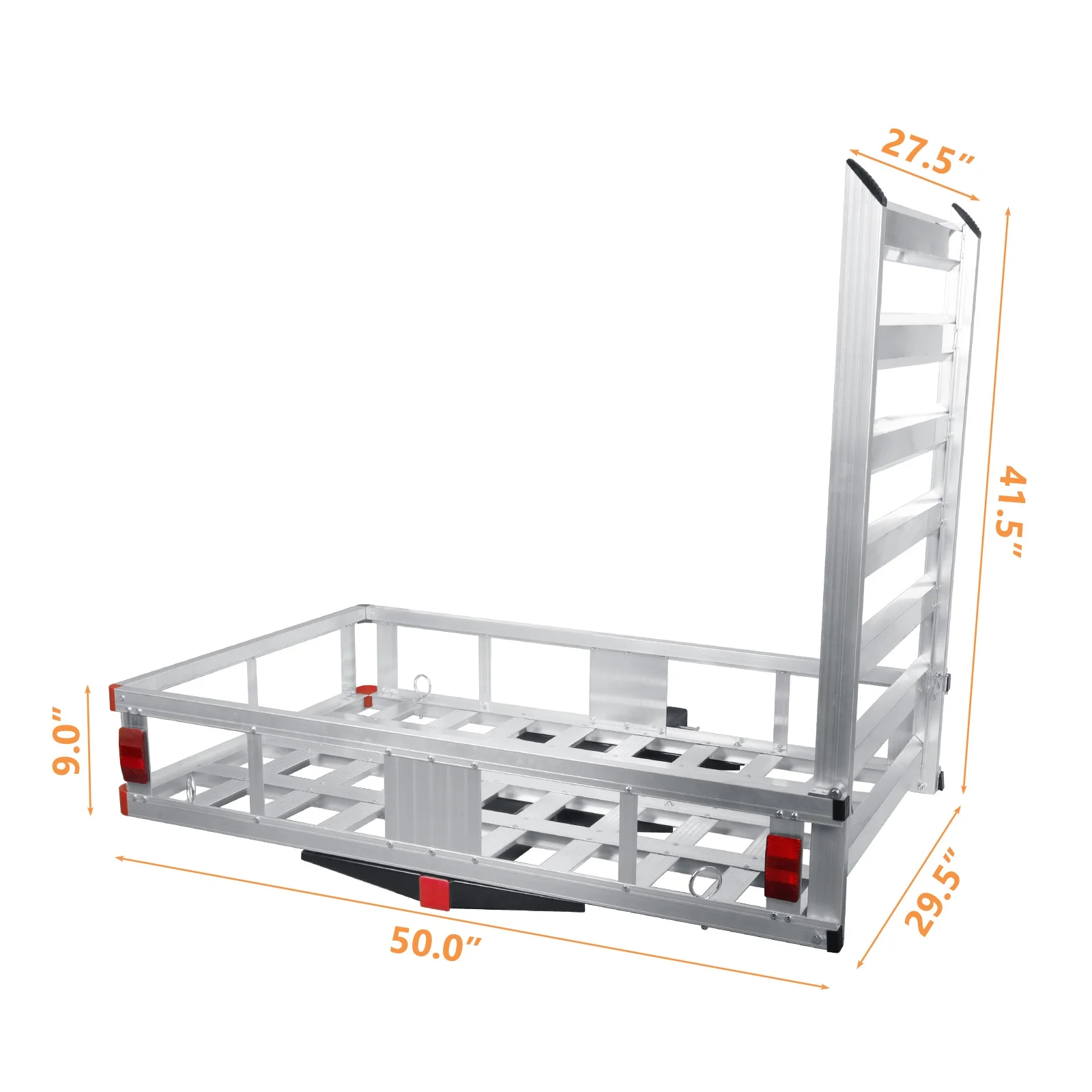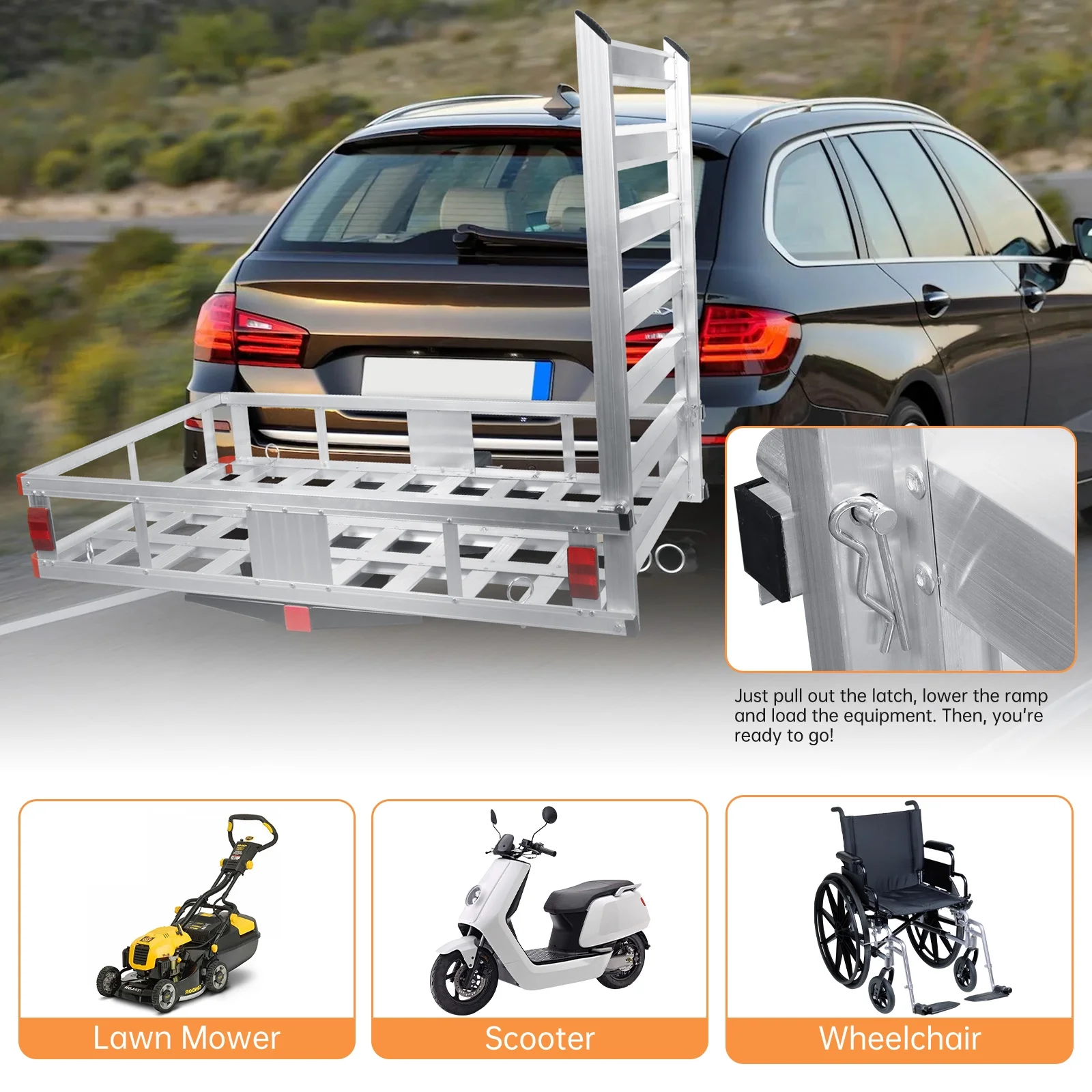 - [Folding Ramp System] Auxiliary ramp mechanism allows for one-handed unfolding and secure locking. The slotted traction surface and side rails prevent slipping during loading, while the low-angle slope greatly facilitates the movement of heavy items.