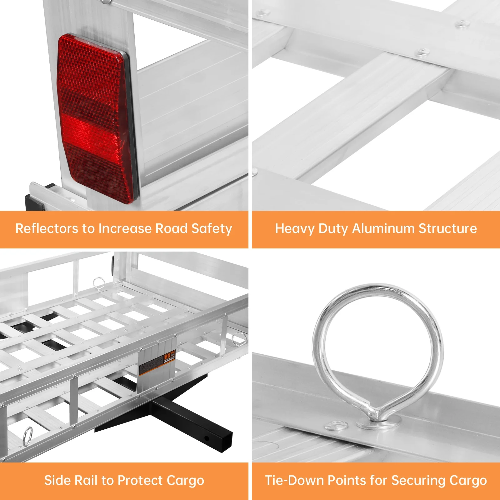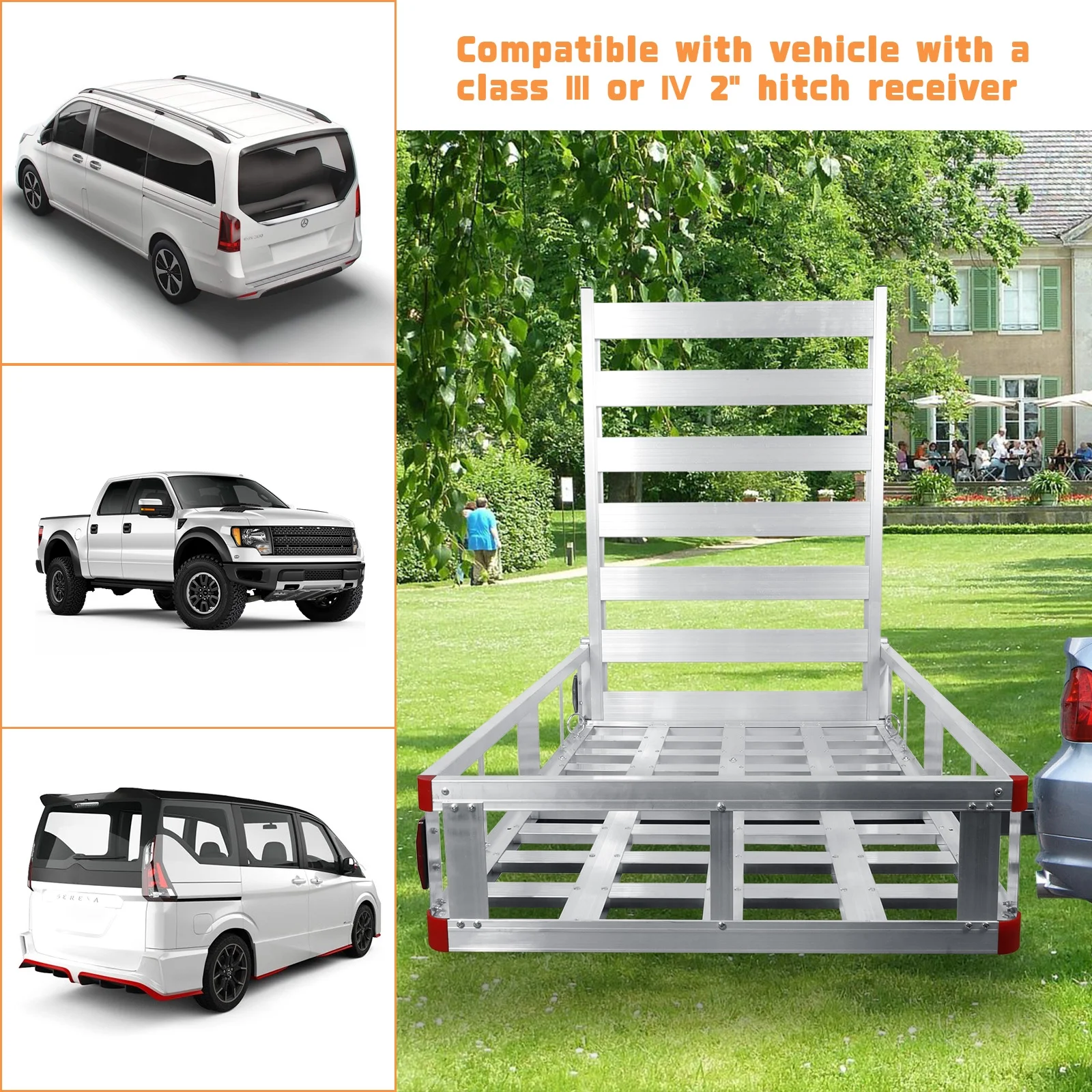 - [For Safety] Reflective panels improve nighttime visibility, and raised side rails and adjustable tie-down points prevent cargo movement. Anti-rattle hitch connection keeps it stable at high speeds.