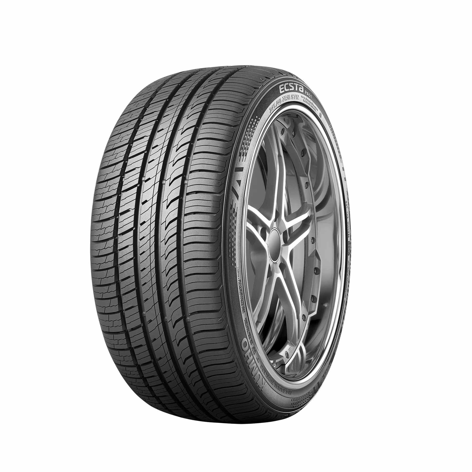 The Ecsta PA51 from Kumho is an all-season, high-performance tire that's designed for use on passenger vehicles and features a stiff rubber compound that boosts handling and wear performance. Backed by a 45,000 mile limited manufacturer tread life warranty, the Ecsta PA51's variable pitch tread design reduces road noises and vibrations to create a quiet, comfortable ride for drivers and passengers.