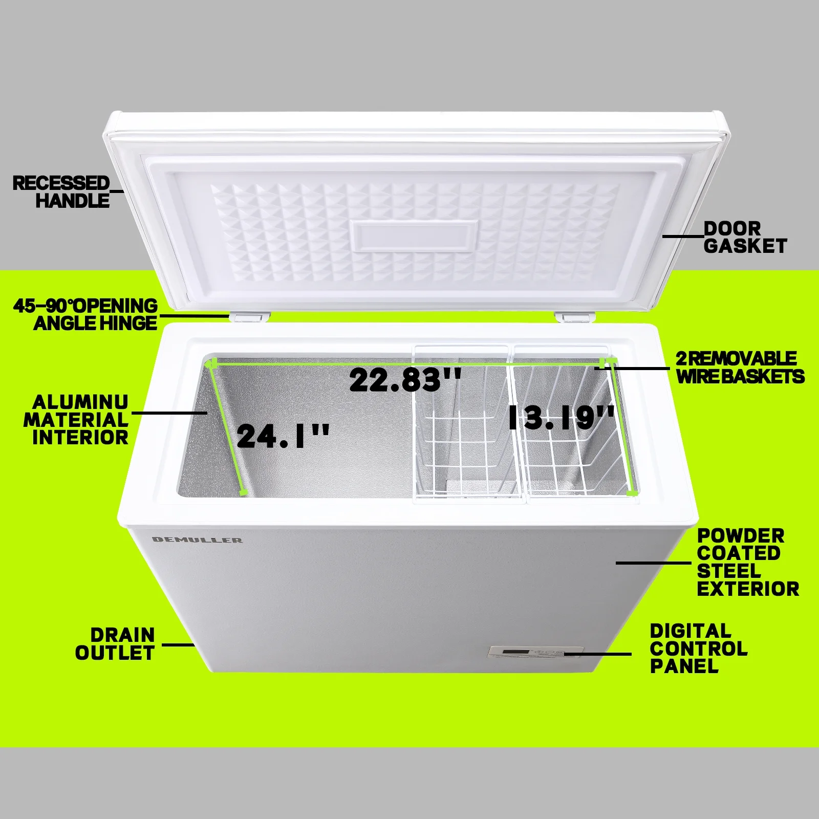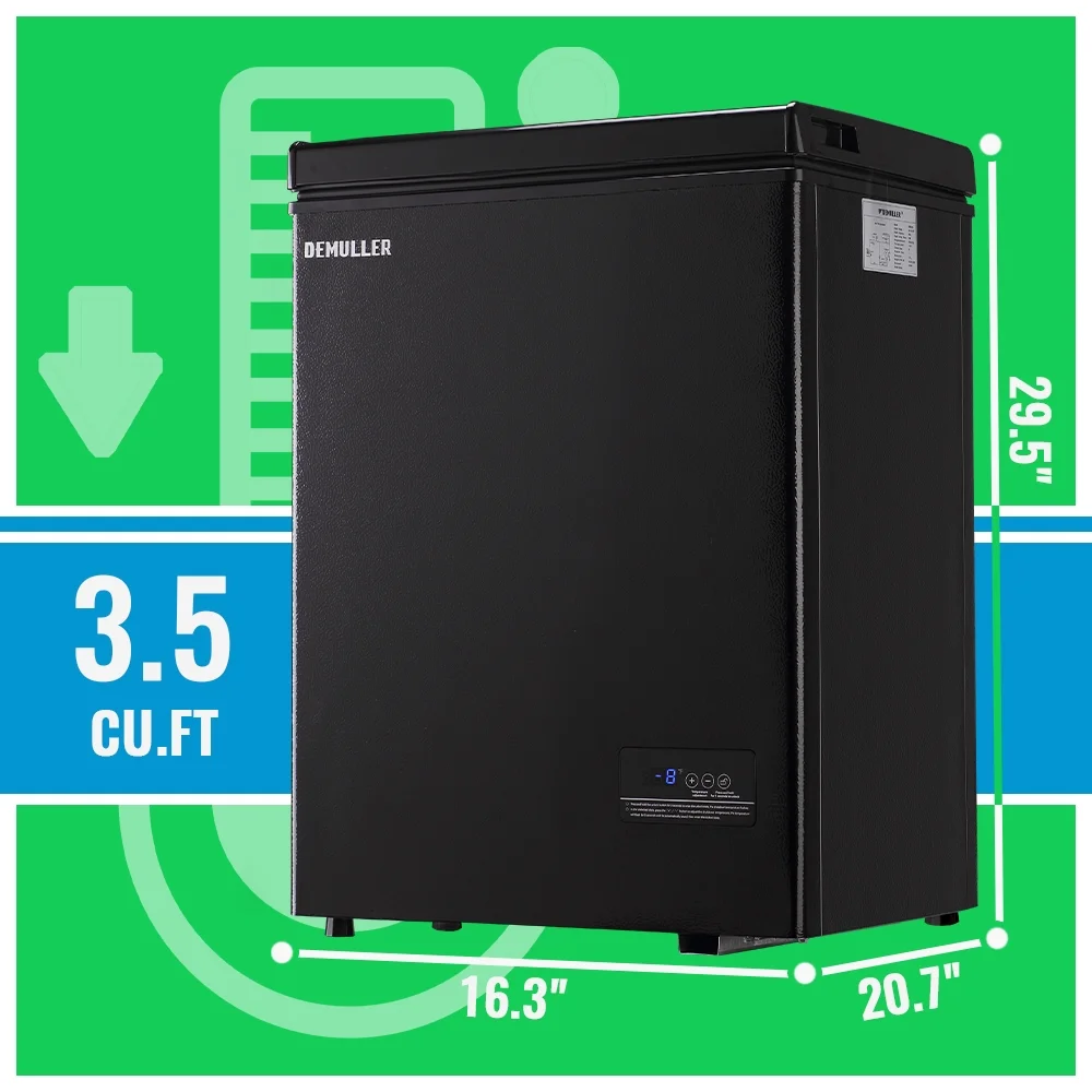 Chest Freezer with 3.5 Cu.ft of storage space, 20.7"D x 16.3"W x 30"H, can hold food for a couple, compact size can fit in any small space.