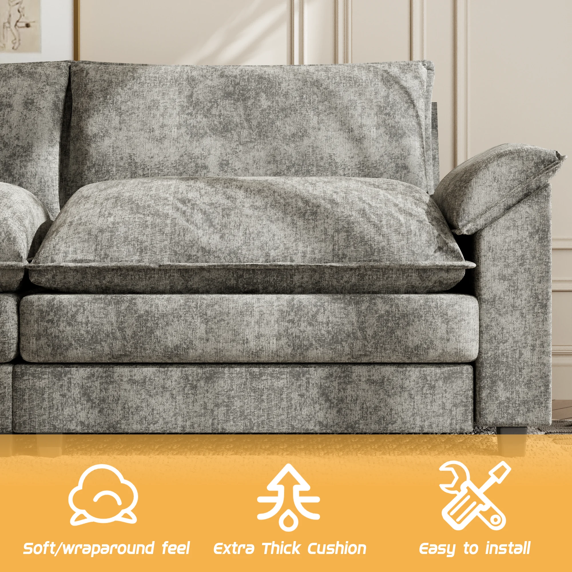 With its reconfigurable sections, this sofa allows you to arrange the seating as needed, providing adaptable comfort for various settings and occasions