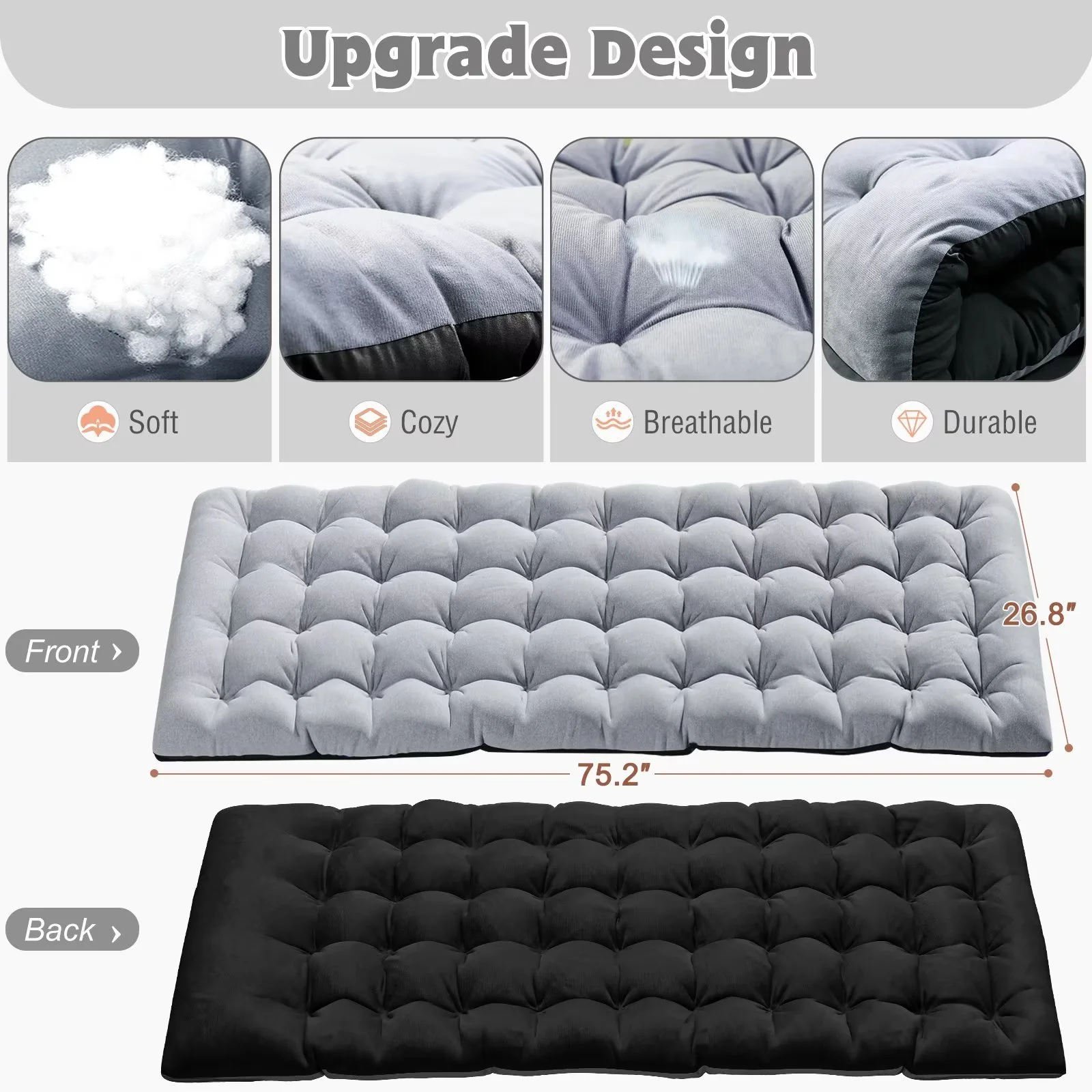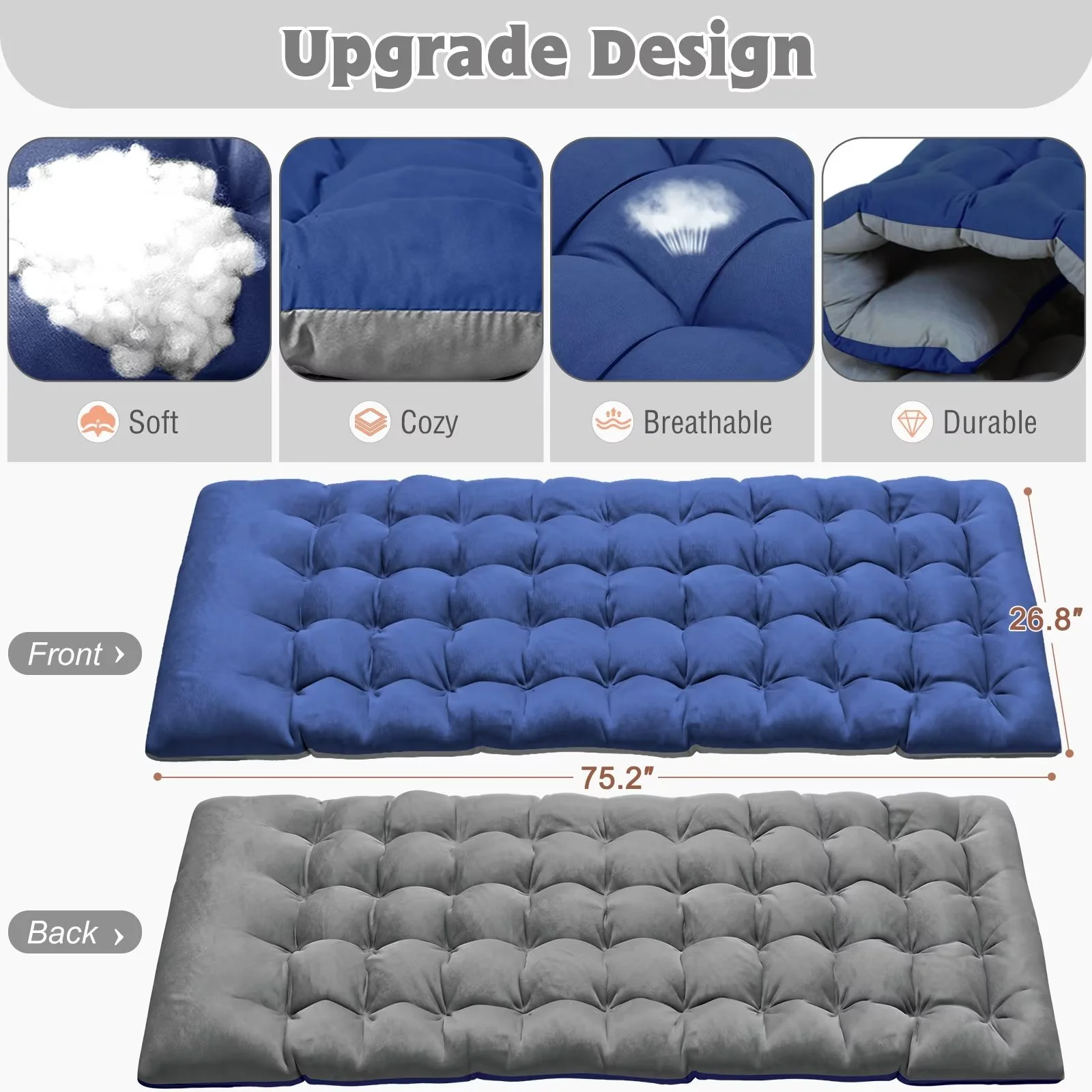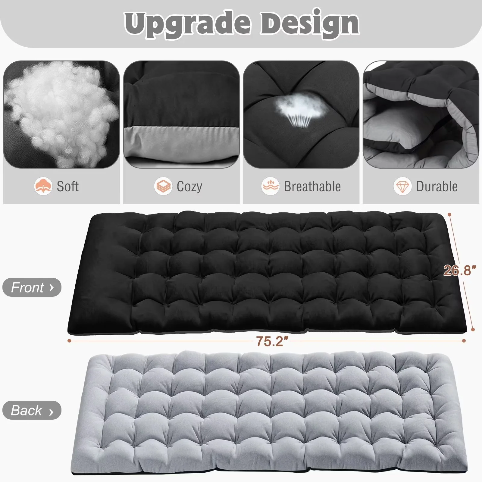 ��Comfortable Mattress with 2 Sides��: Equipped with a 2-sided mattress, you can sleep more comfortably in this portable folding camping bed. In hot weather, you can also take the pad away for ventilation. 3.3-inch thickened pearl cotton pad (to keep warm in the fall and winter).