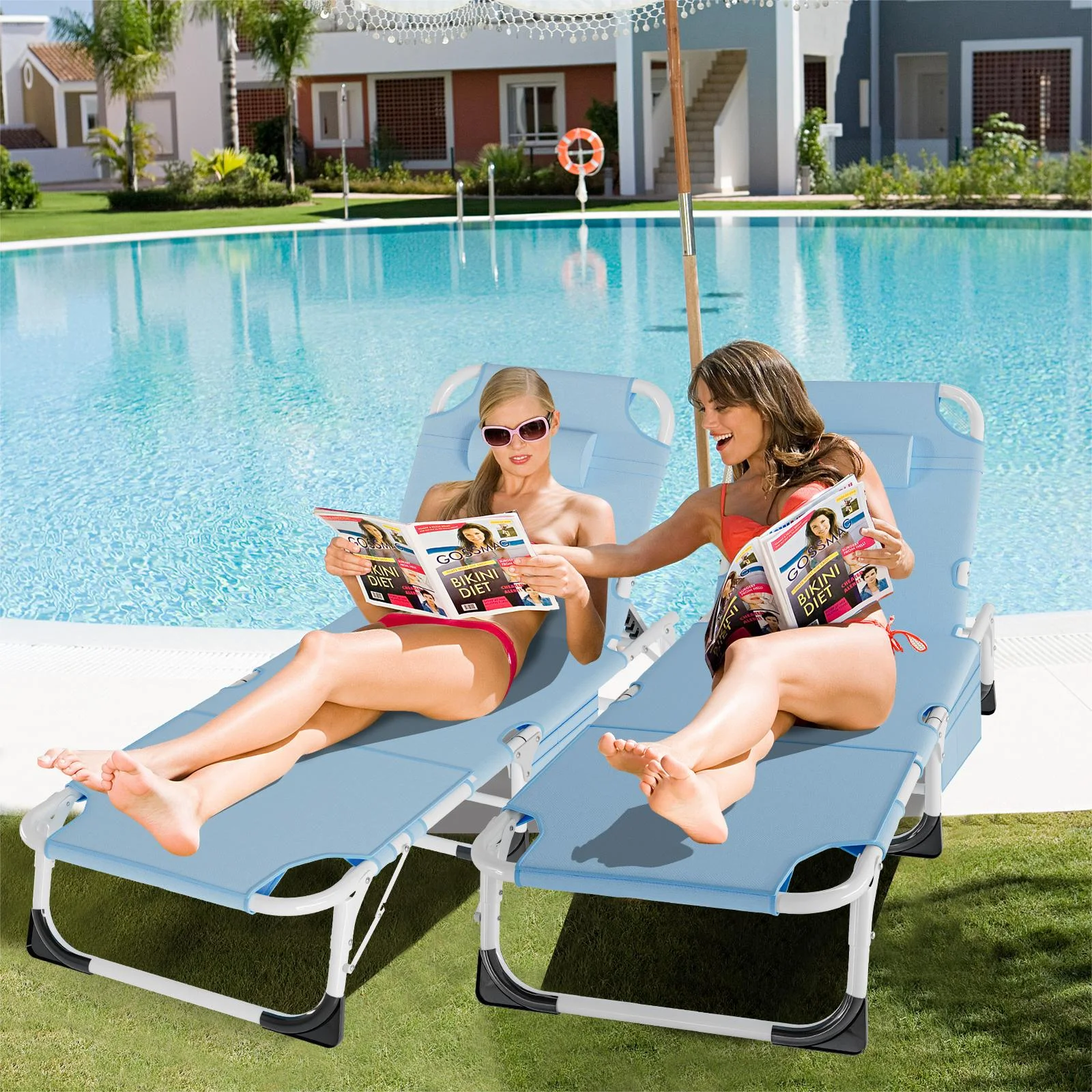 ��NO Assemble��: Just open it and press the step lock with your foot until the lounge chair is locked. You can finish it in 1 minute.