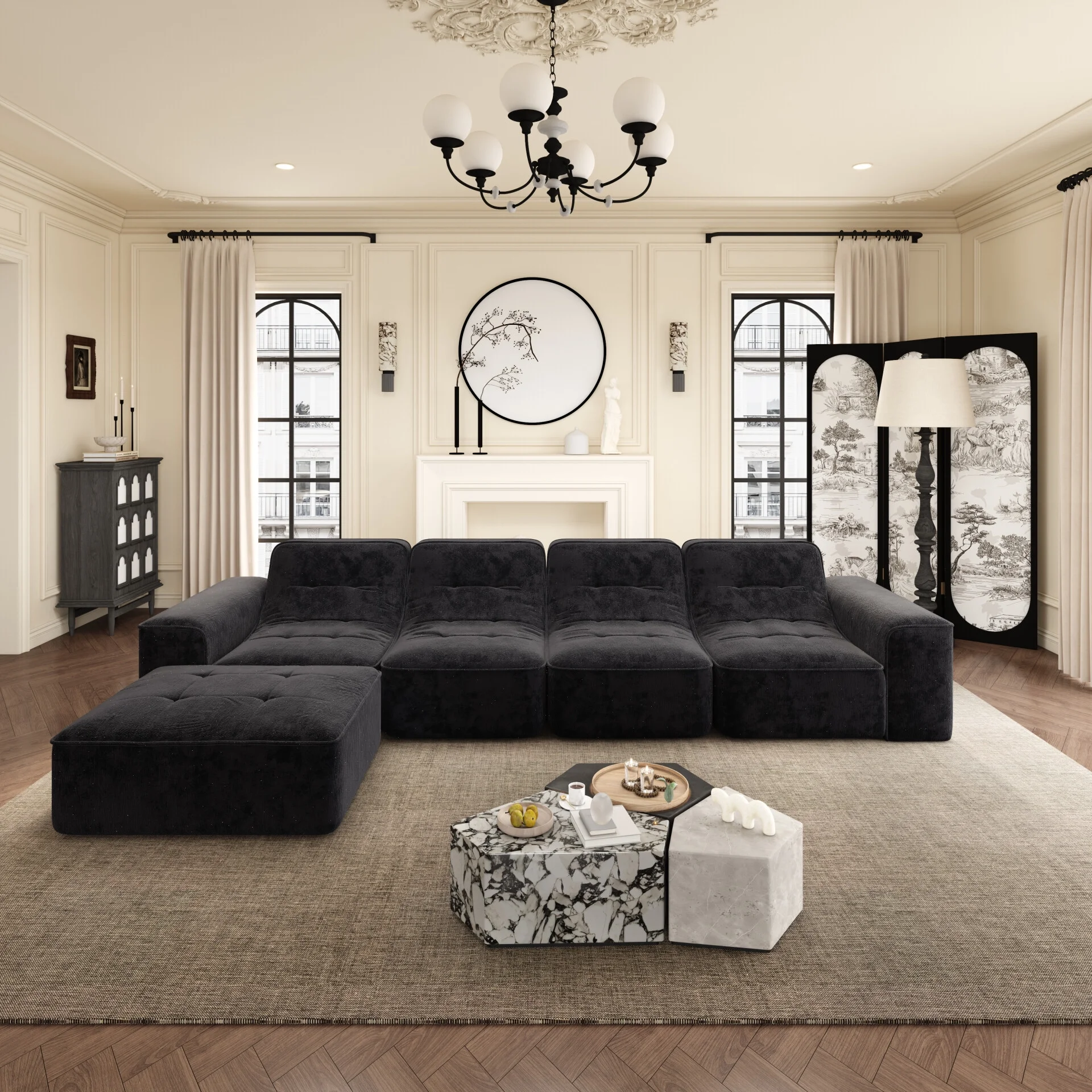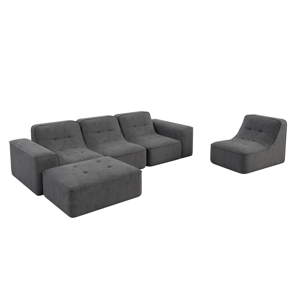 - ��Spacious Modular Design with Ottoman��??This modular sofa offers ultimate flexibility with a total width of 144". You can easily rearrange the couch pieces to fit different spaces and needs��Whether arranged in an L-shape or placed side by side��from creating a snug reading nook to hosting movie nights with friends, enjoying laid-back family moments.