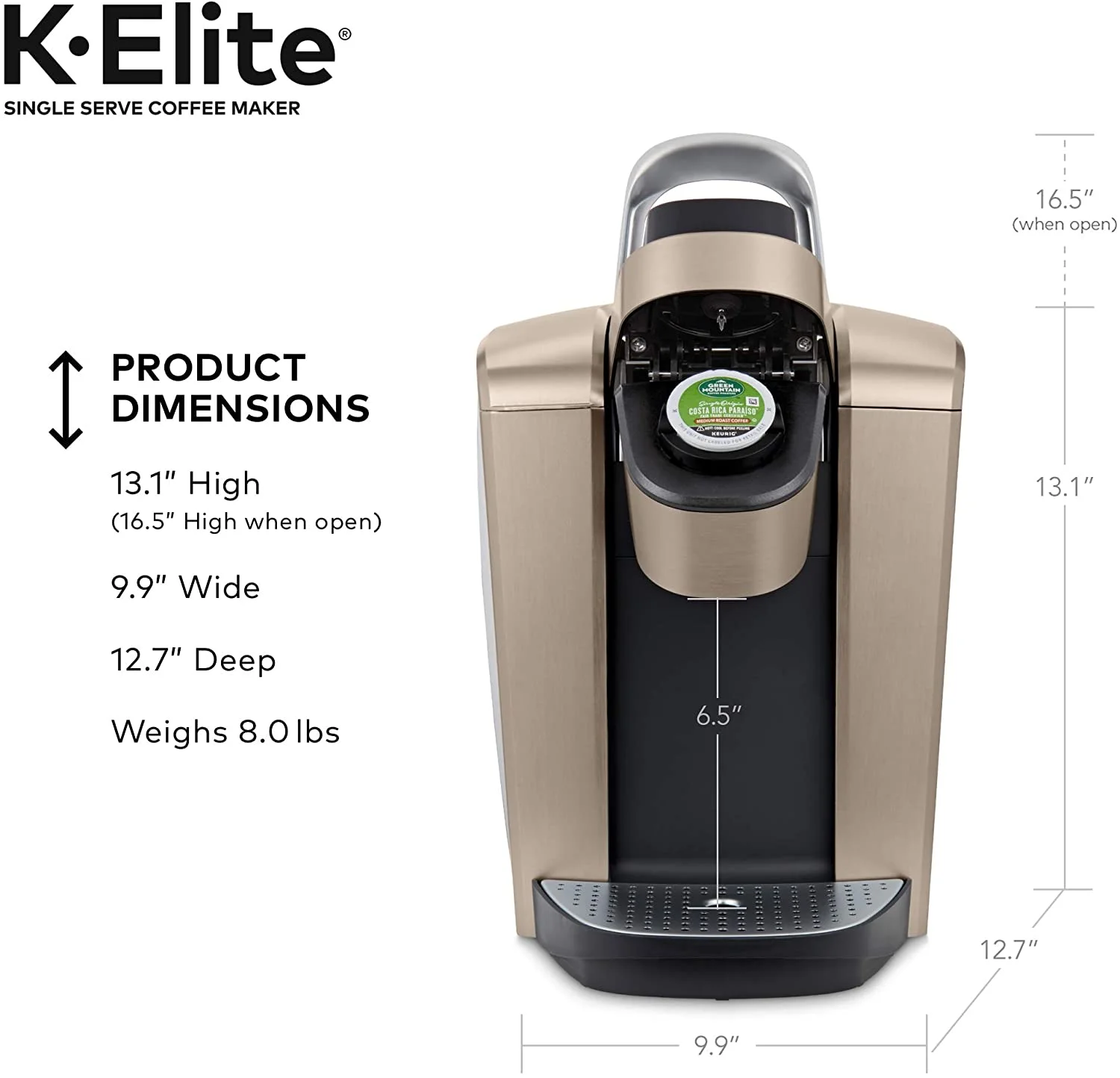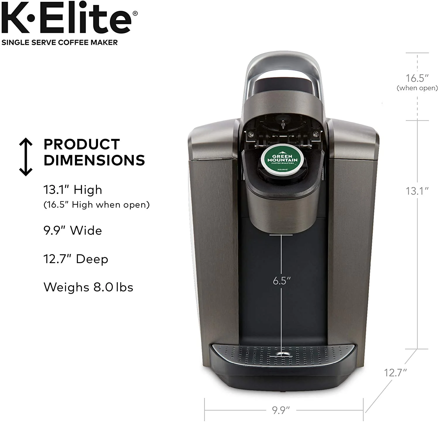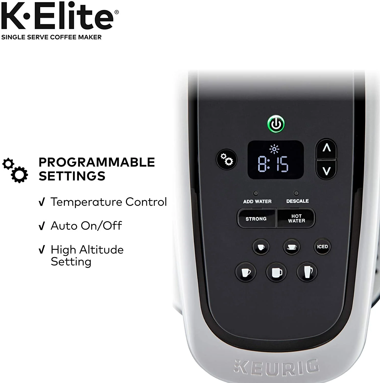 • Keurig K - Elite Coffee Maker, Single Serve K - Cup Pod Coffee Brewer, with Iced Coffee Capability, Brushed Slate