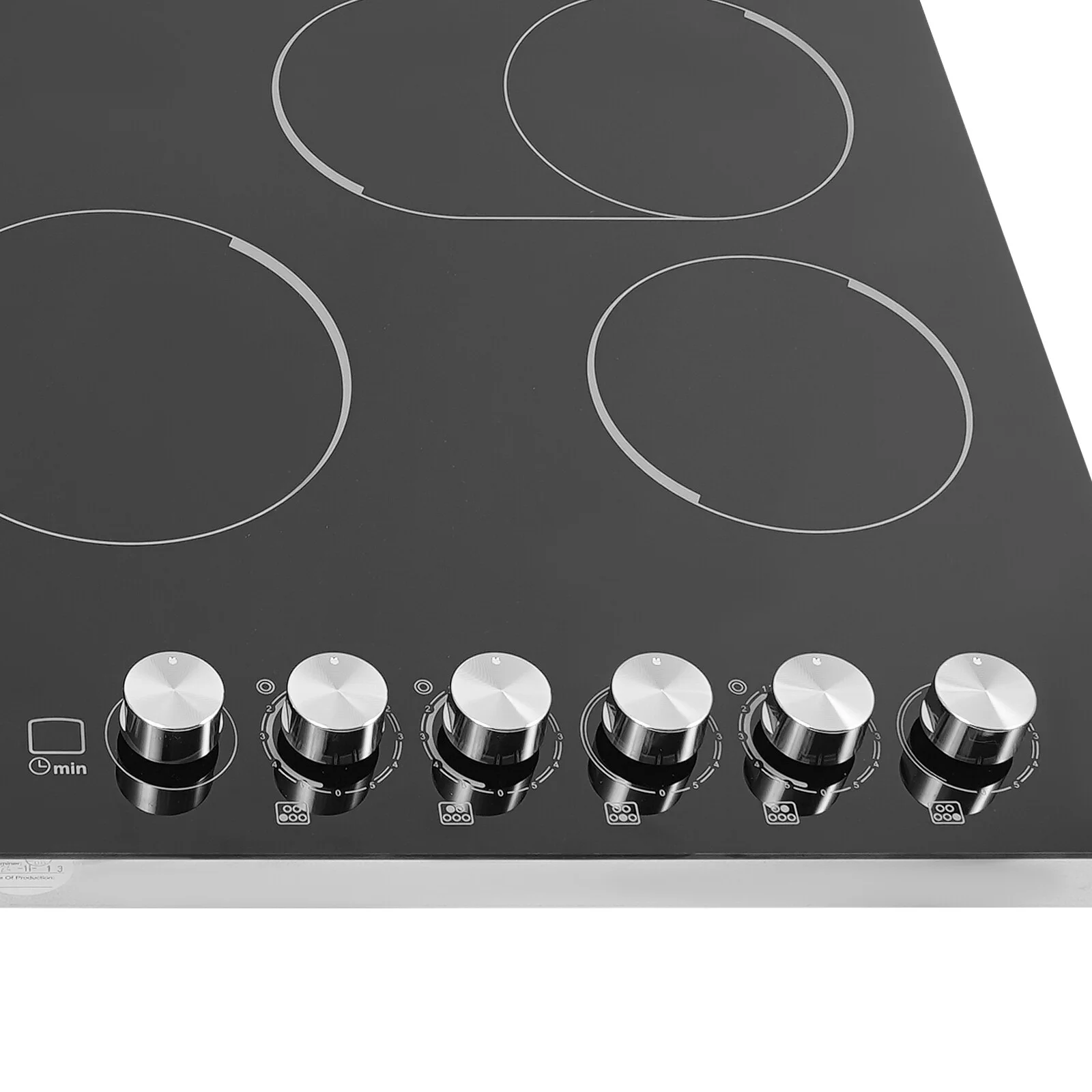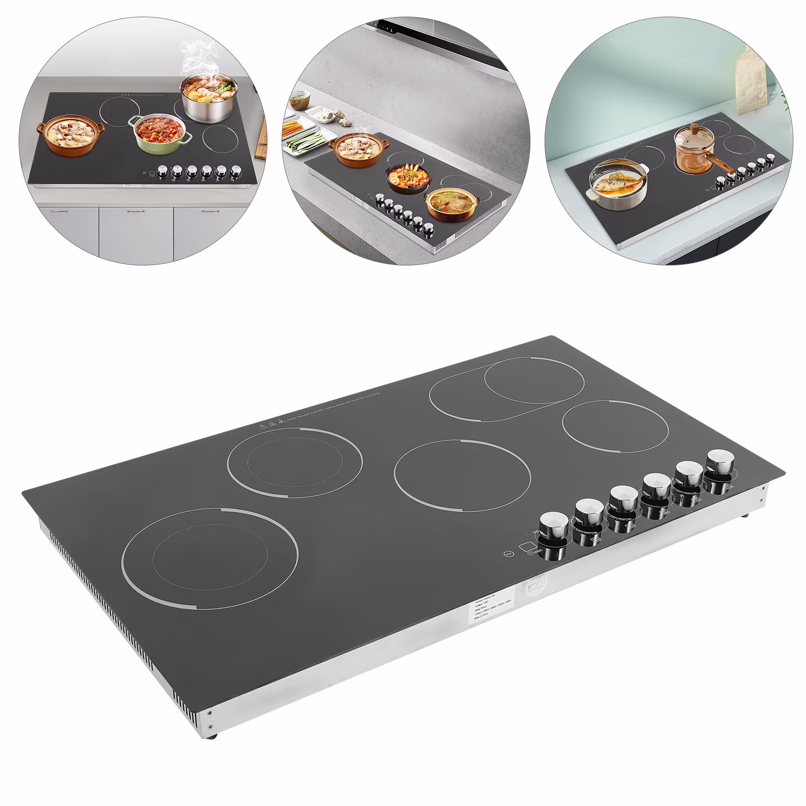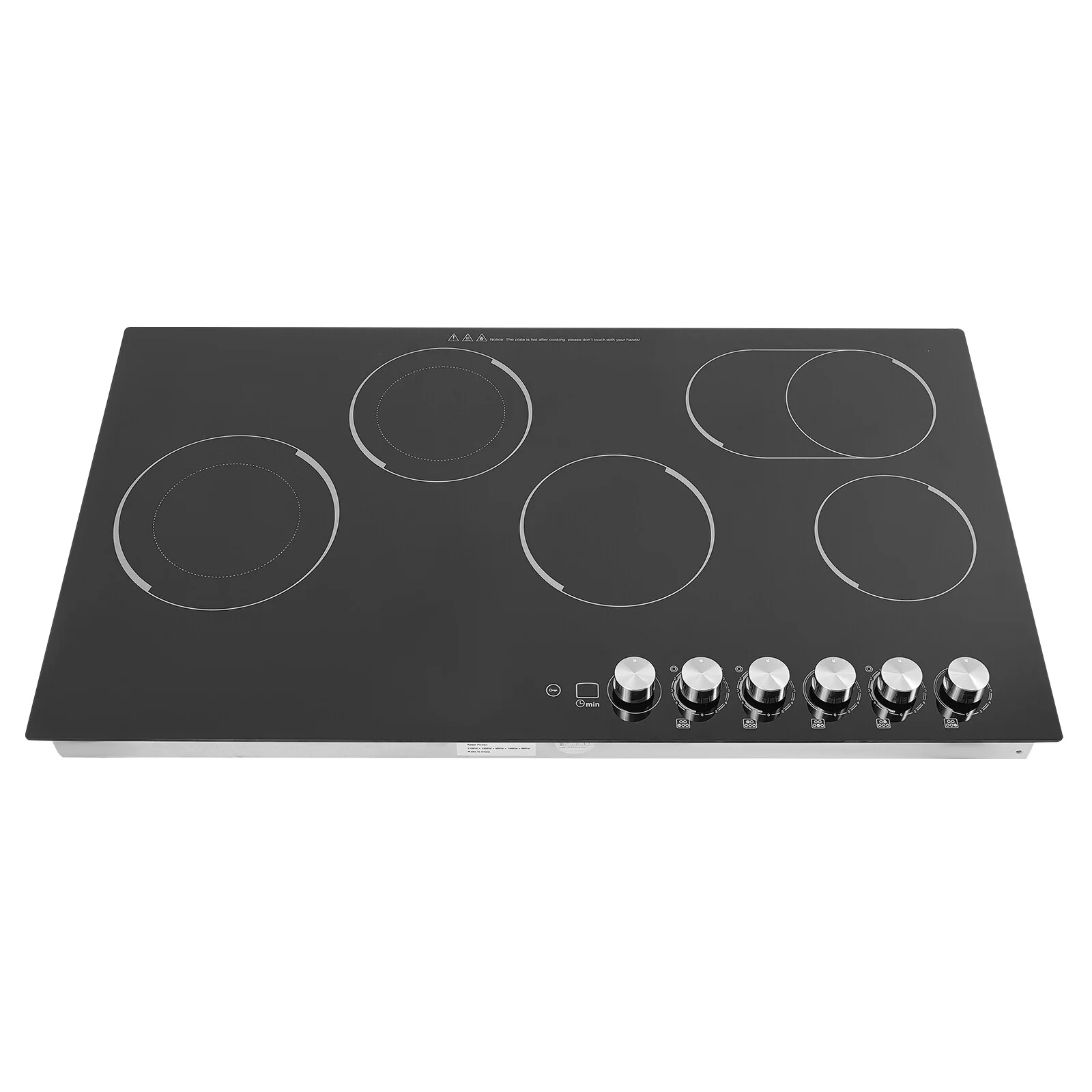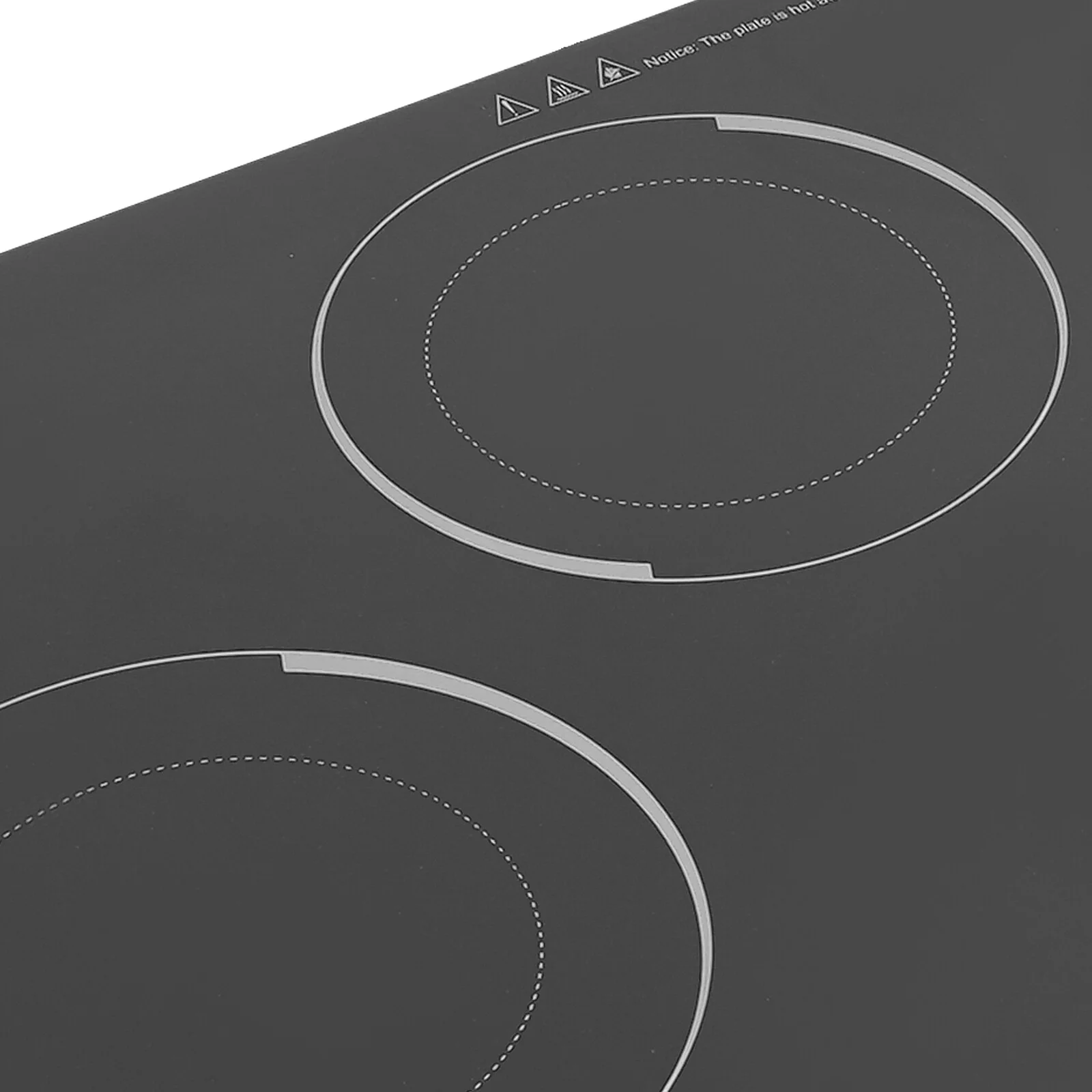 The electric ceramic cooktop is an ideal choice for your modern kitchens. It features five electric burners, offering ample space for all your cooking needs. Each heating zone can provide uniform and precise temperature control, allowing you to cook delicious ingredients. The premium materials make it durable and easy to clean, and a series of protective functions make you feel more at ease when using it. We believe it will bring you a great cooking experience and allow you to enjoy delicious dishes fully.