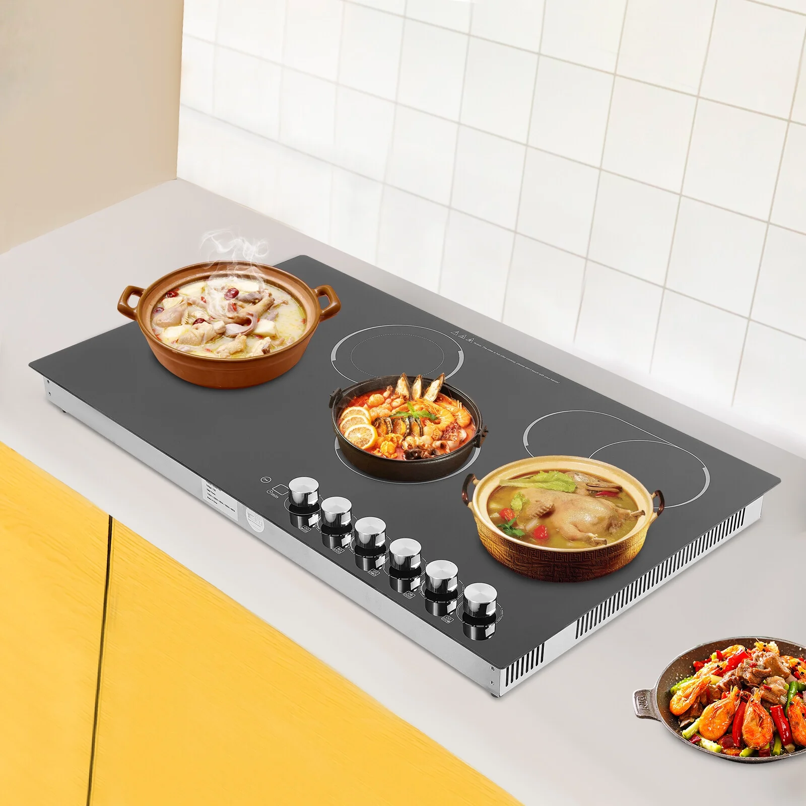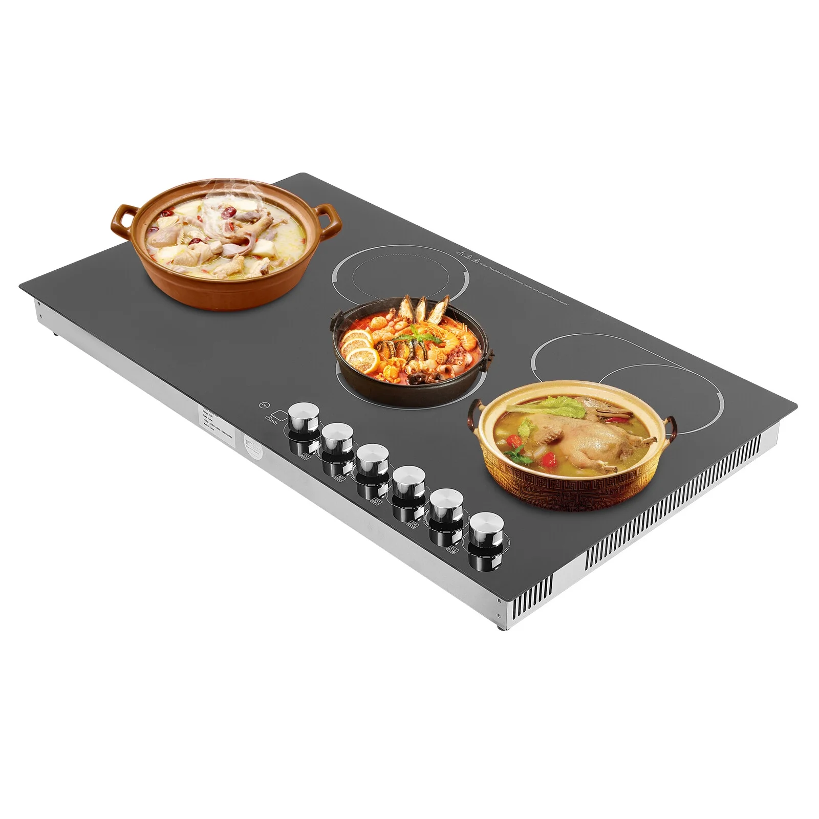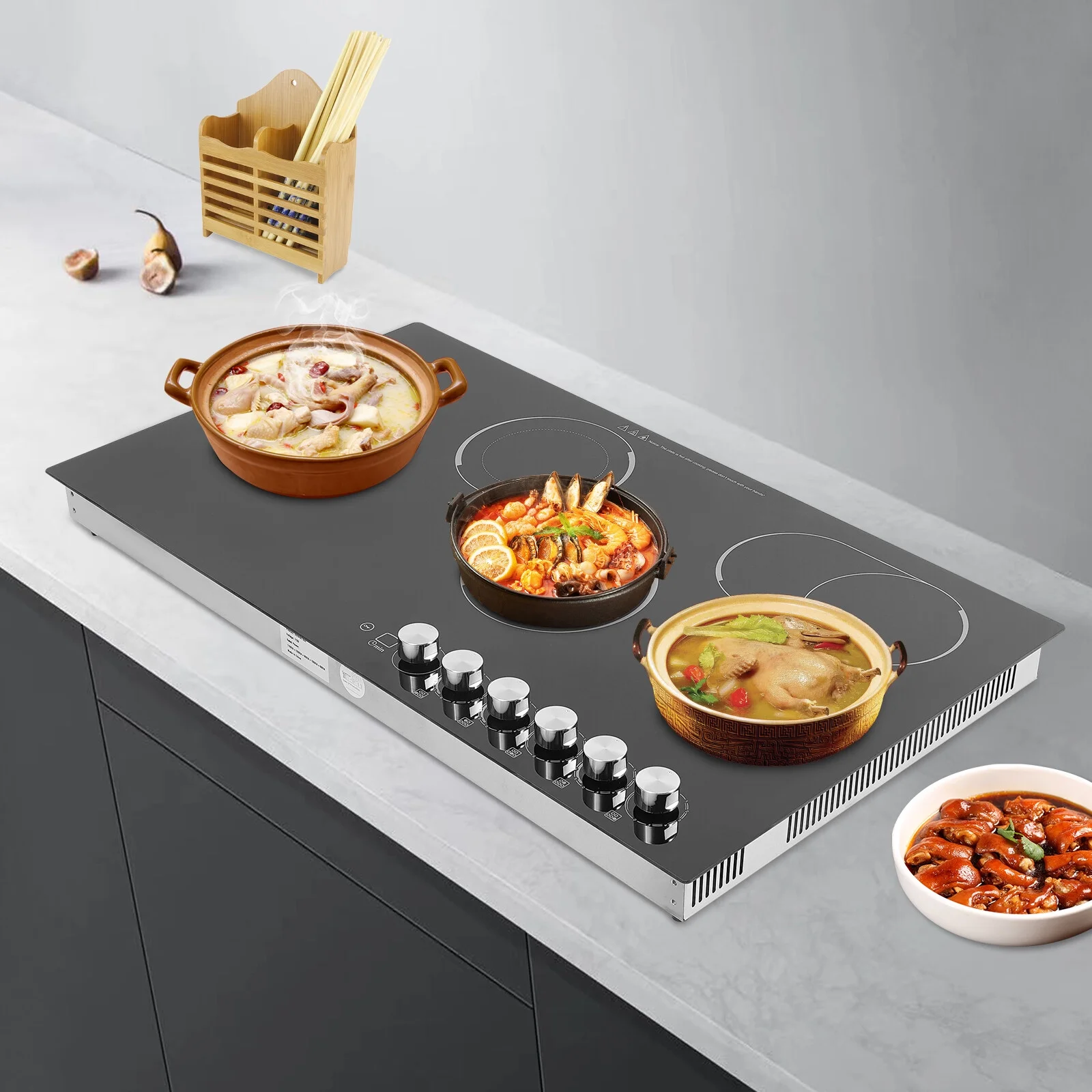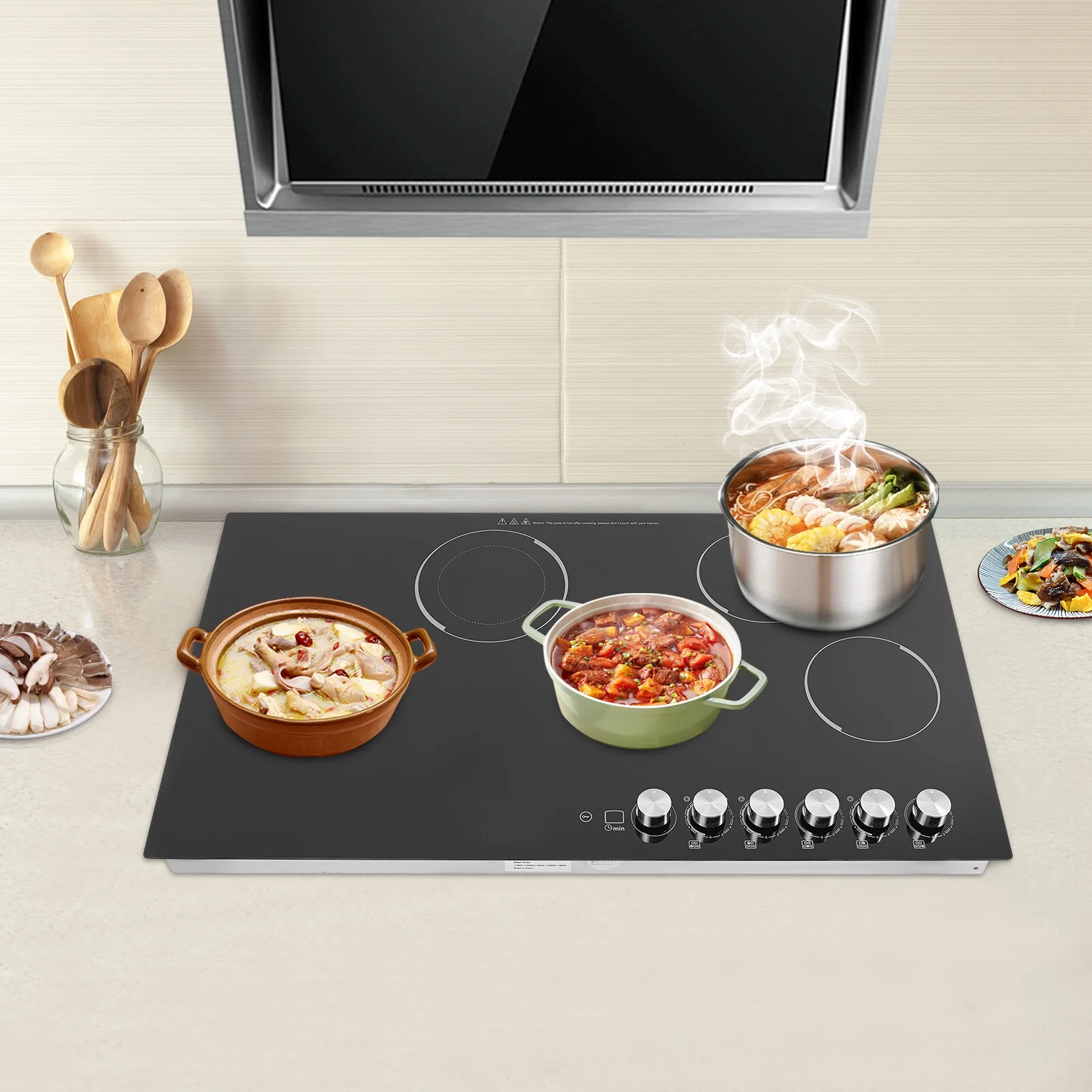 The electric ceramic cooktop is an ideal choice for your modern kitchens. It features five electric burners, offering ample space for all your cooking needs. Each heating zone can provide uniform and precise temperature control, allowing you to cook delicious ingredients. The premium materials make it durable and easy to clean, and a series of protective functions make you feel more at ease when using it. We believe it will bring you a great cooking experience and allow you to enjoy delicious dishes fully.