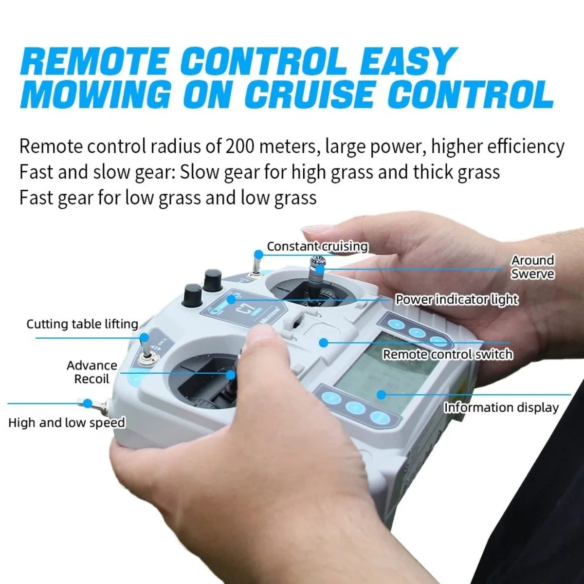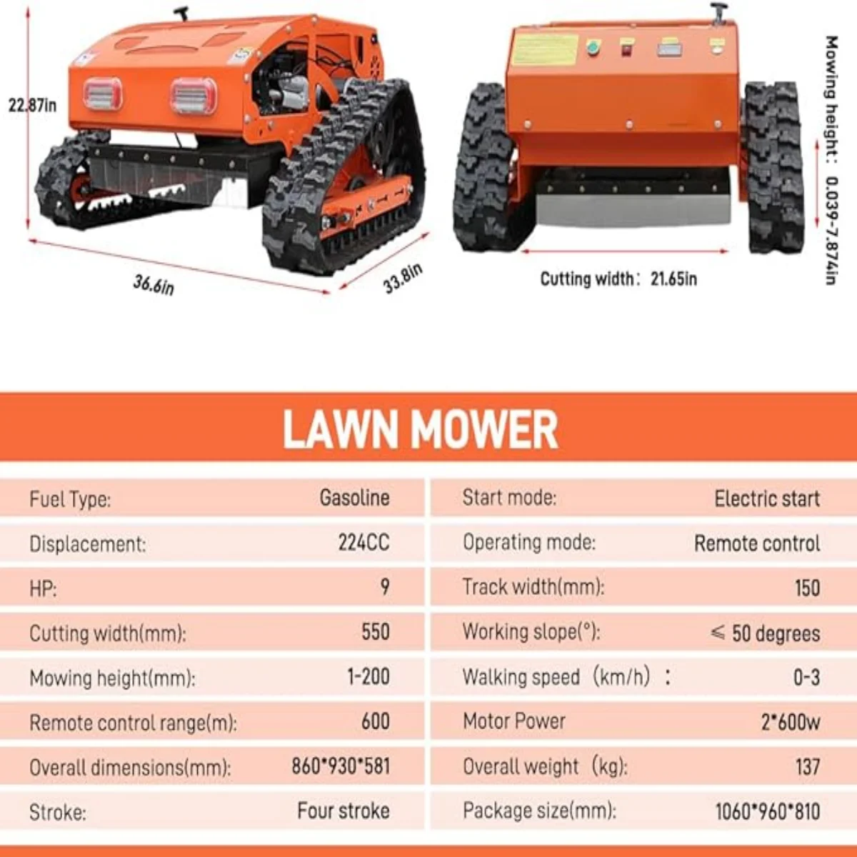 - Remote-Controlled Safety:Operate from a safe distance with the remote system �?perfect for hazardous areas like drop-offs or uneven ground. Puts safety first without sacrificing control.