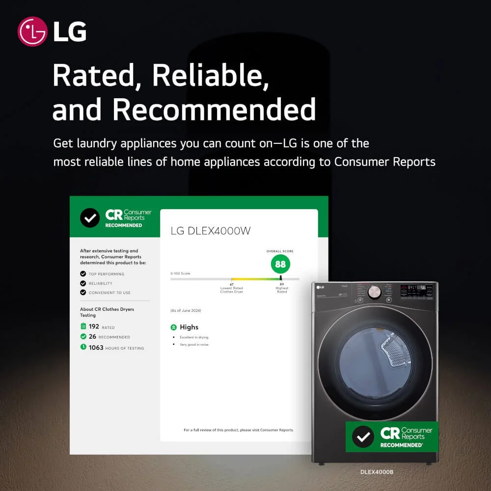 • LG DLEX4000B 7.4 Cu. Ft. Ultra Large Capacity Smart Wi - Fi Enabled Front Load Electric Dryer with Turbosteam? and