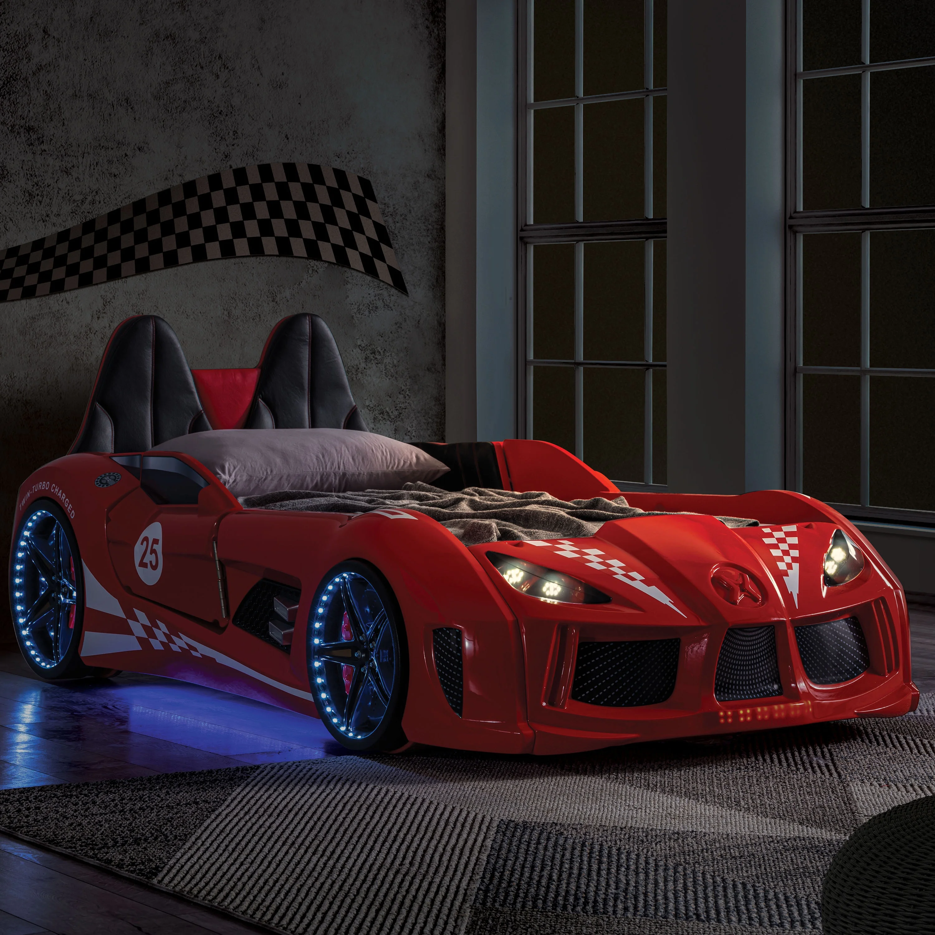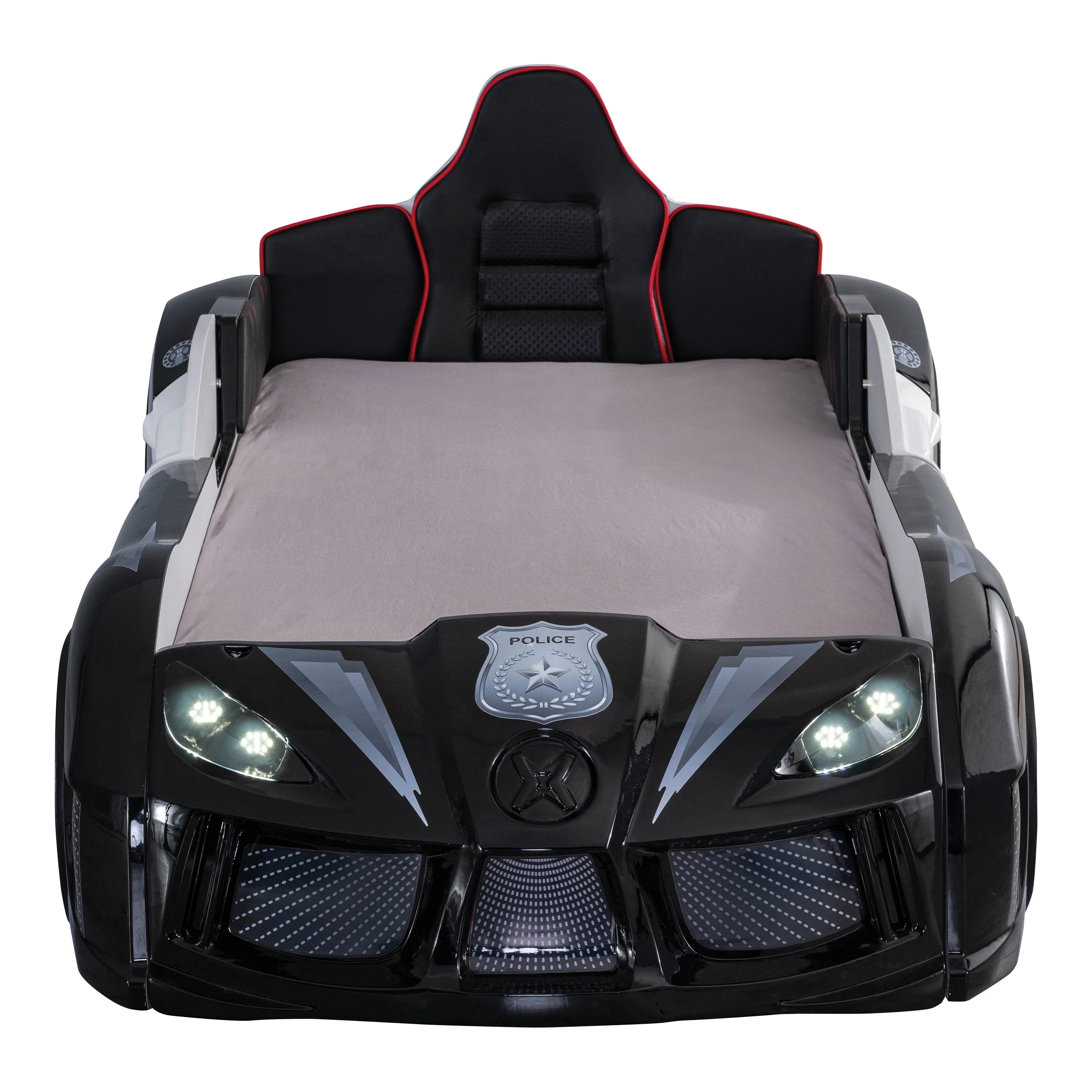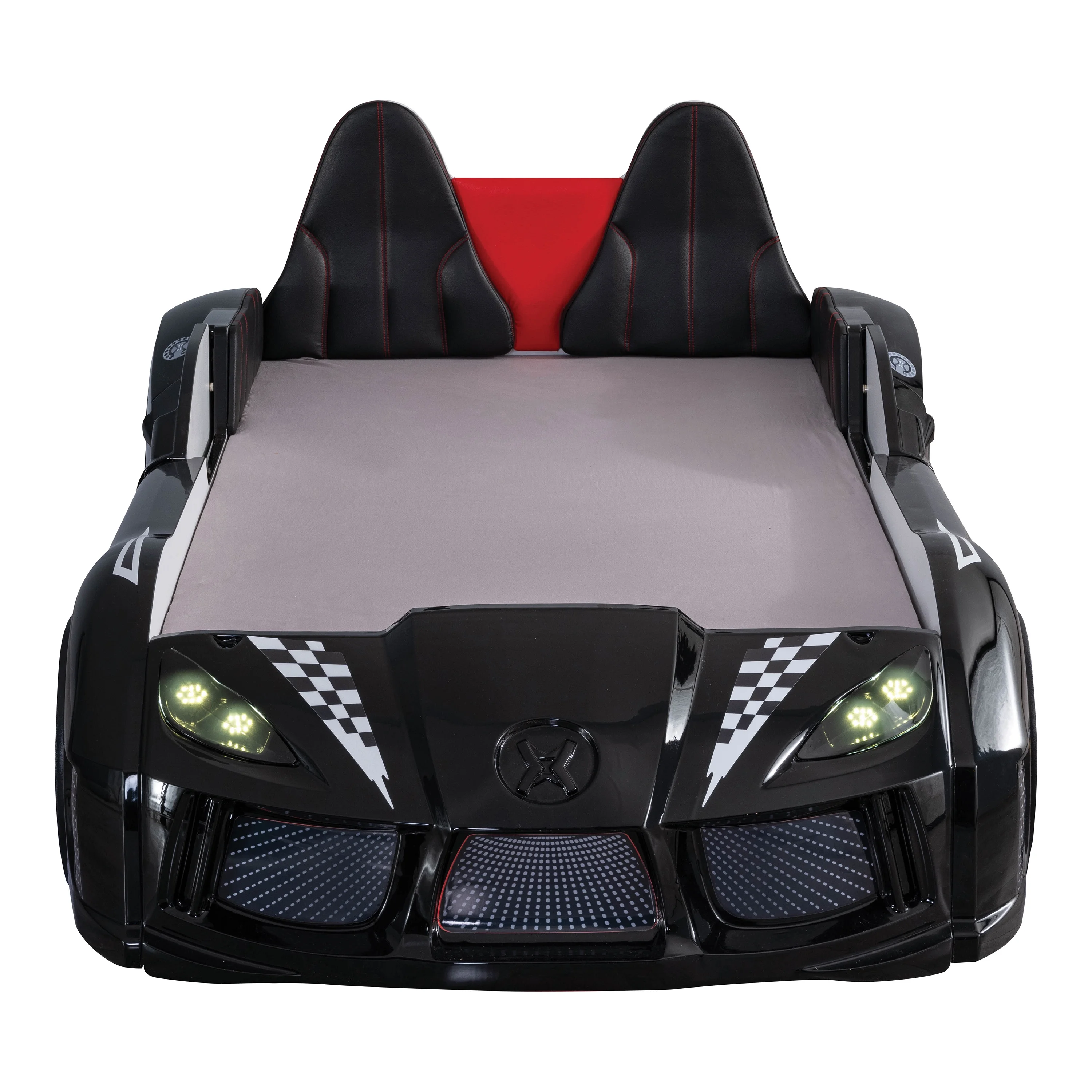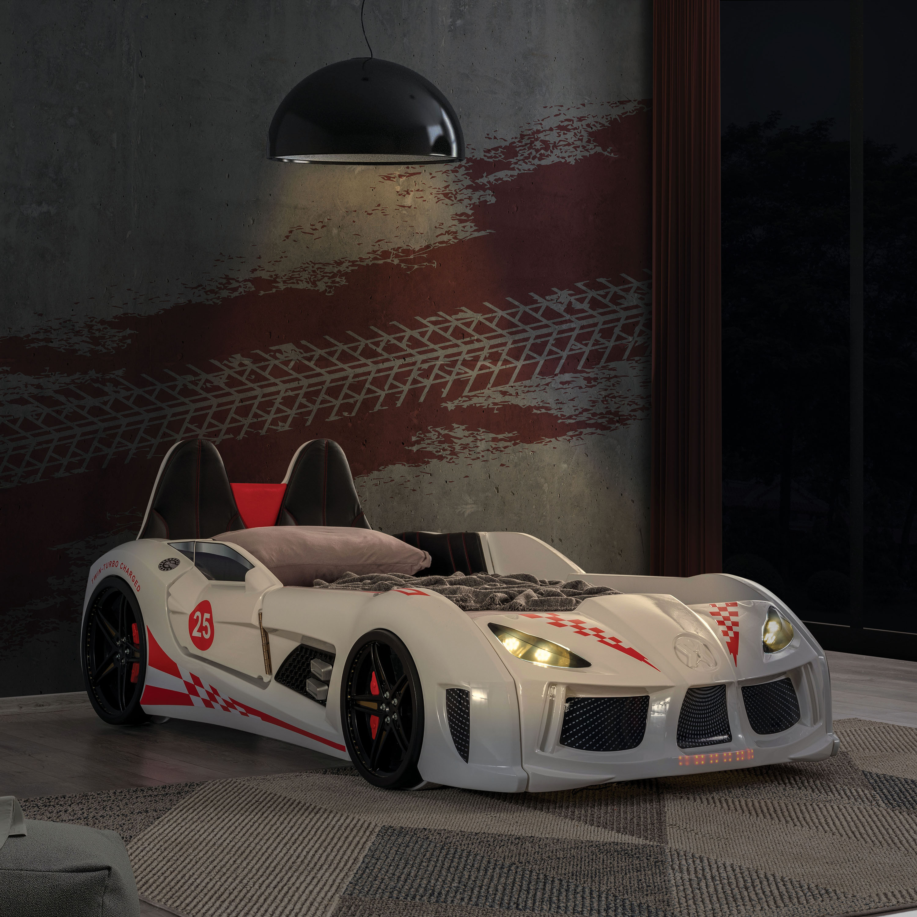- Furniture of America Dash Kids Plastic Twin Race Car Bed with LED and Sound, White