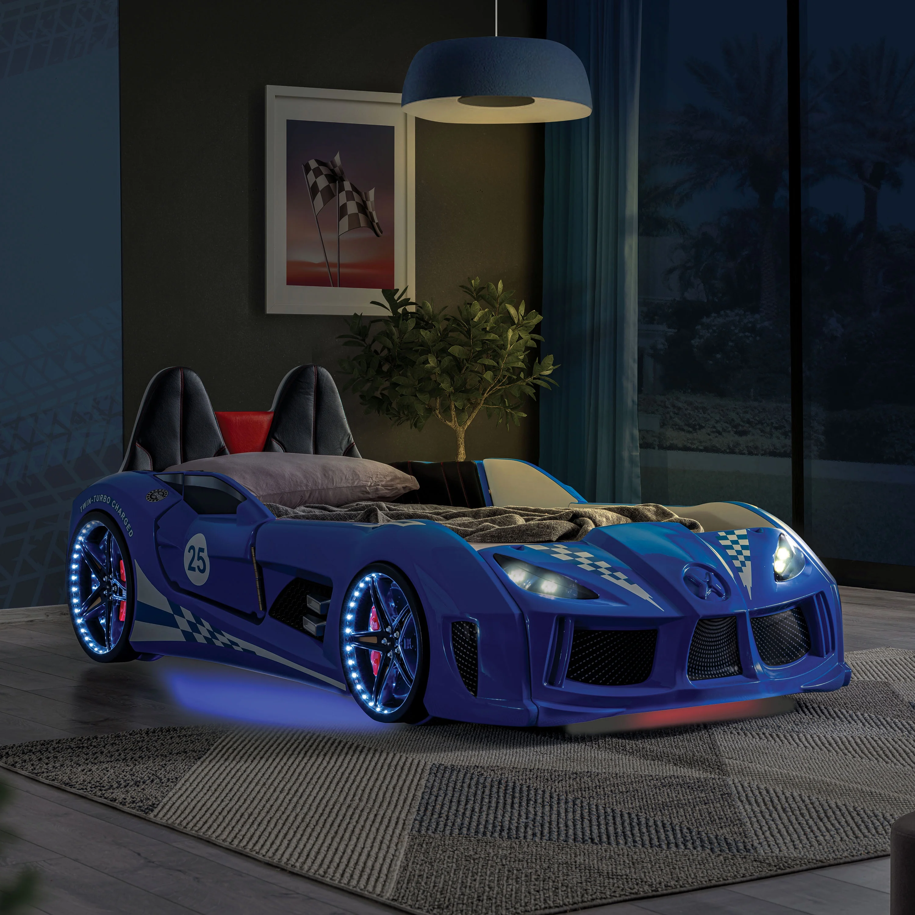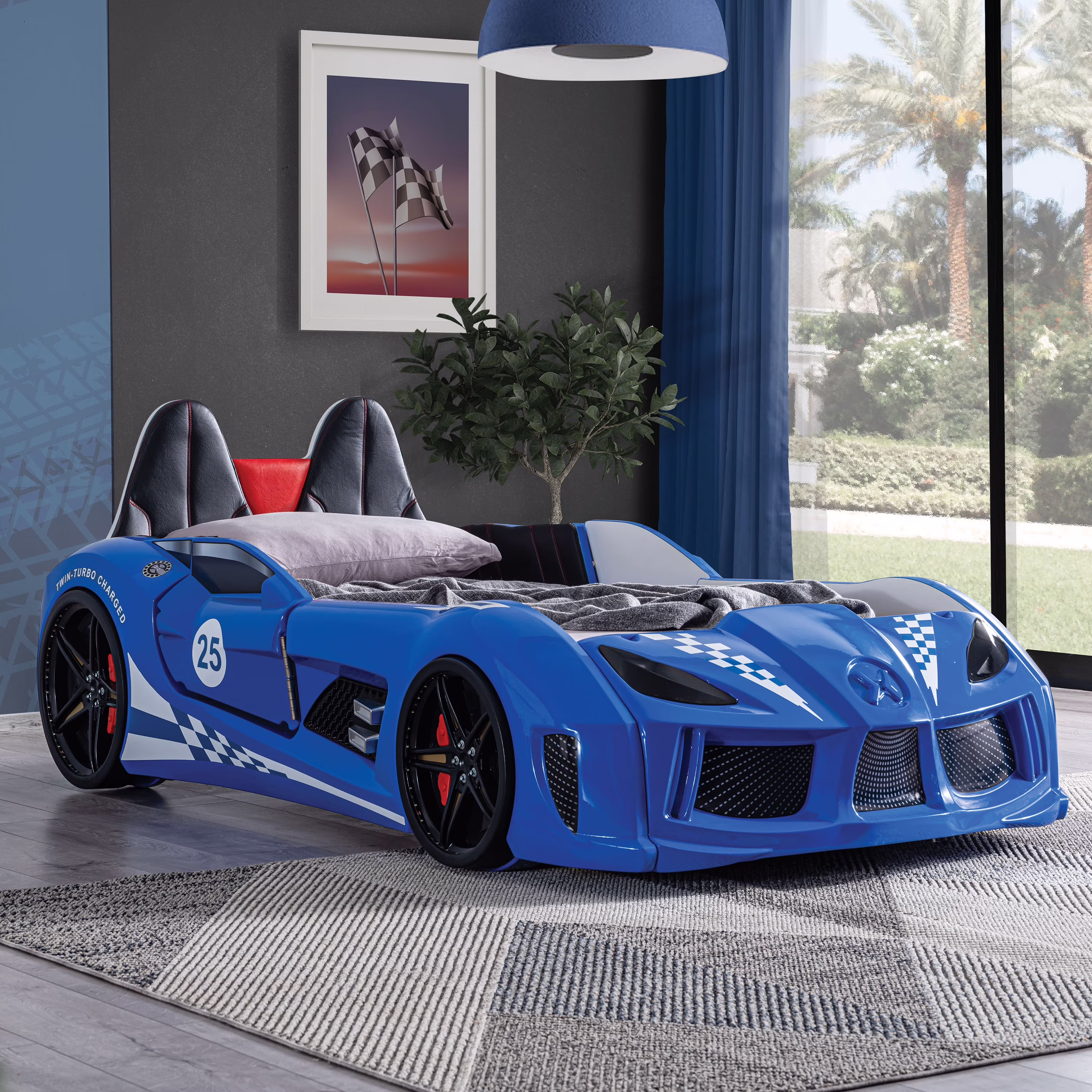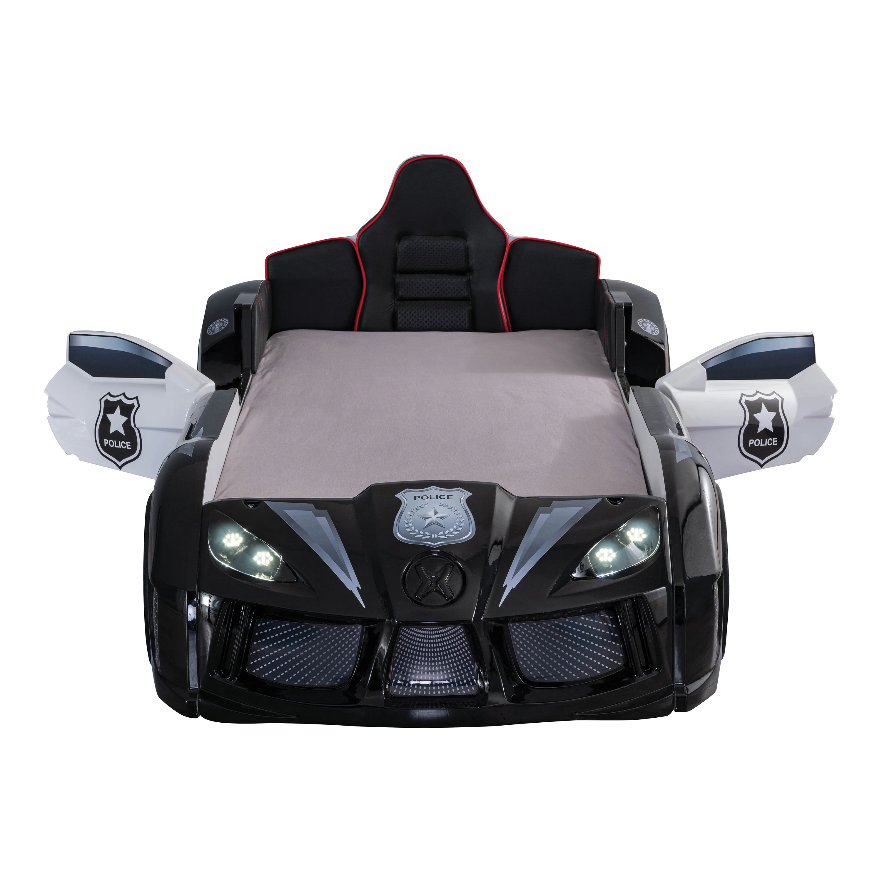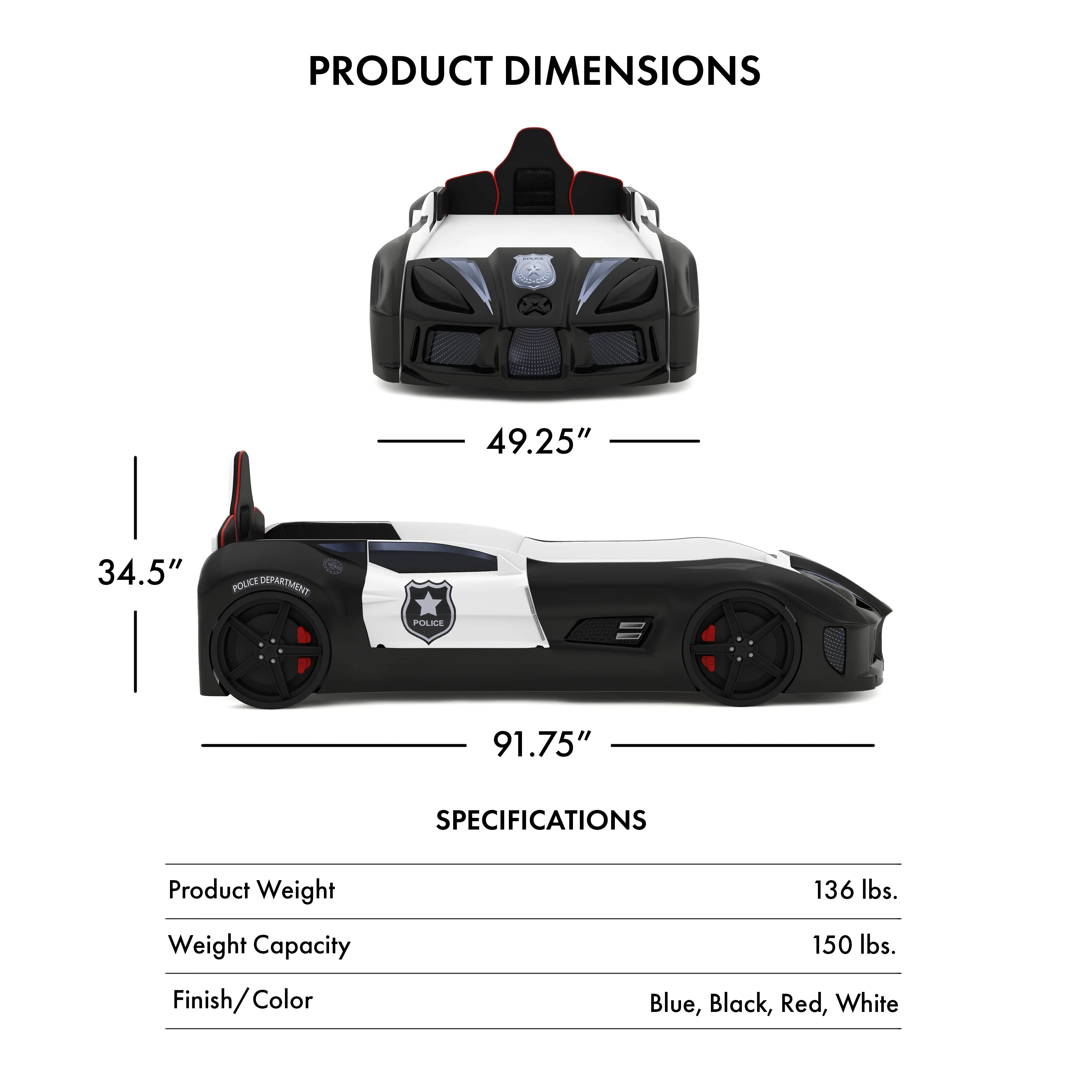 - Furniture of America Dash Kids Plastic Twin Race Car Bed with LED and Sound, White