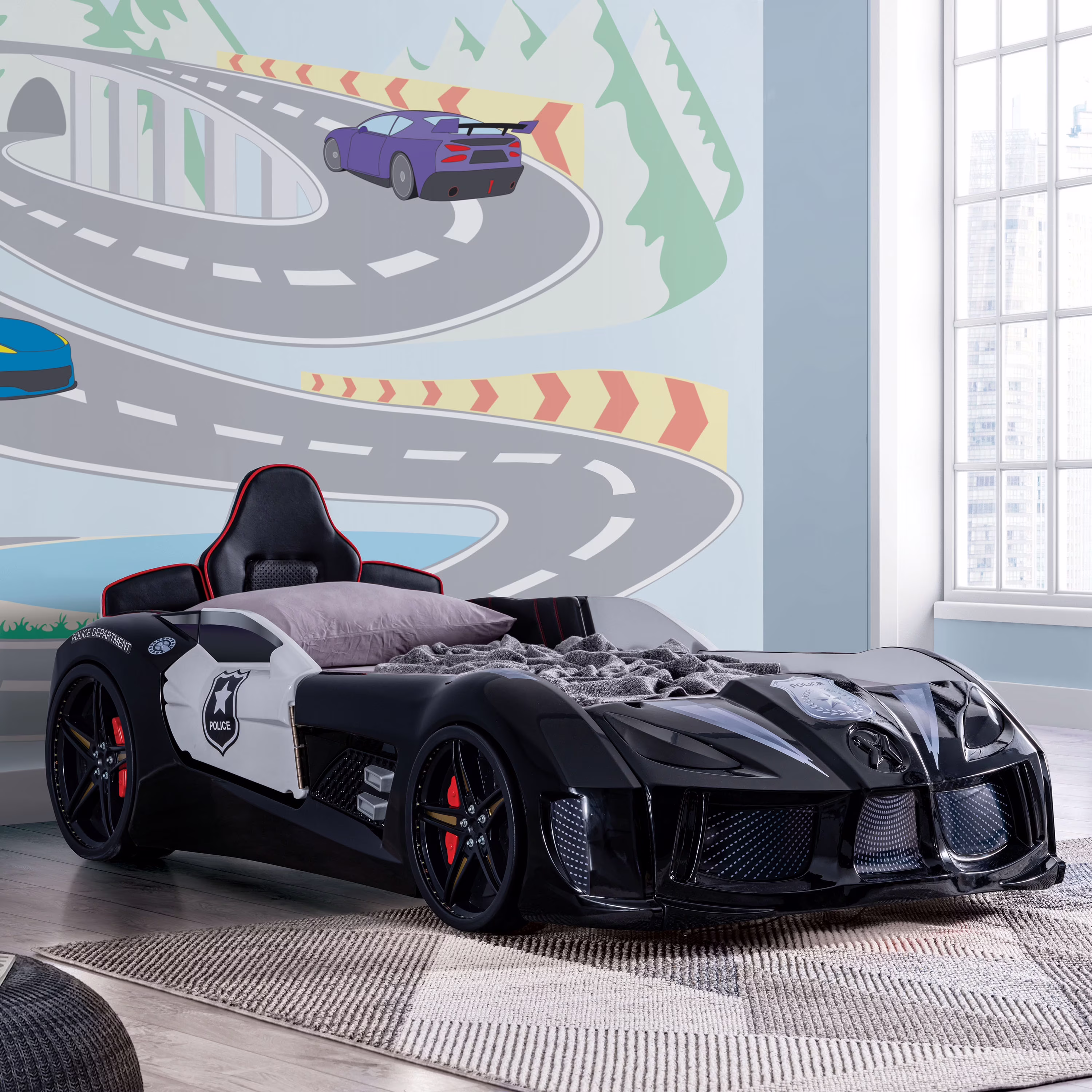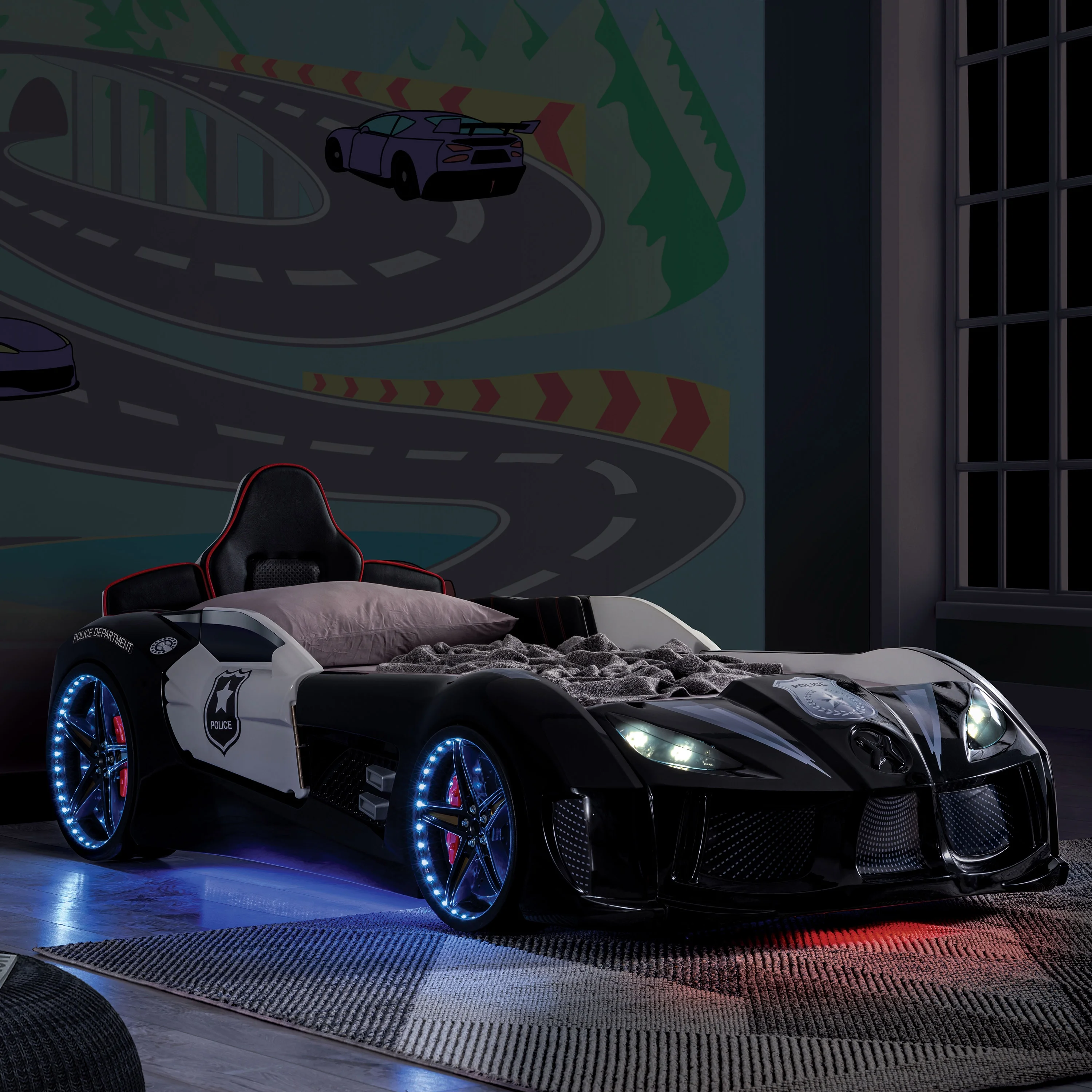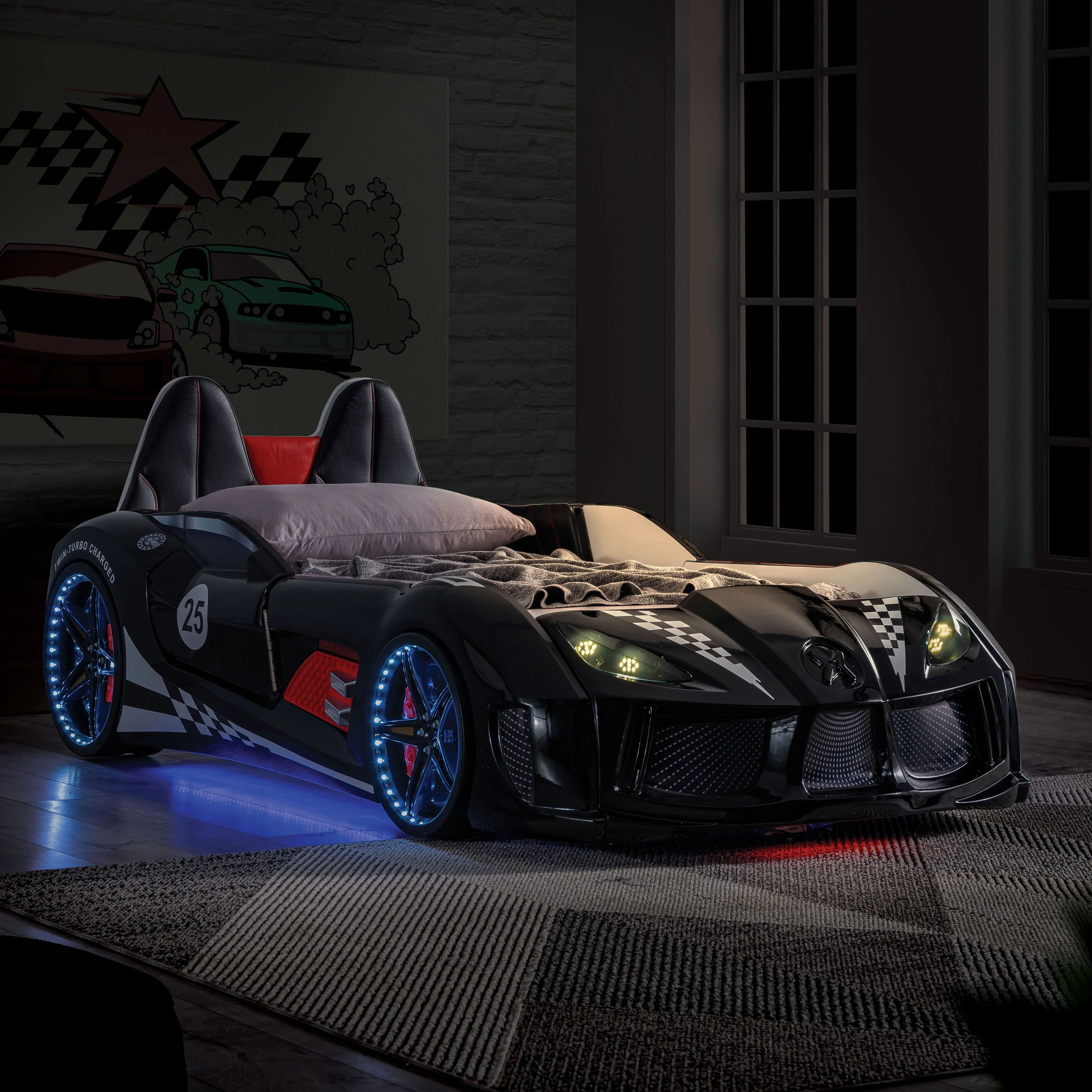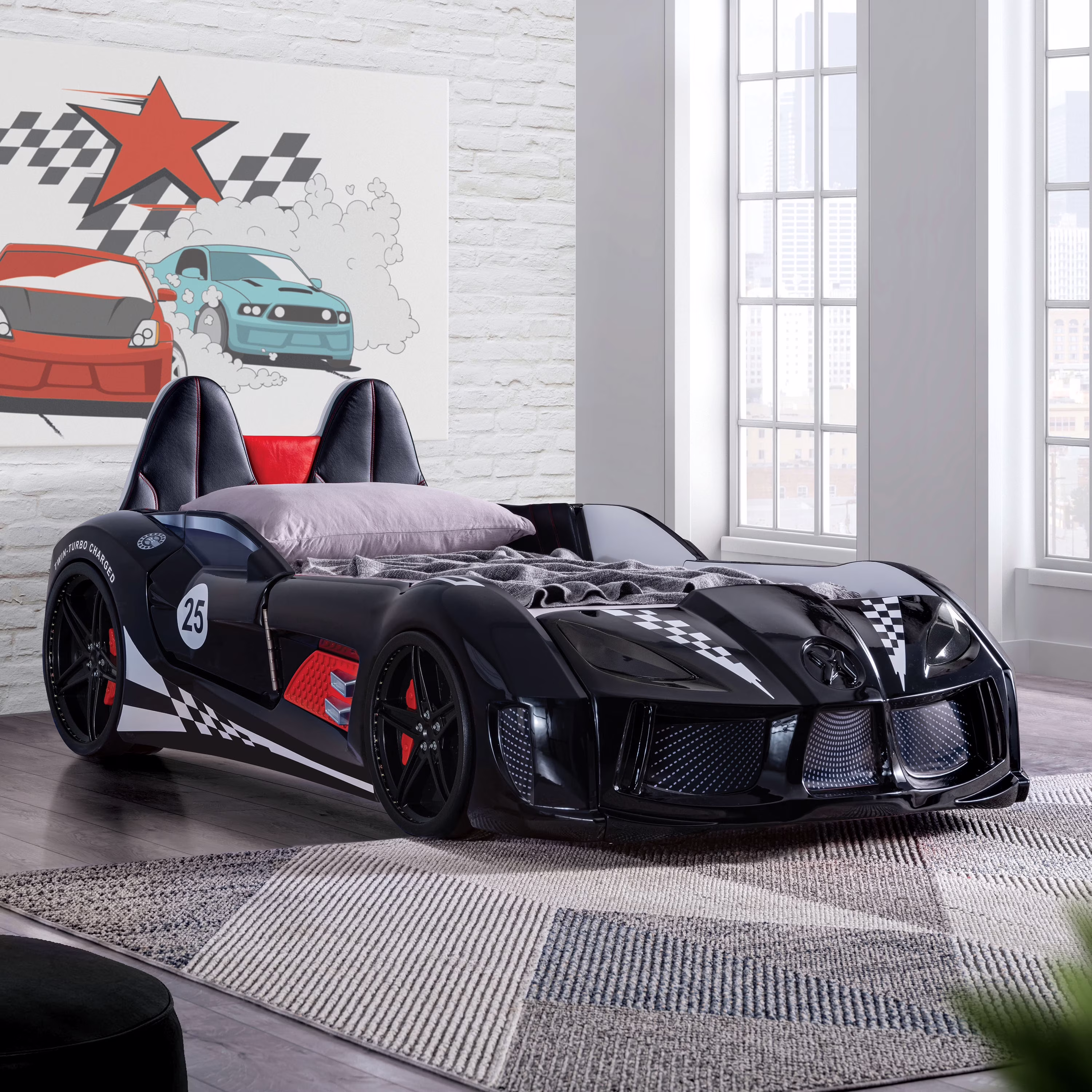 - Furniture of America Dash Kids Plastic Twin Race Car Bed with LED and Sound, White