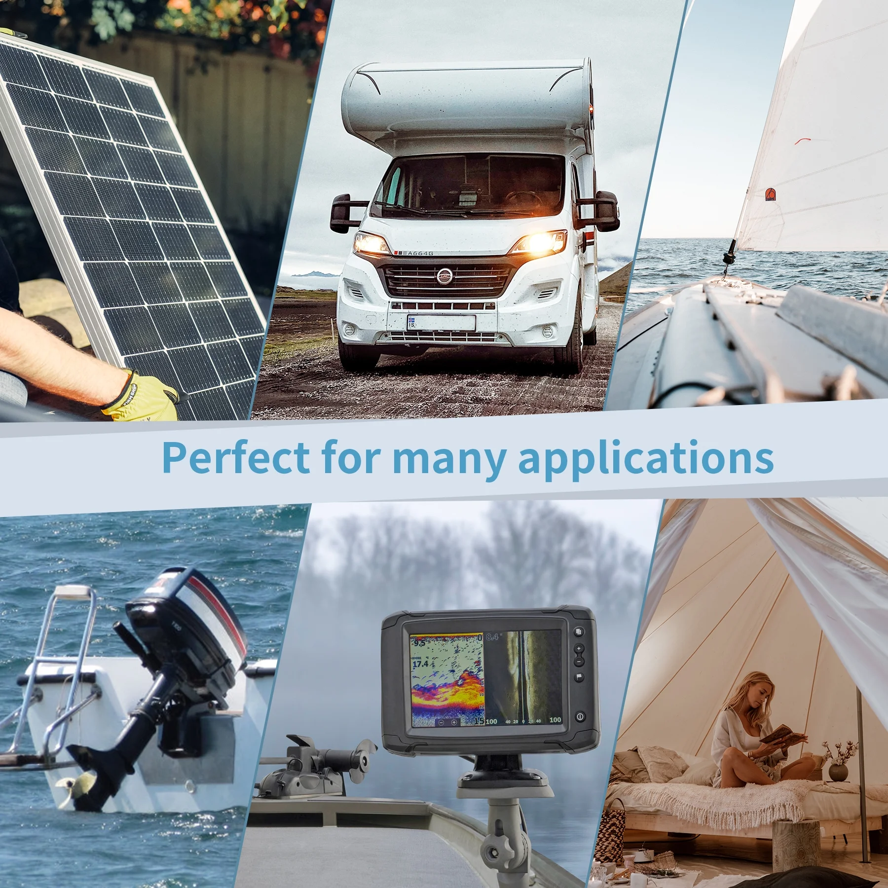 - →【Widly use】widely used for Solar Power, wind power, RV, Camper, off grid, household appliances, trolling motor, Caravan, camper, boat, marine, golf cart, lawn mower, fishfinder, yatch and more usage scenarios are waiting for you to discover