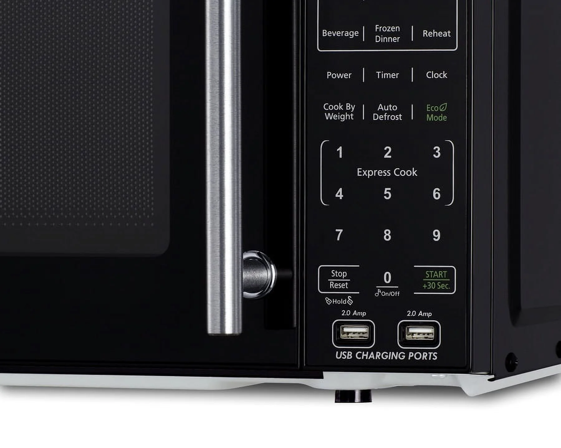 - (2) USB ports - Charge your mobile devices through the pre-installed ports, located on the microwave's front for added convenience