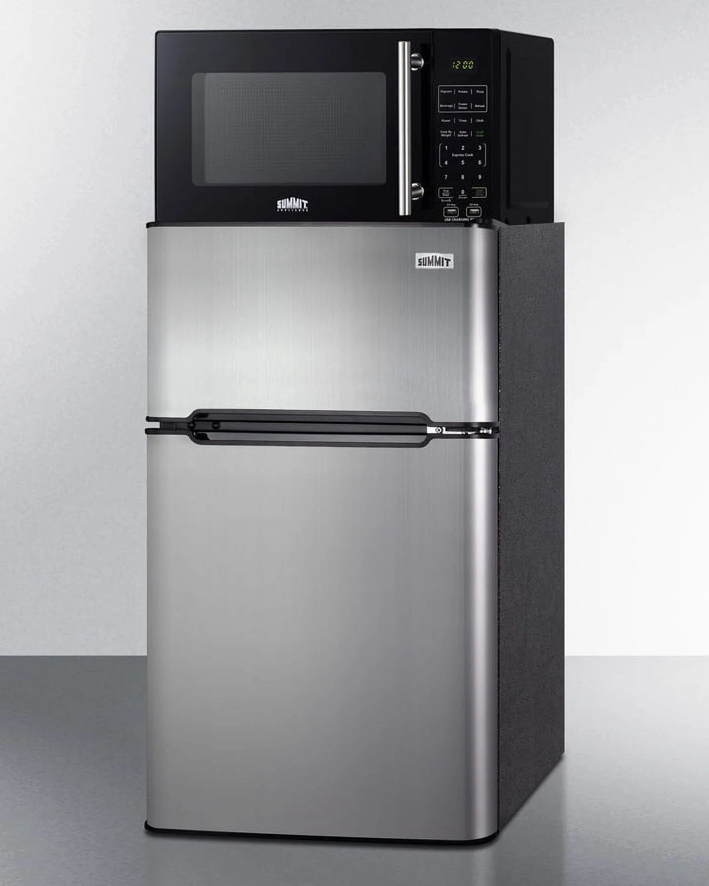 - Built-in power allocator - Plug the refrigerator into the microwave's rear outlet for easy 1-plug operation that will temporarily disable the fridge while the microwave is in use to prevent power surges