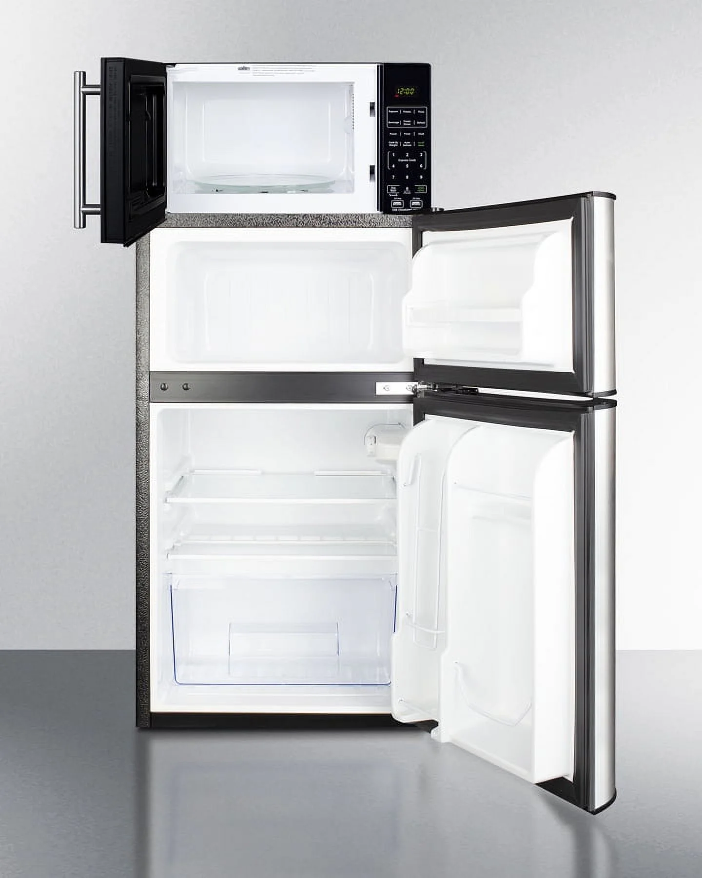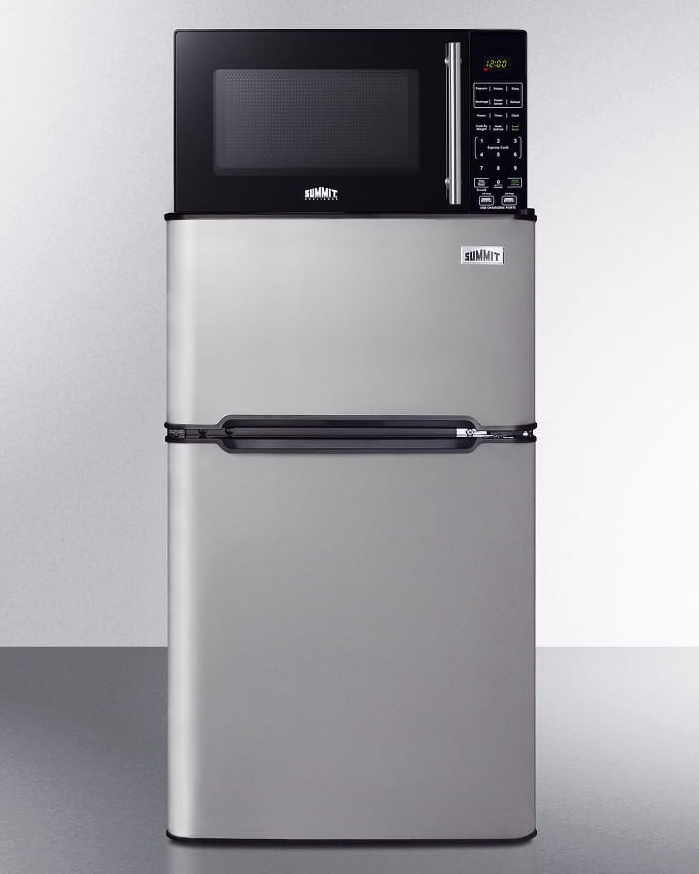 - Stainless steel and black finish - Exterior cabinet and microwave feature a jet black finish, with the refrigerator doors and microwave handle in attractive stainless steel