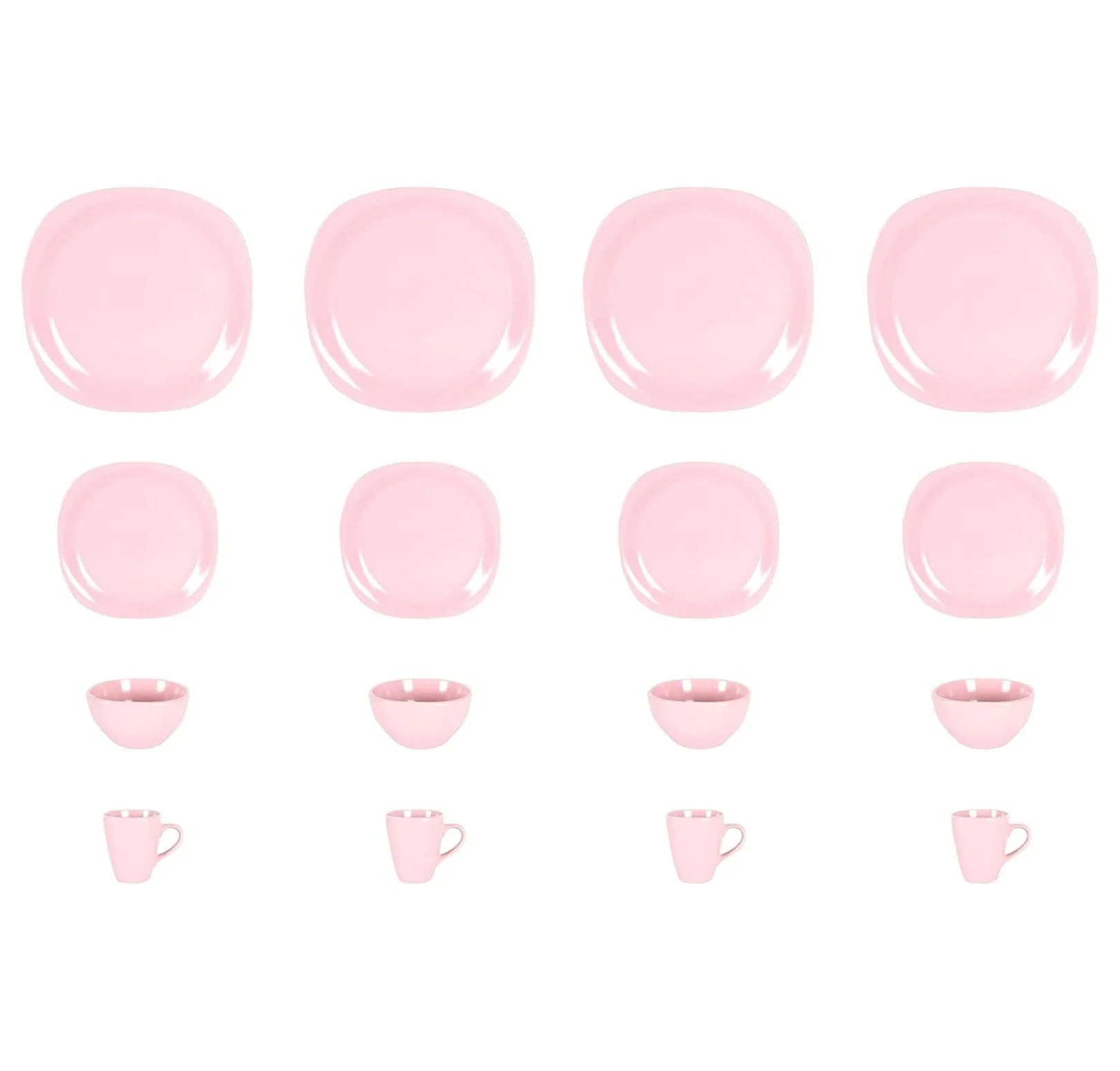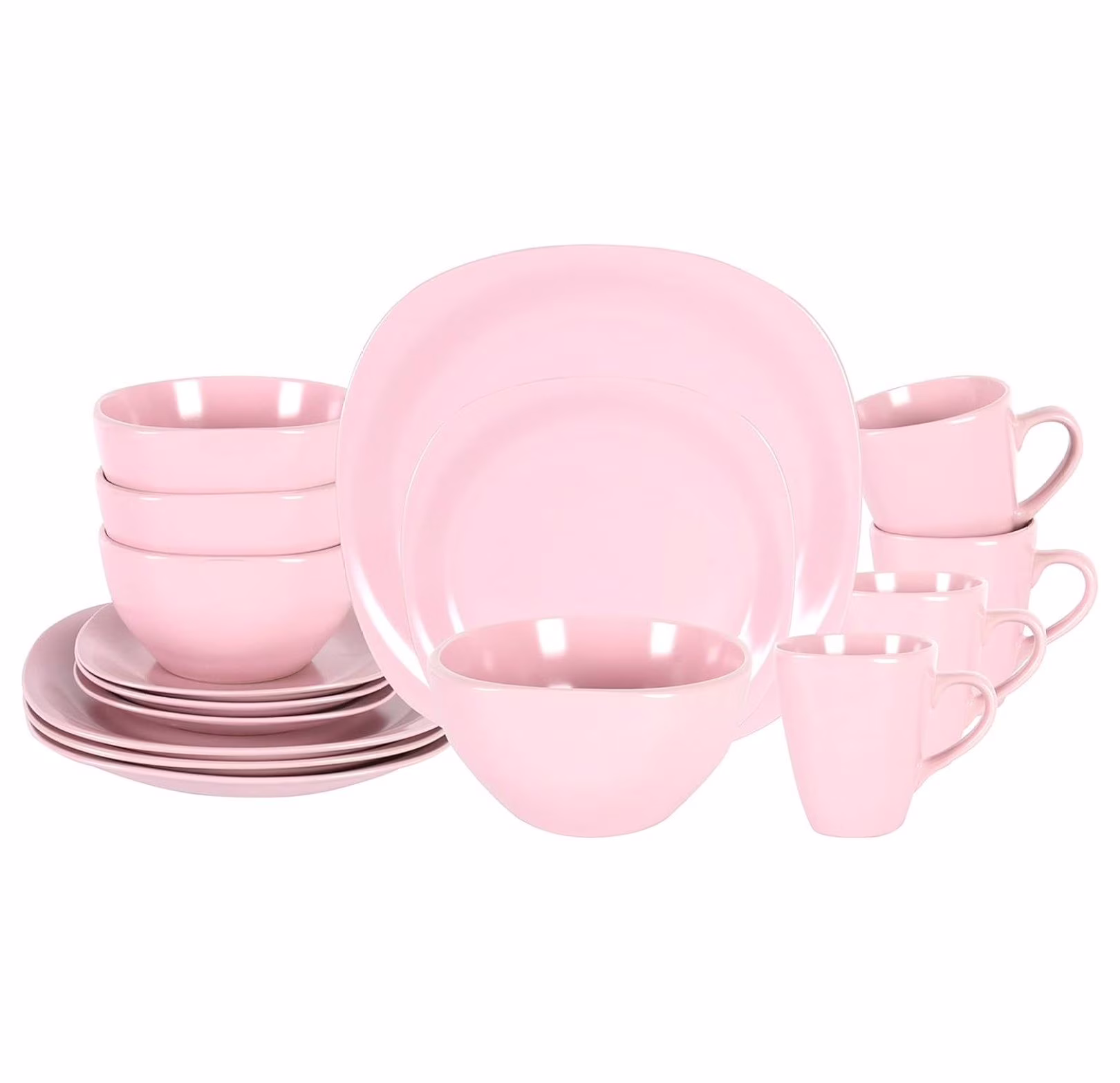 - Square Shape 16pc Set with Matte Rose Color, make your table colorful, modern, natural and attractive