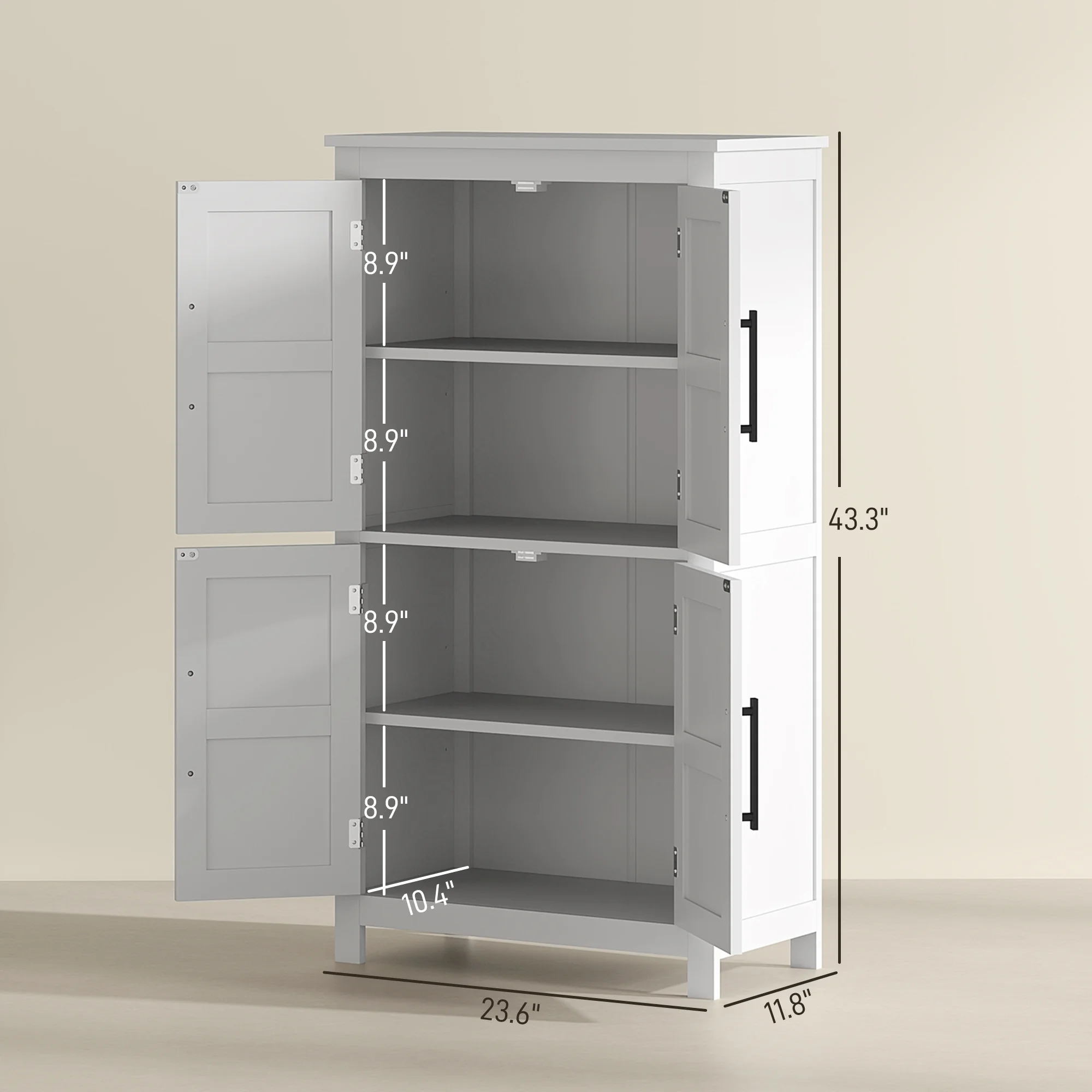 - Magnetic doors and metal handles ensure smooth opening and closing