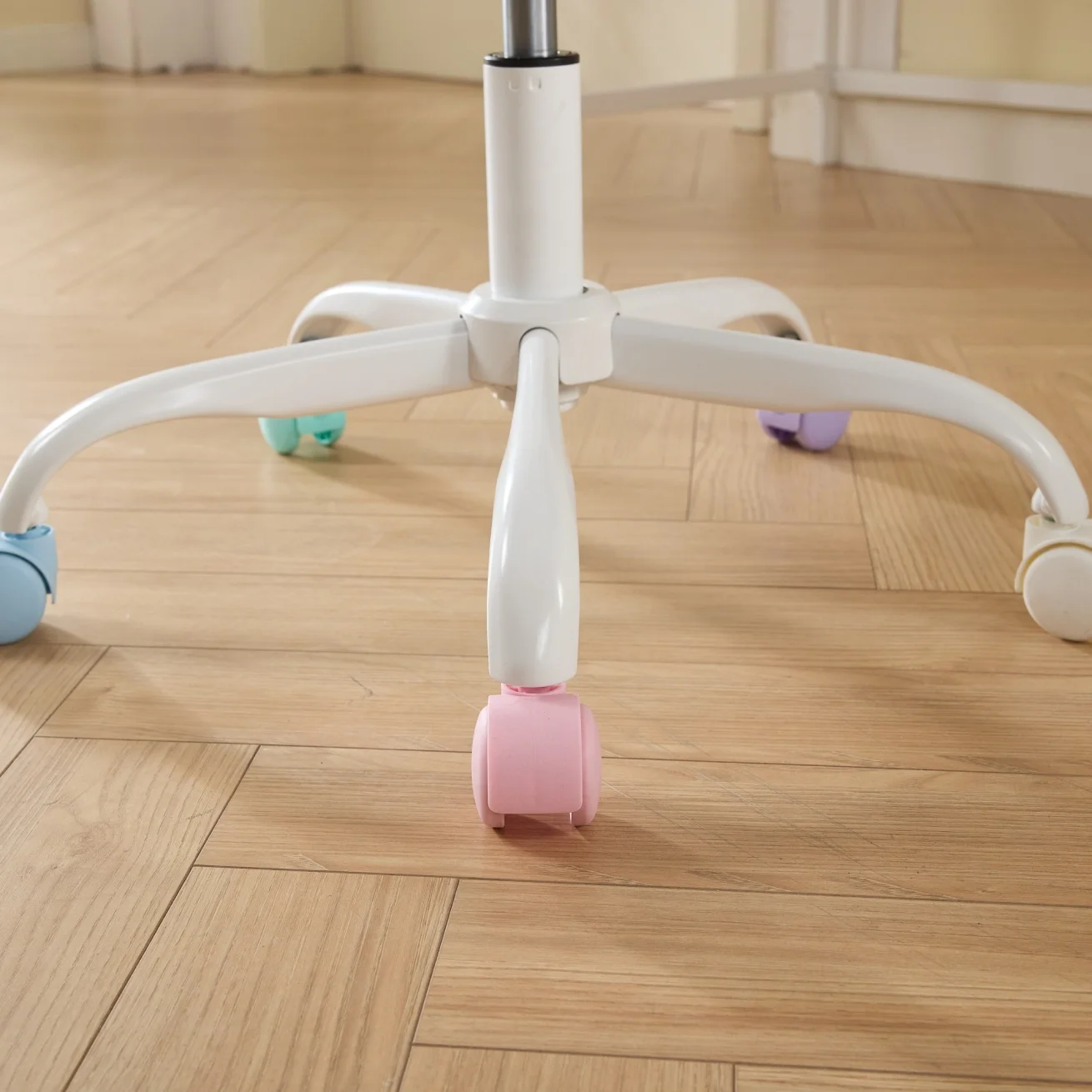 This A&A Furniture office chair is a single-box product originating from China, designed for study use��also suitable as a home office or vanity chair. It features a pink main color, artificial rabbit hair upholstery, and foam filling, blending style with comfort.