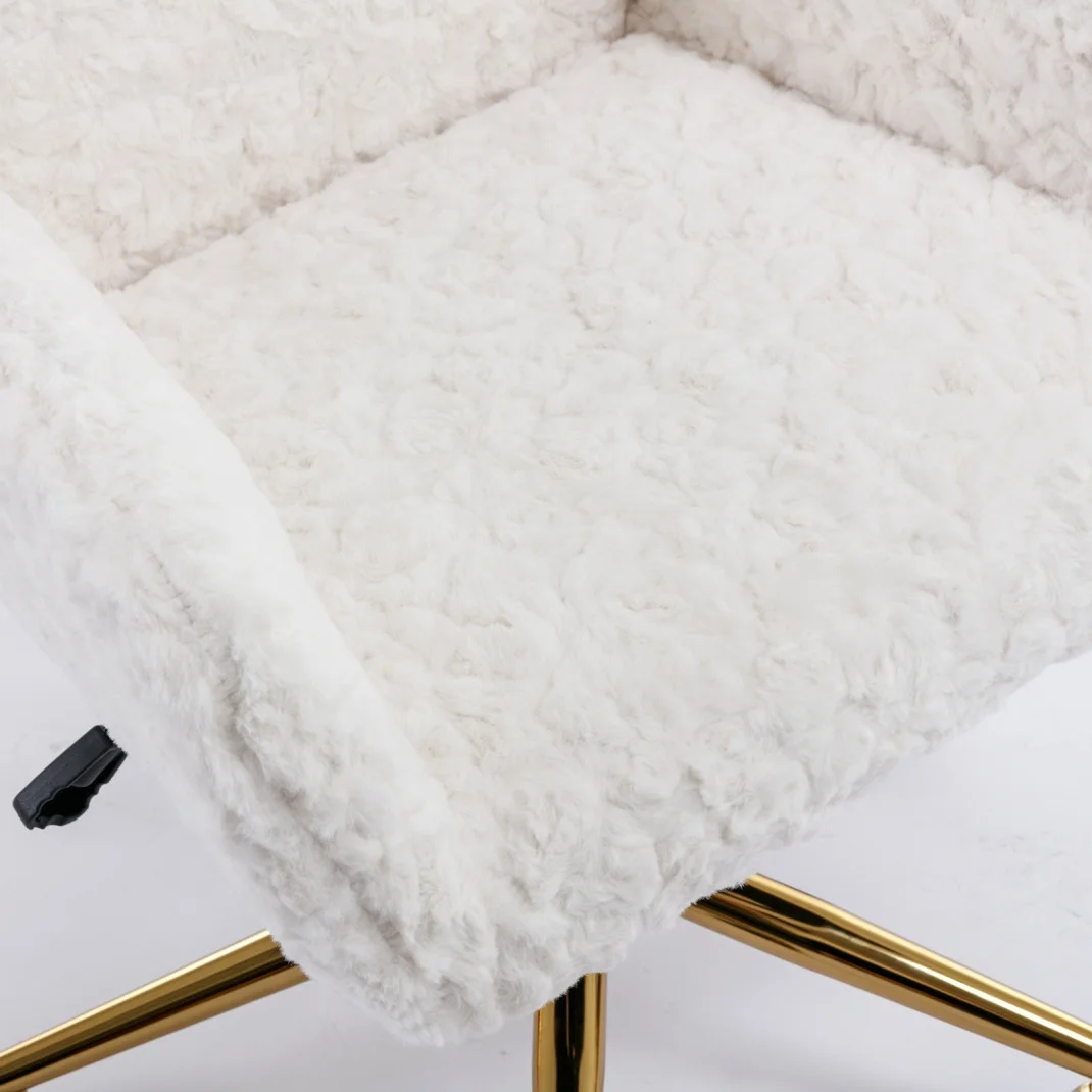 Product Name: A&A Furniture Office Chair,Artificial rabbit hair Home Office Chair with Golden Metal Base,Adjustable Desk Chair Swivel Office Chair,Vanity Chair(Pink)