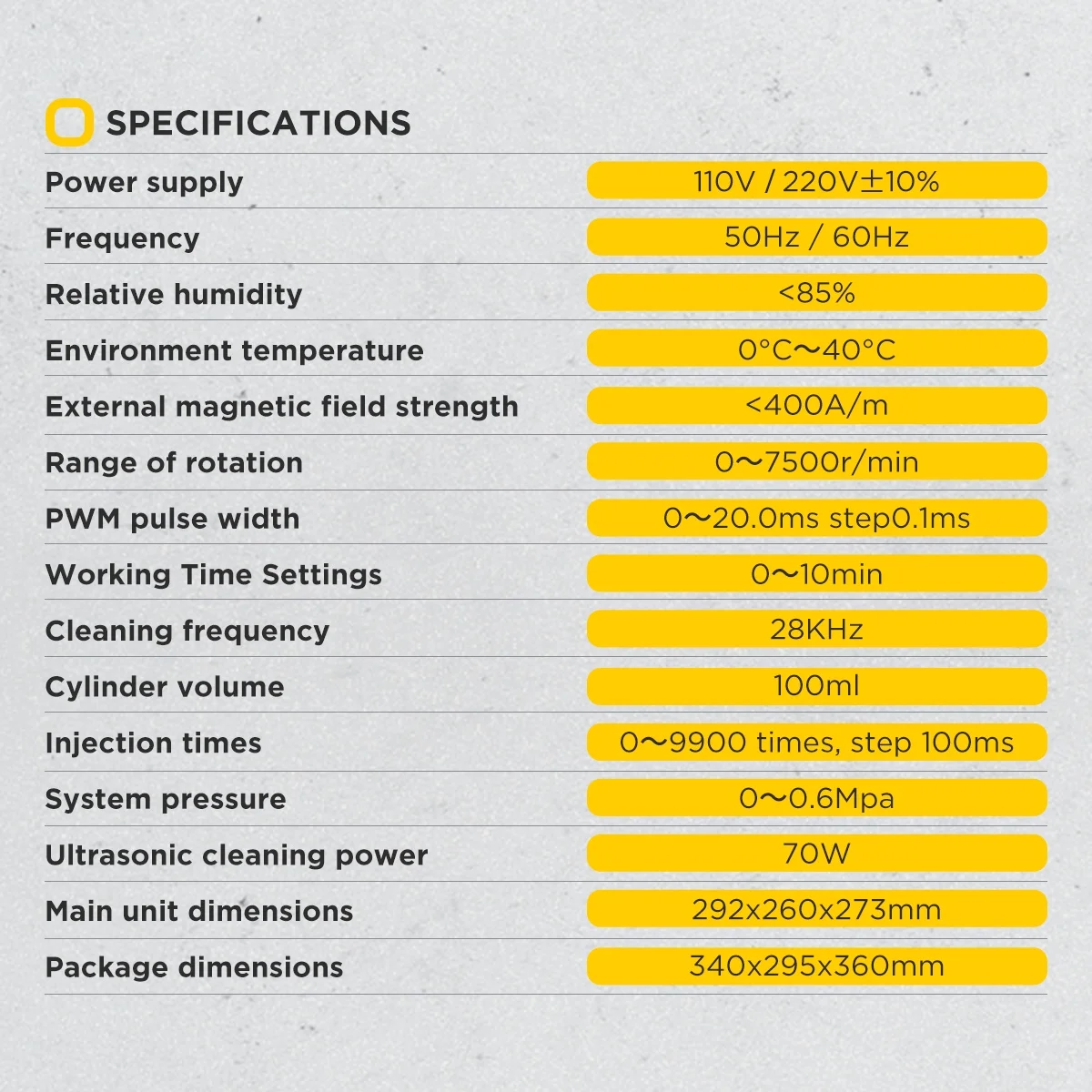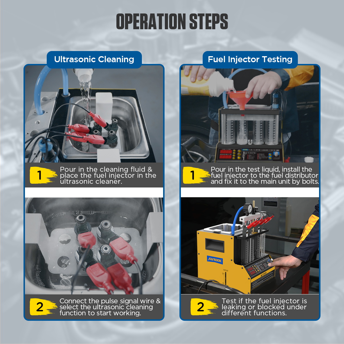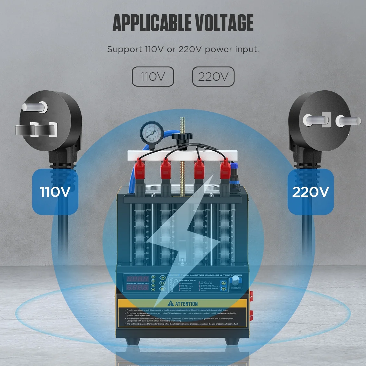 - Supports cleaning and testing of both car and motorcycle fuel injectors, covering 99% of the market