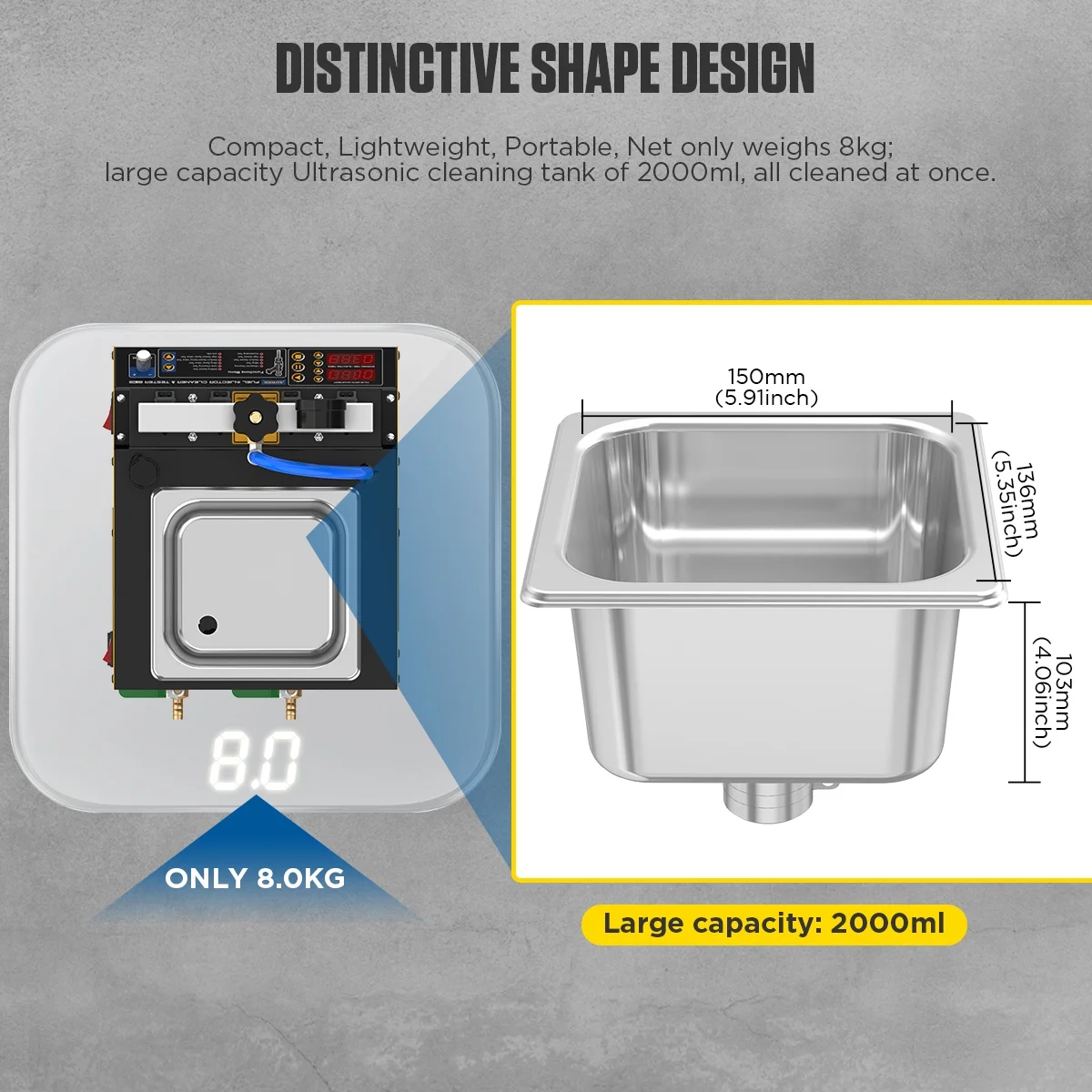 - Larger 2000ml cleaning tank and heating effect for the cleaning fluid to achieve better cleaning results