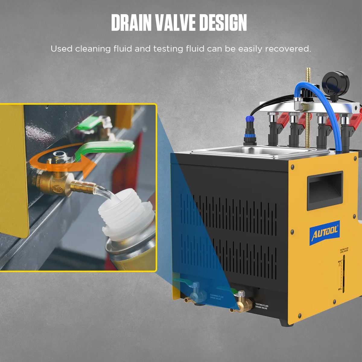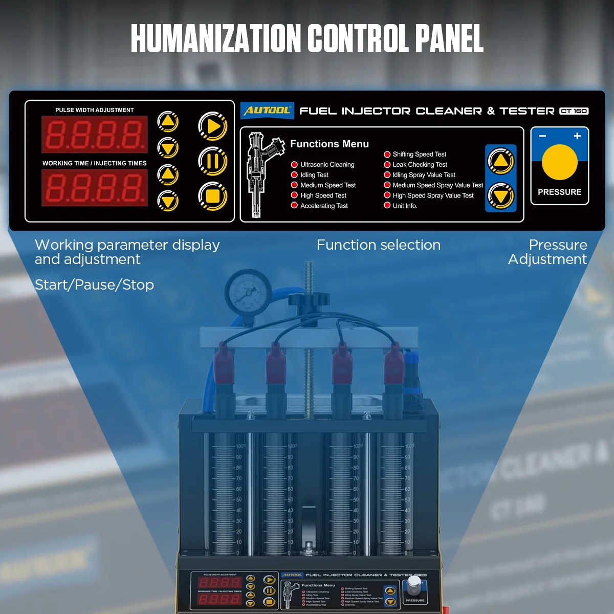 - Combines ultrasonic cleaning technology and microcomputer oil pressure closed-loop control cleaning and detection technology to thoroughly clean and inspect various automobile and motorcycle fuel injectors