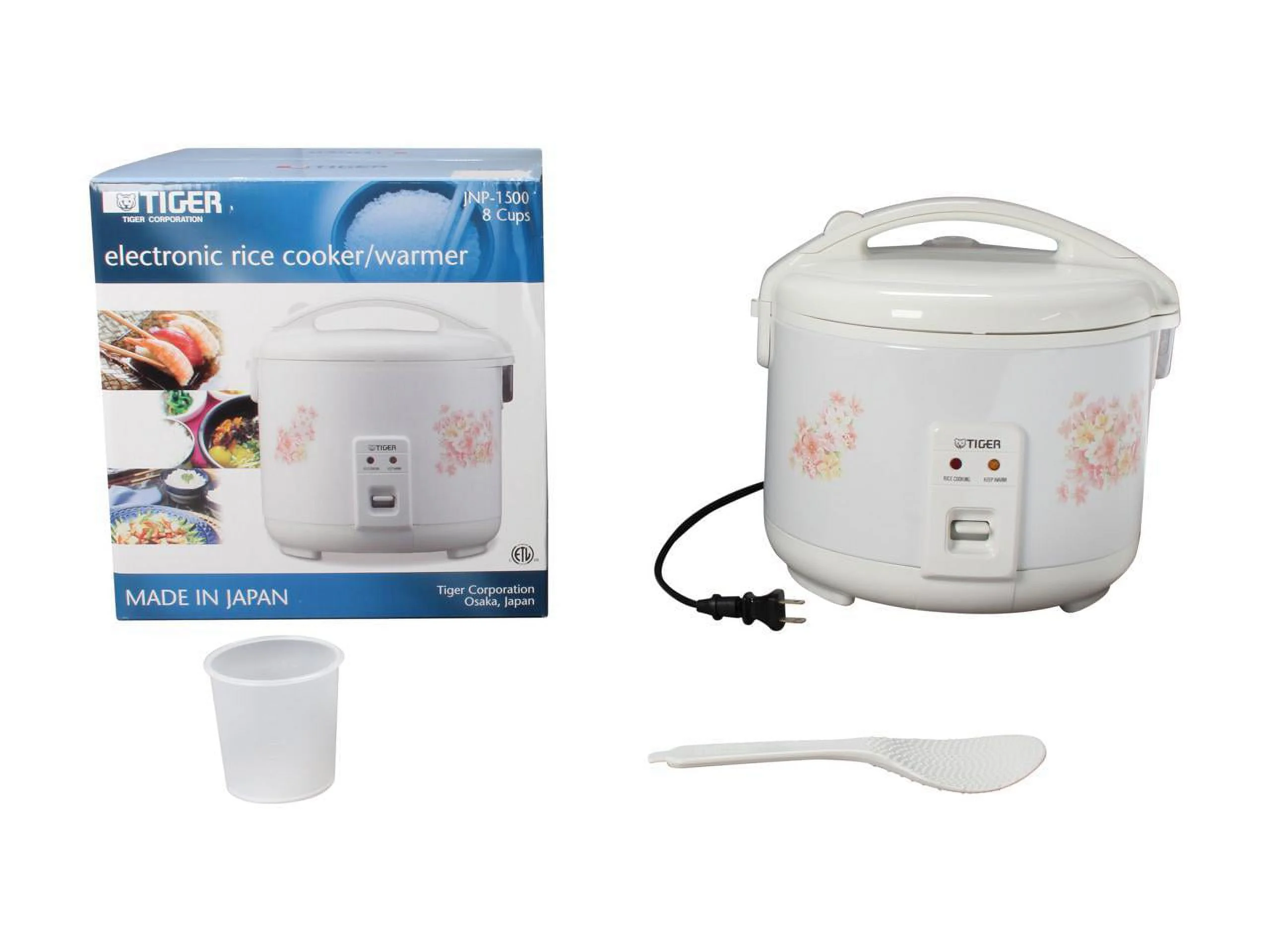 - TIGER JNP1500/RICE COOKER/8CUPSFeatures: Keep-warm function(up to 12 hours) Non-stick inner pan Retractable power cord Spatula & 6 oz.