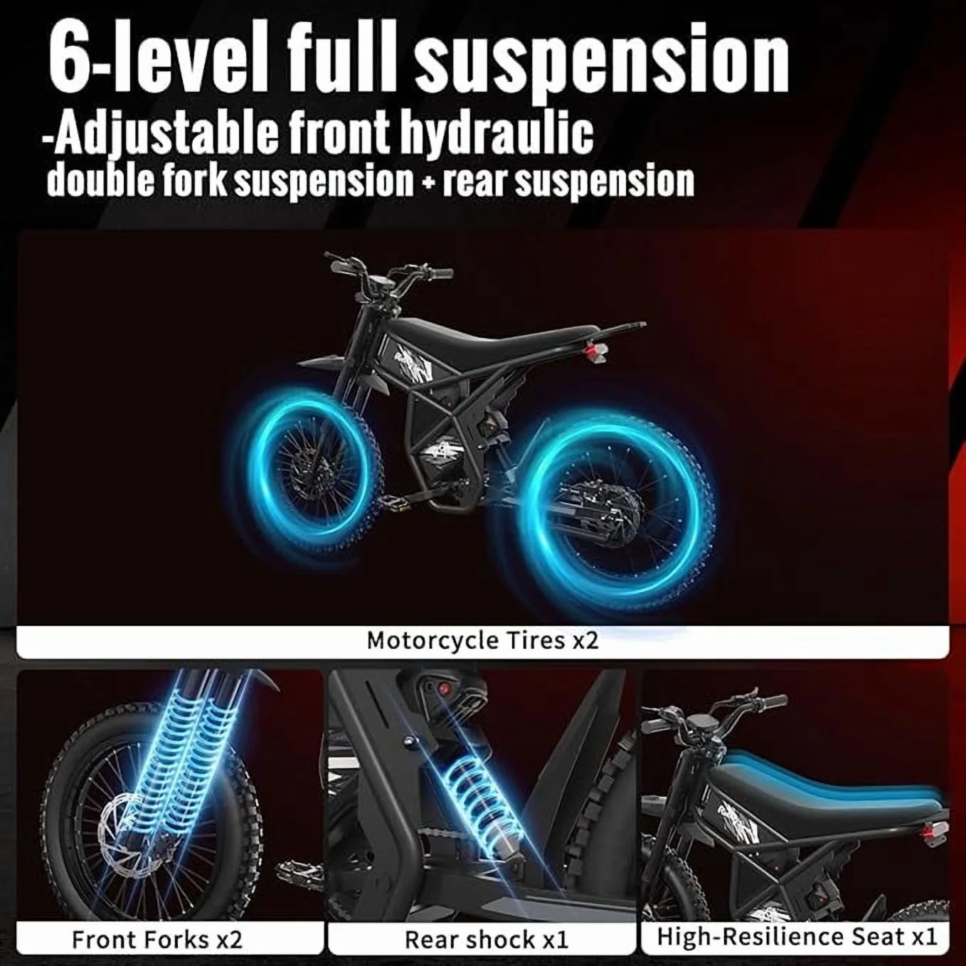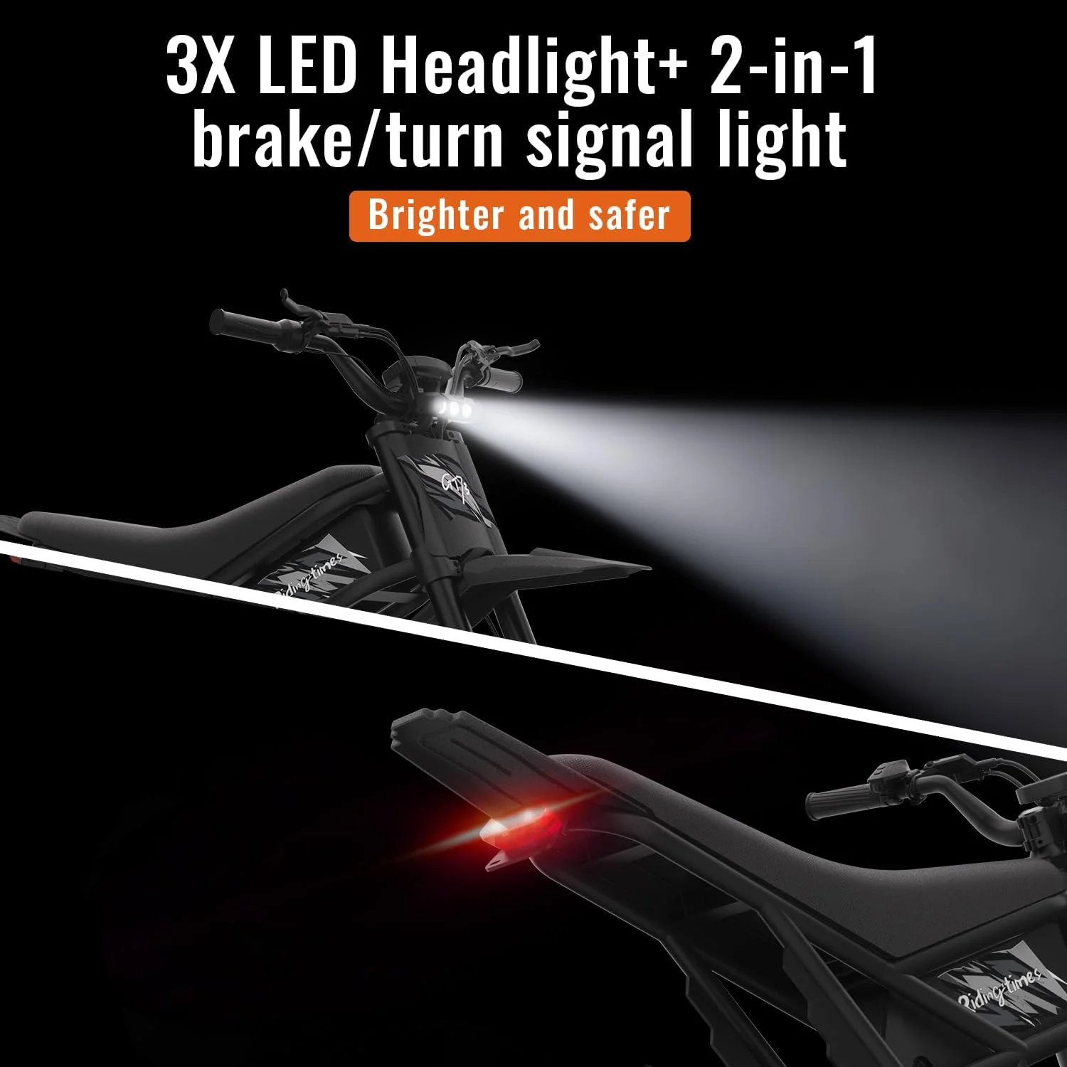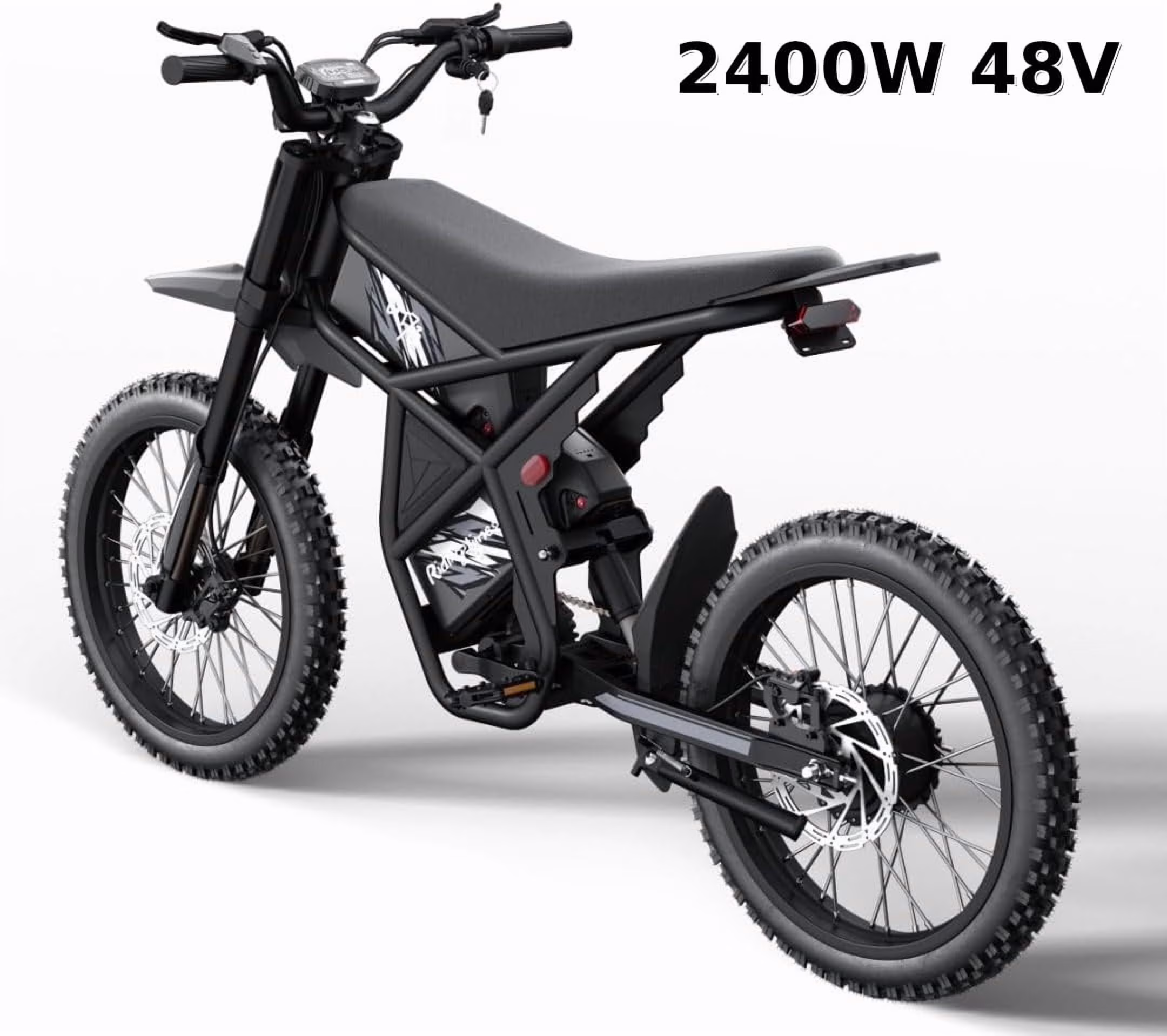 - Instant Power Clutch the throttle and feel the power of the GT73 dirt ebike. Meticulously crafted, this dirt ebike offers an optional ambient lighting package shaped like wings, adding a super cool touch to your ride. Powered by a robust 1000W motor with peak output of 2400W and equipped with dual 48V 18.2Ah batteries, the GT73 ensures a thrilling ride.