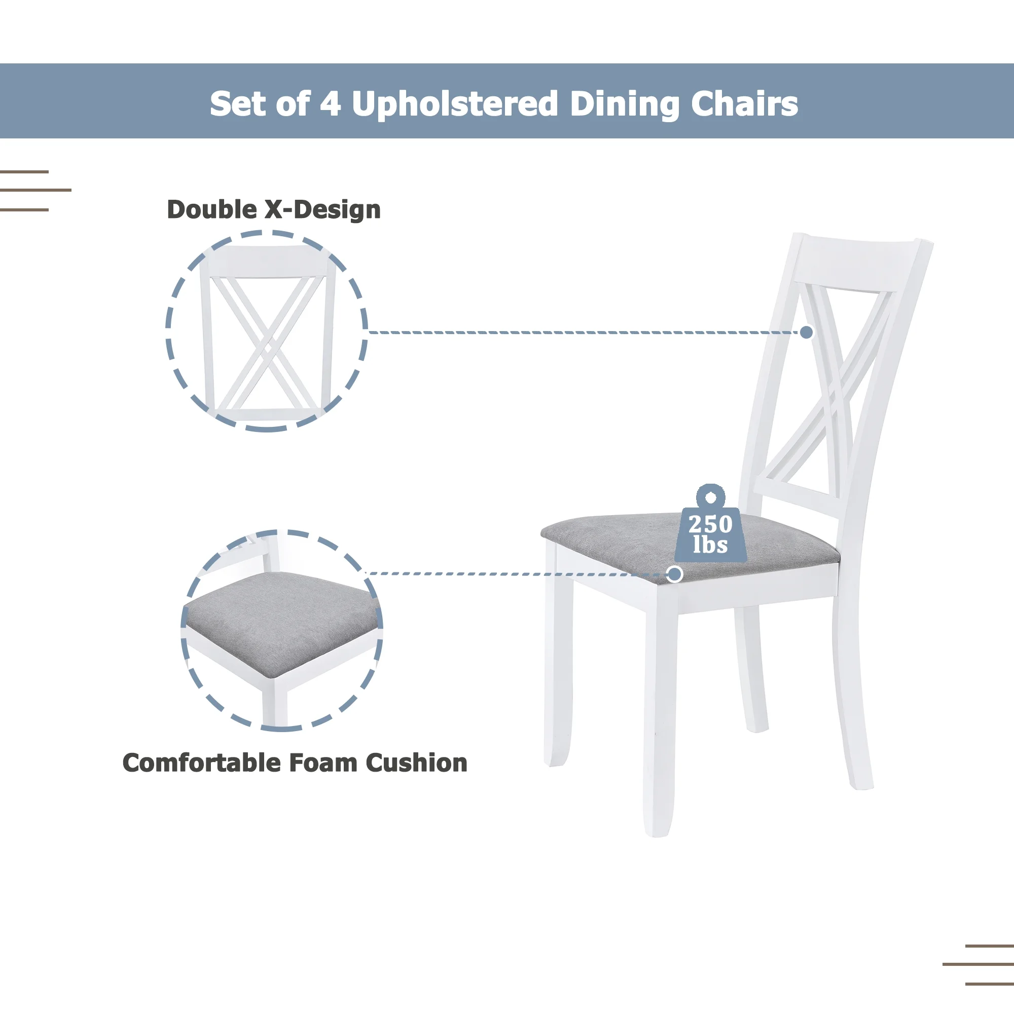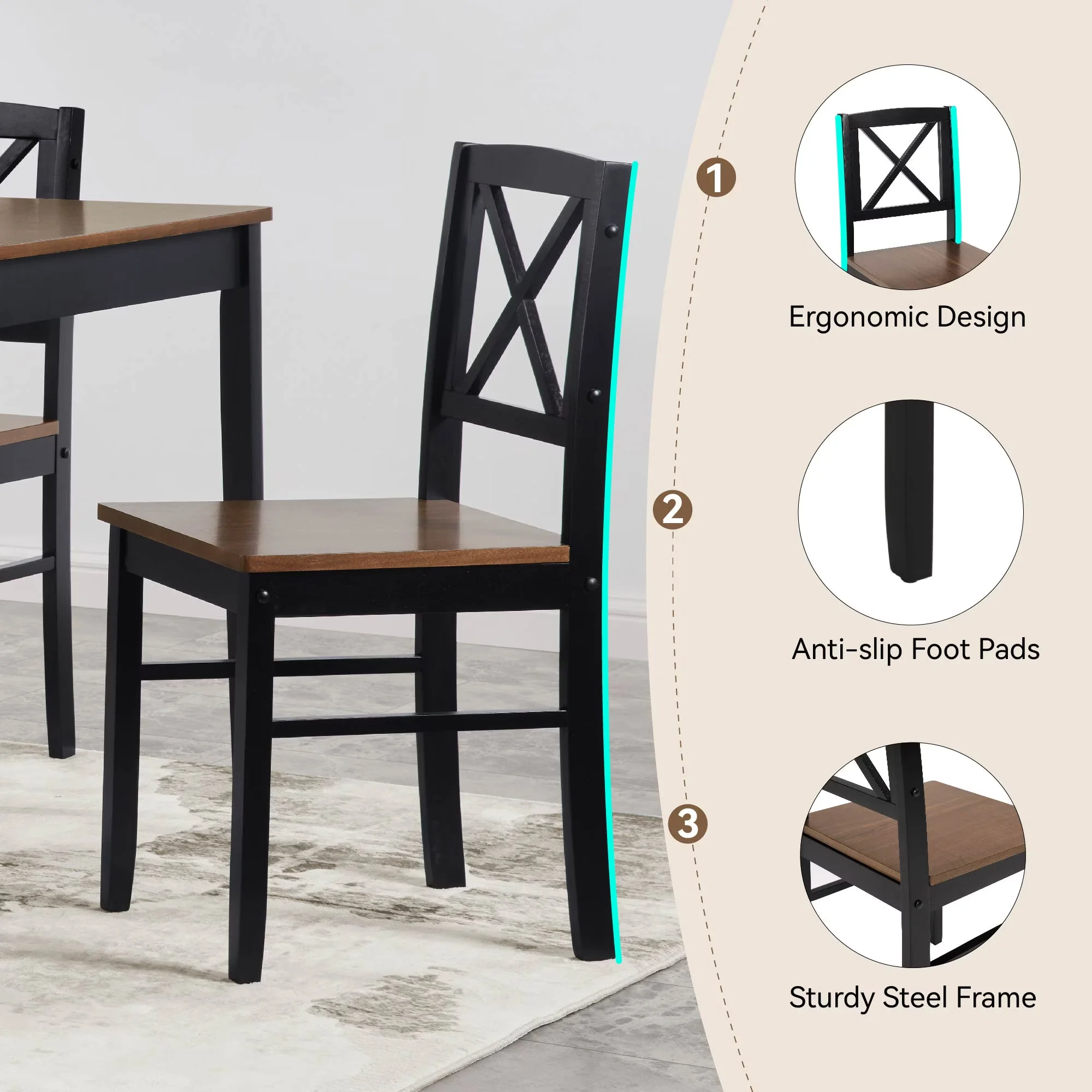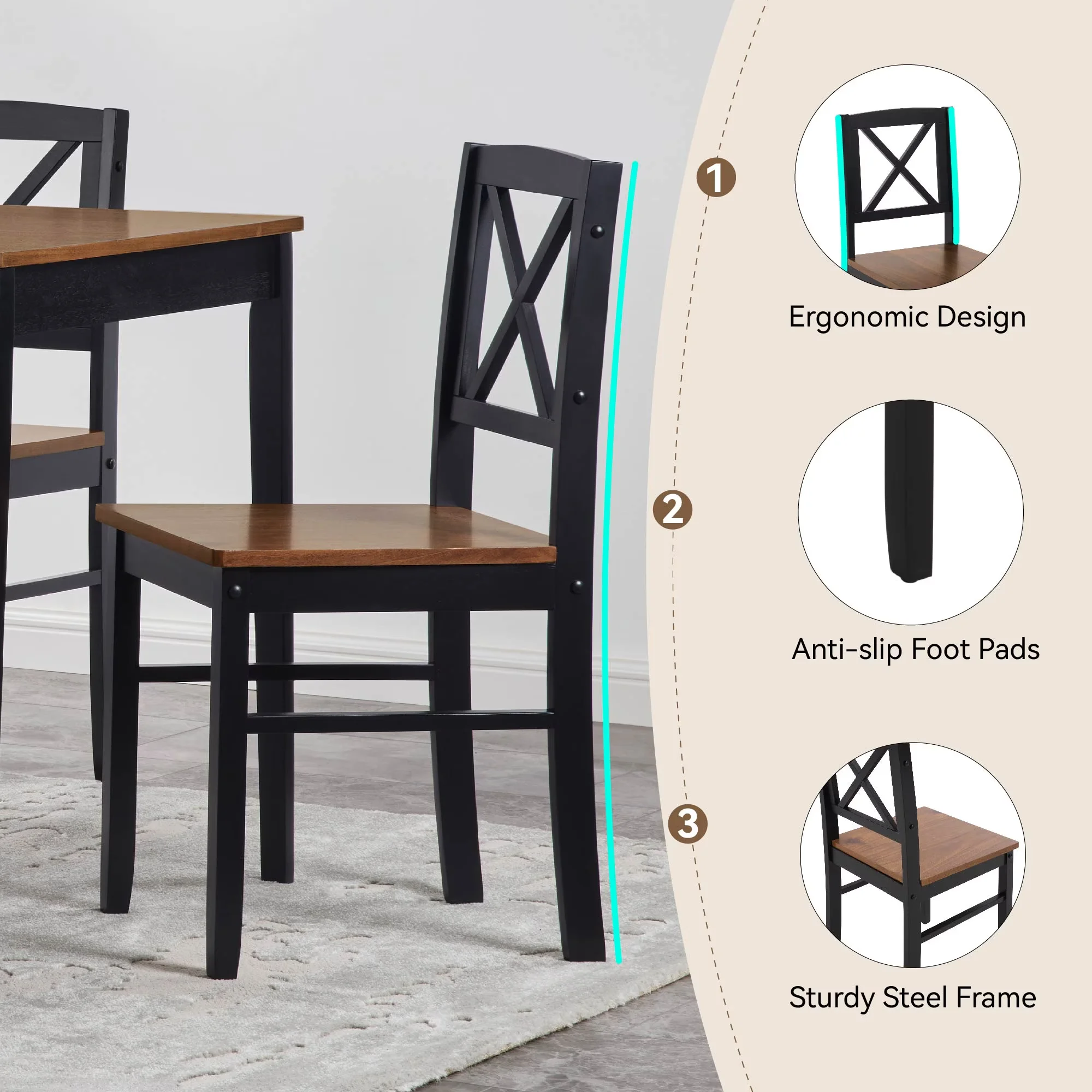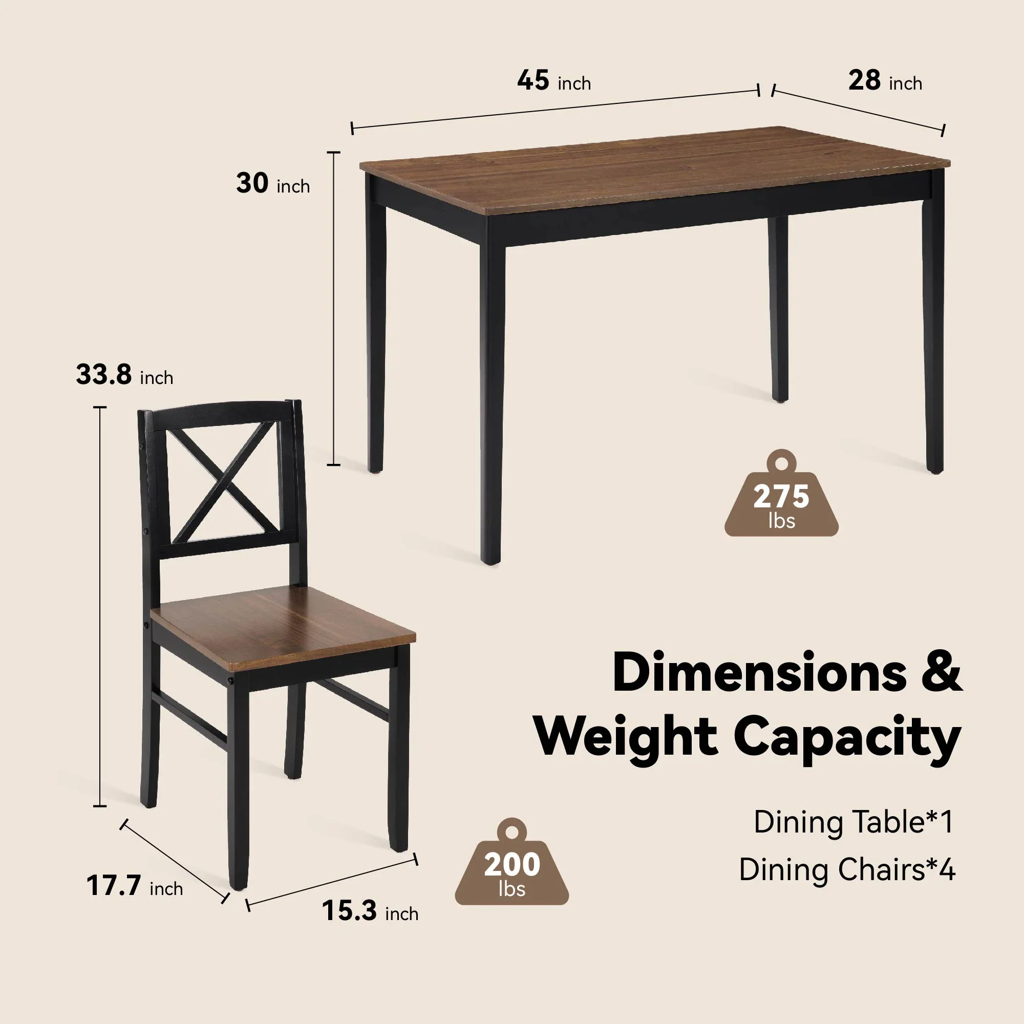 - ??[Sturdy Wood Construction] �C Built with a strong MDF tabletop and solid rubberwood legs, the table supports up to 250 lbs, while each chair supports 250 lbs. A reliable choice for everyday dining and gatherings.