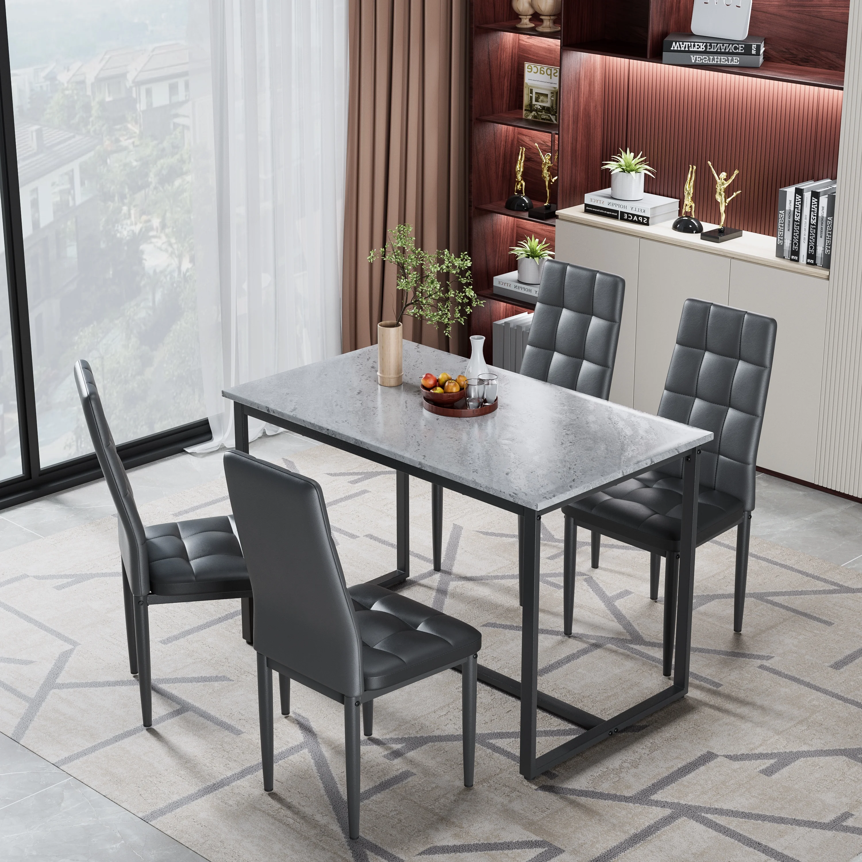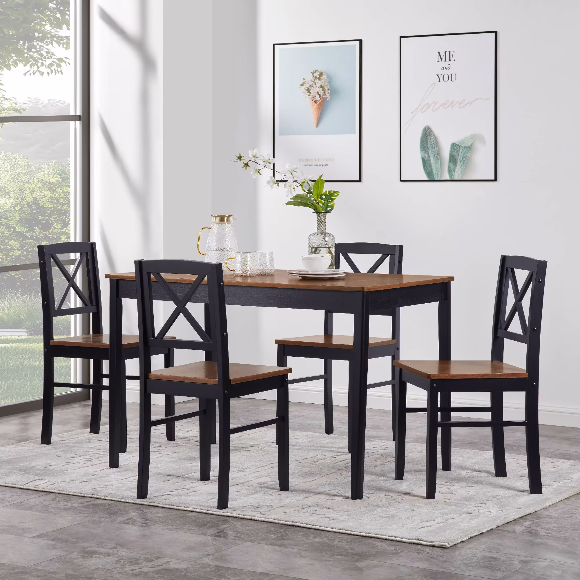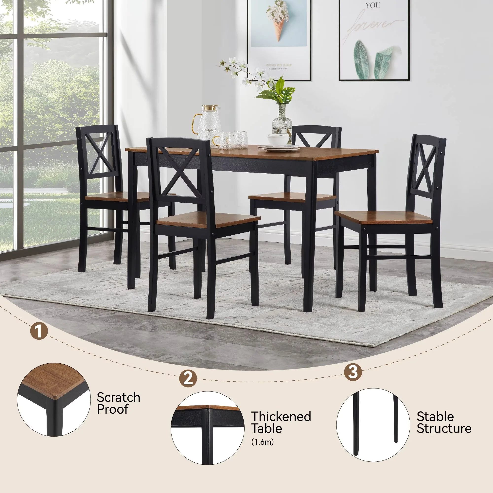 - ??[Complete 5-Piece Dining Set] �C Includes 1 rectangular dining table (44.5"L x 29.5"W) and 4 matching X-back dining chairs. Perfect as a dining table set for 4, ideal for kitchens, dining rooms, or small apartments.