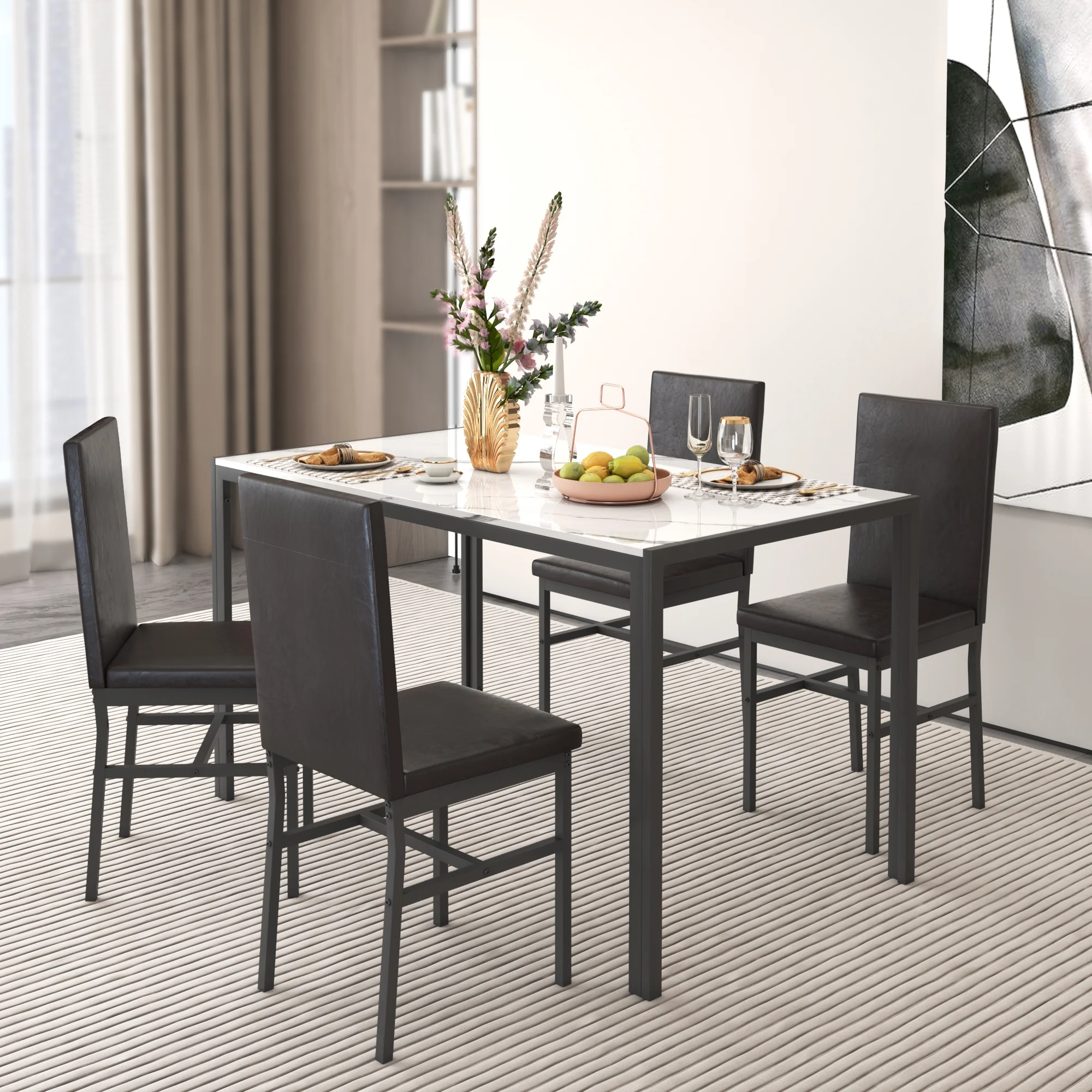 ?Tip: This 5-Piece Dining Table Set is shipped in two packages and may arrive at different times, so please be patient!
