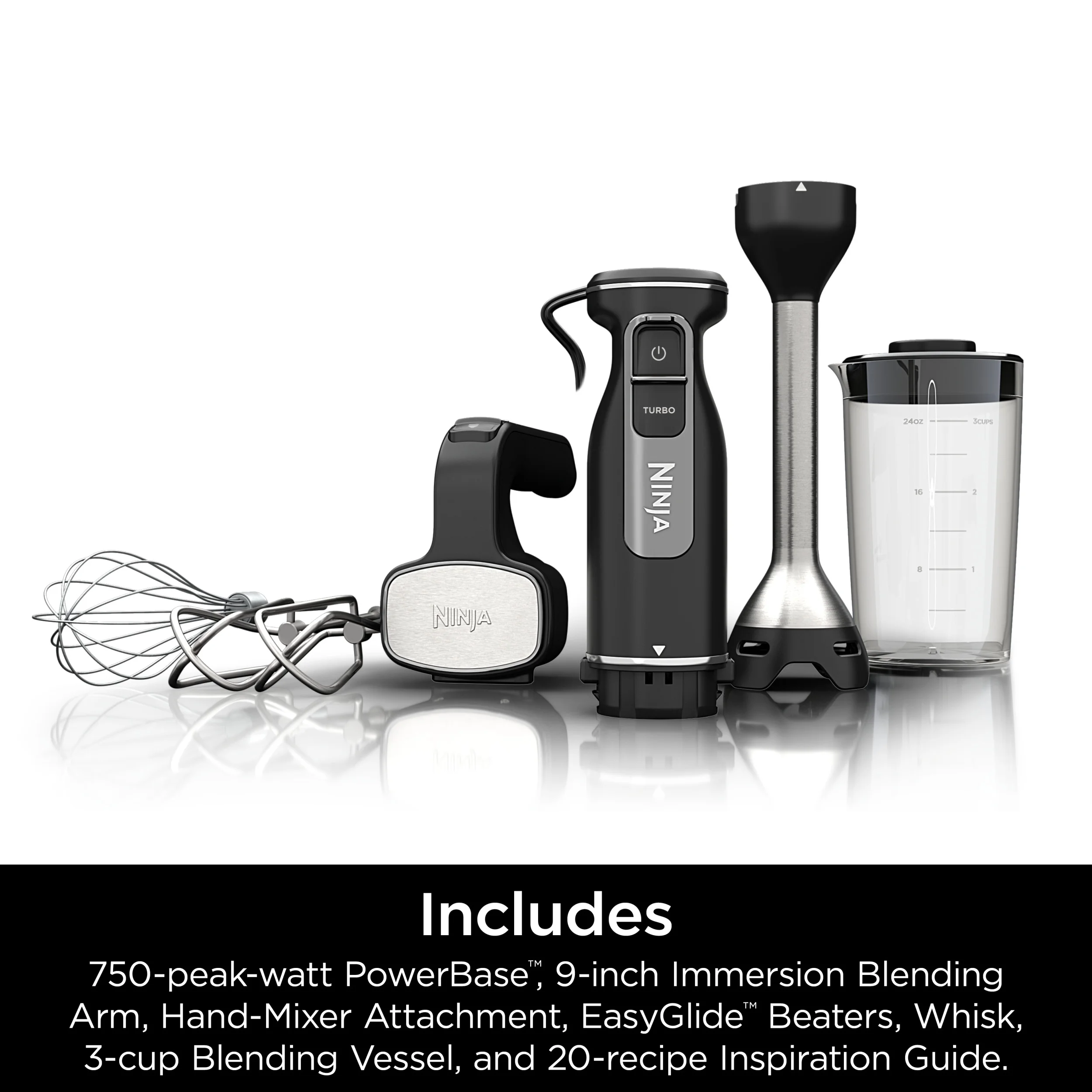 - Versatility Meets Power: The 750-peak-watt PowerBase transforms into a high-speed hand mixer and powerful immersion blender