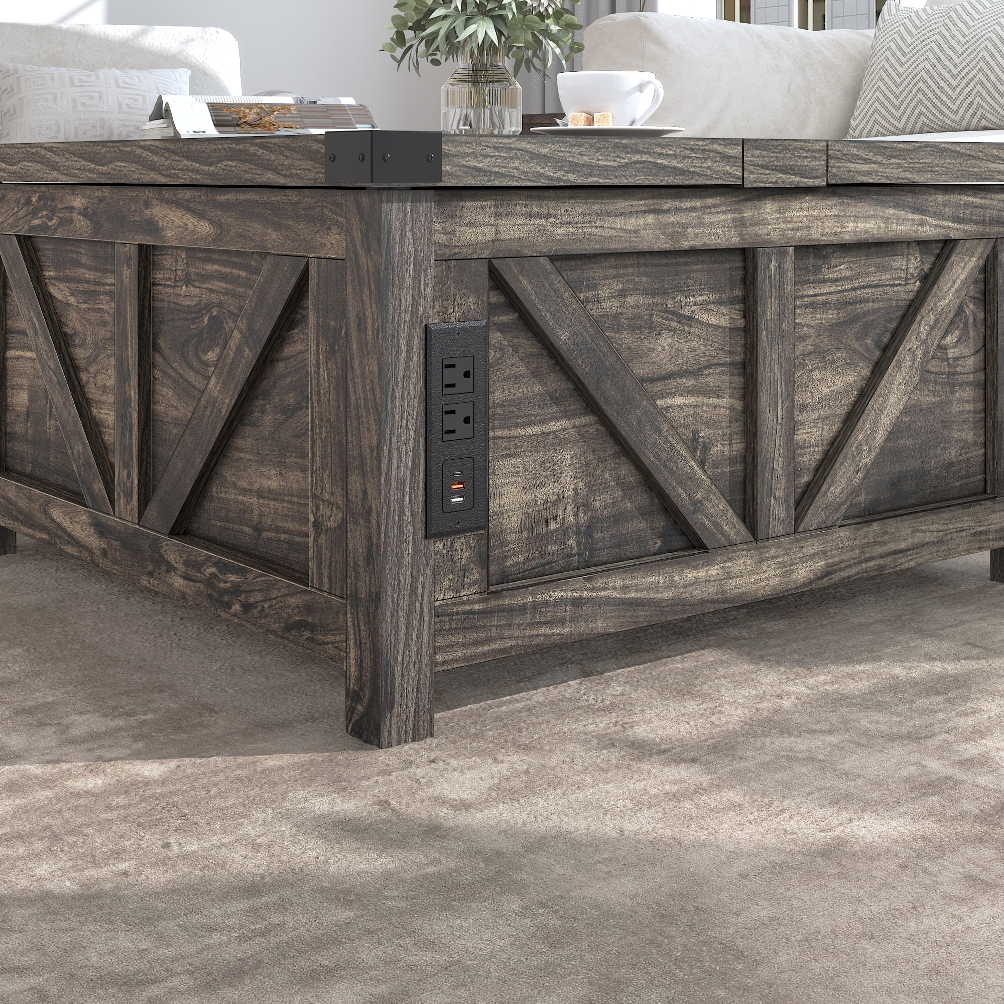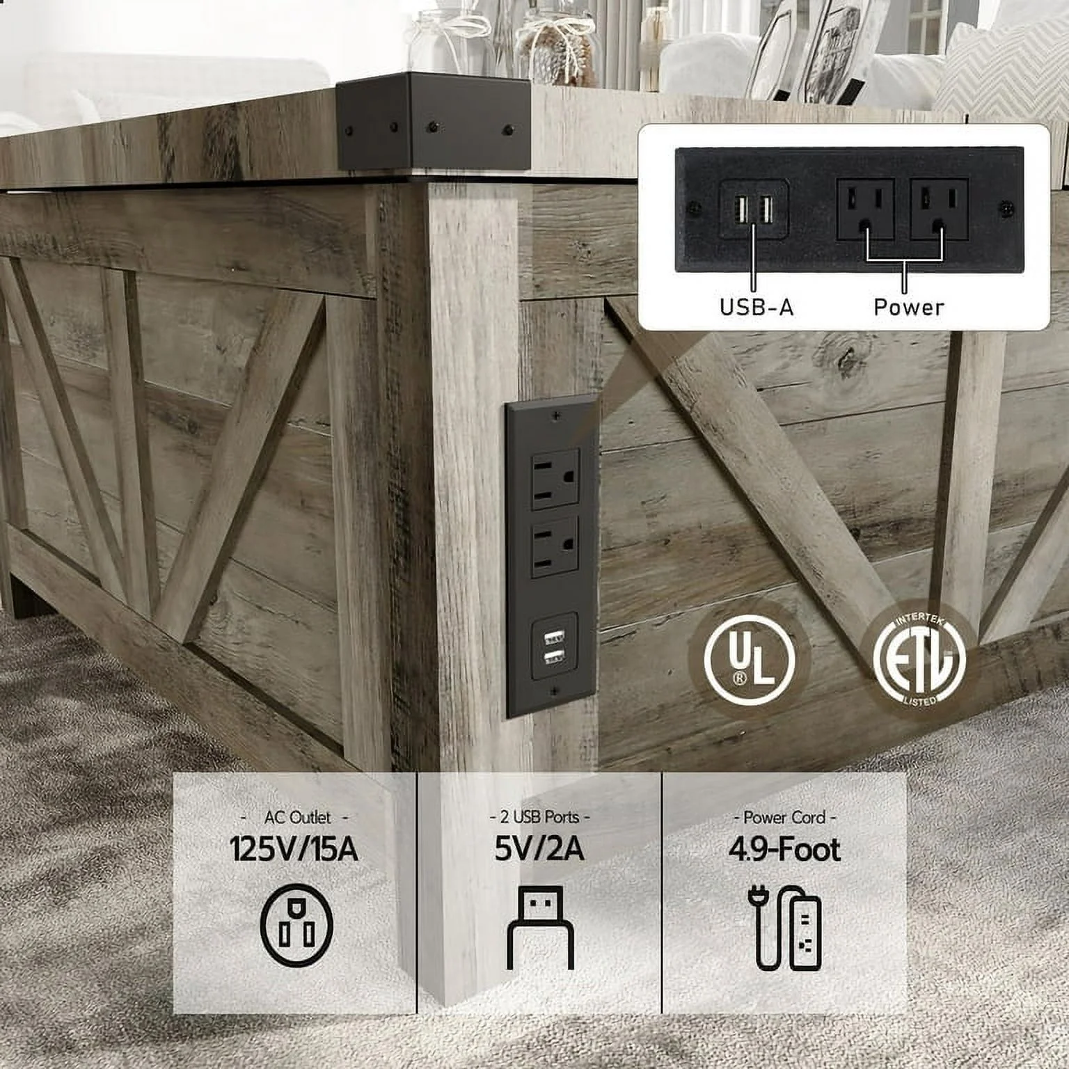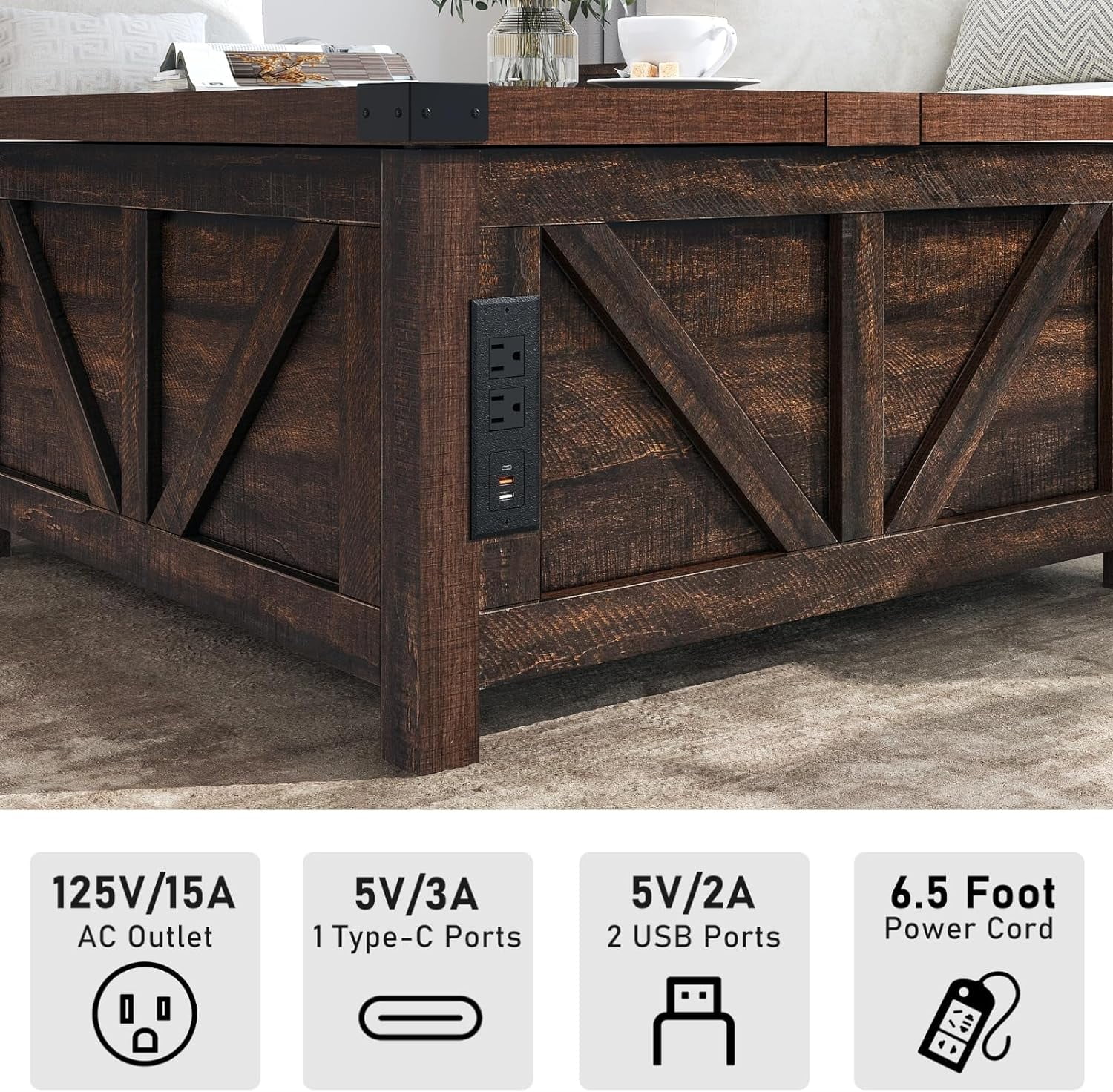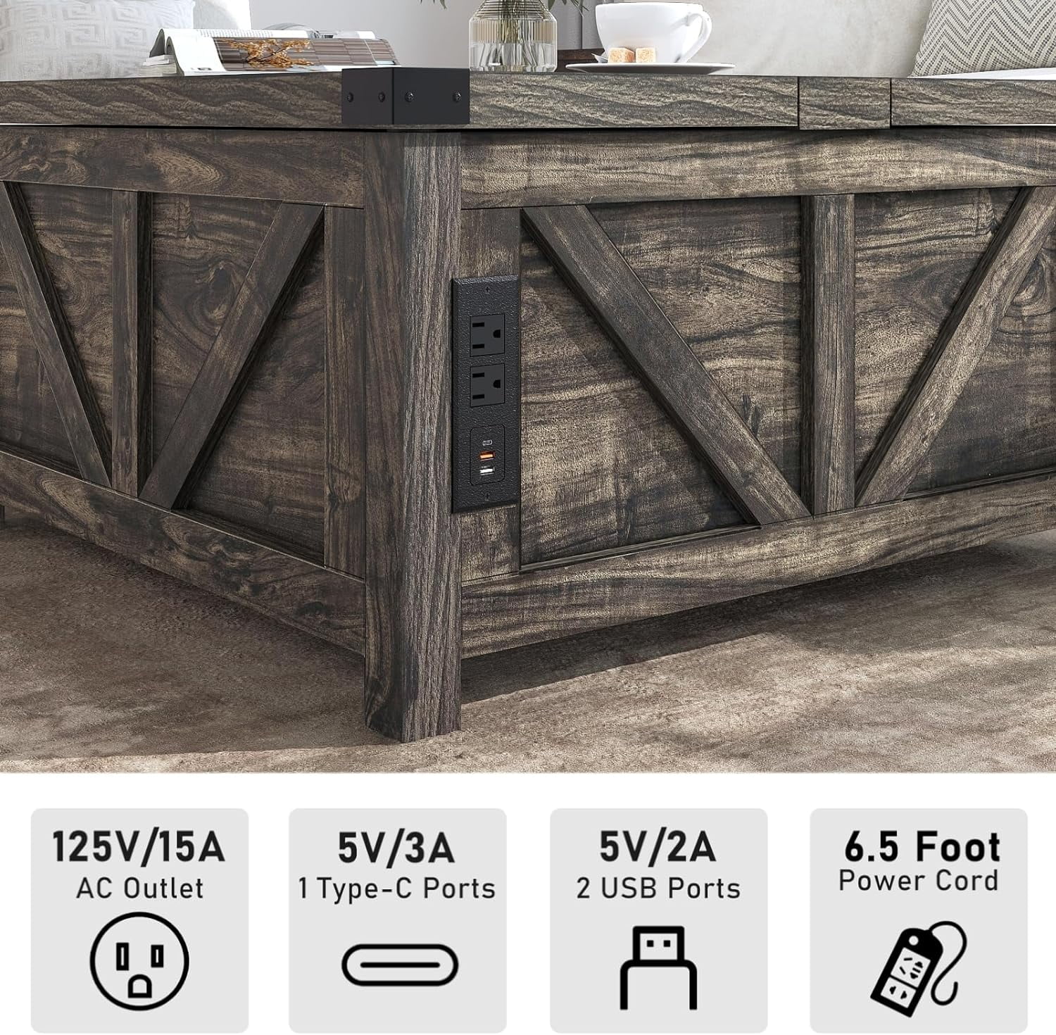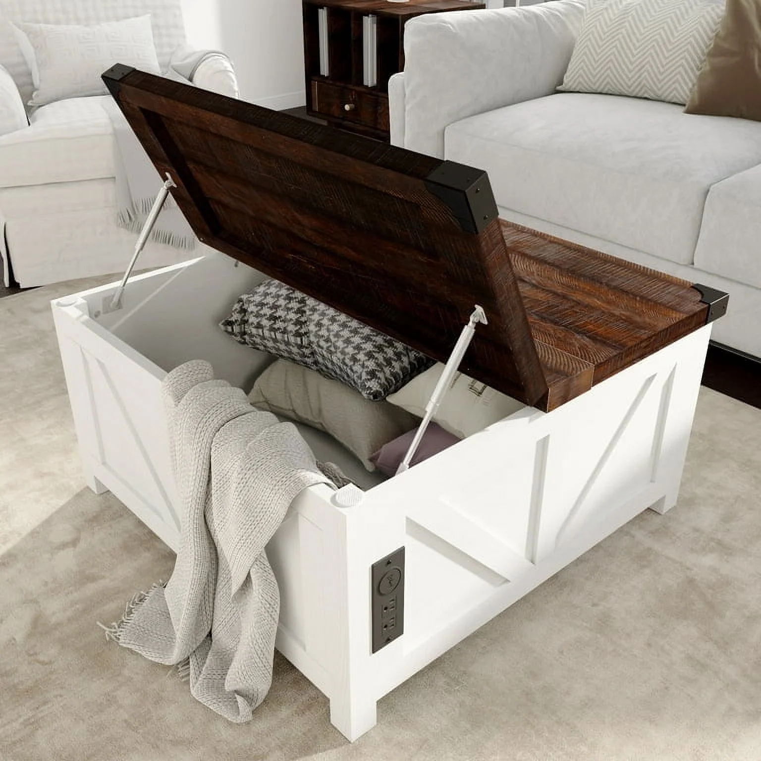 Convenient Design: The white wooden coffee table experiences smooth and safe lifting with a high-quality lifting mechanism featuring gas struts. It can be lifted to a height of 60cm from the ground for convenient office work. There are 2 USB ports and 2 output ports on the side for phone charging or using the notebook.