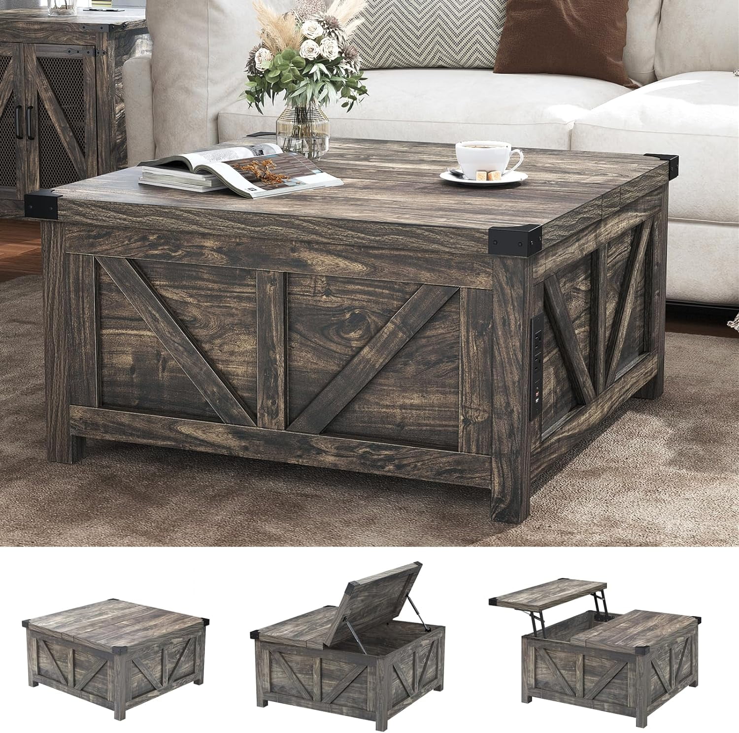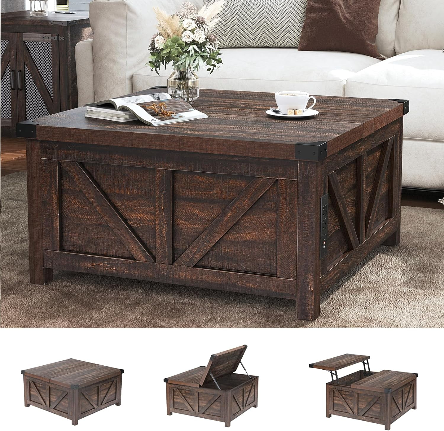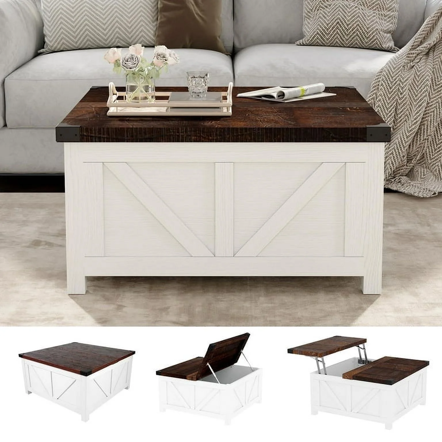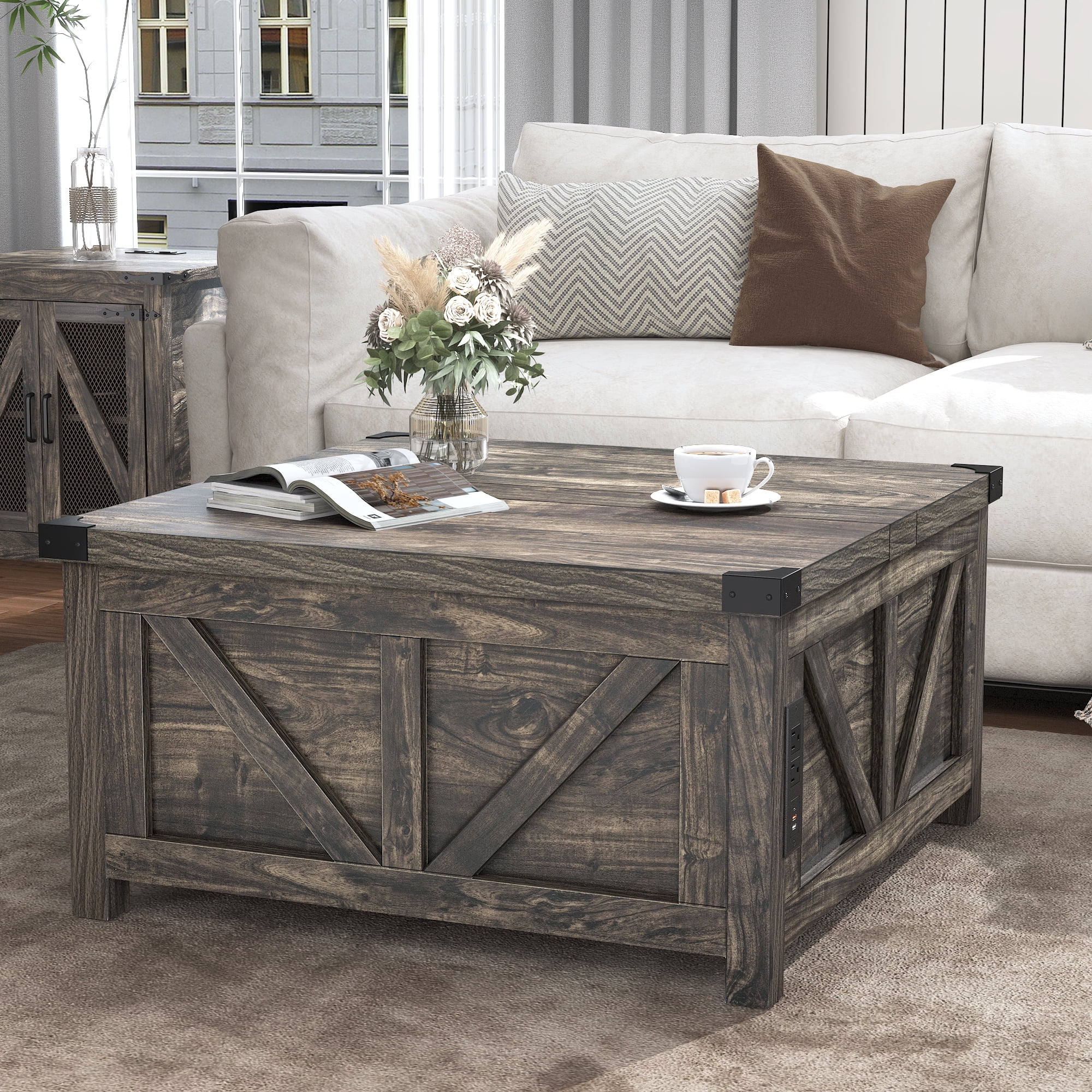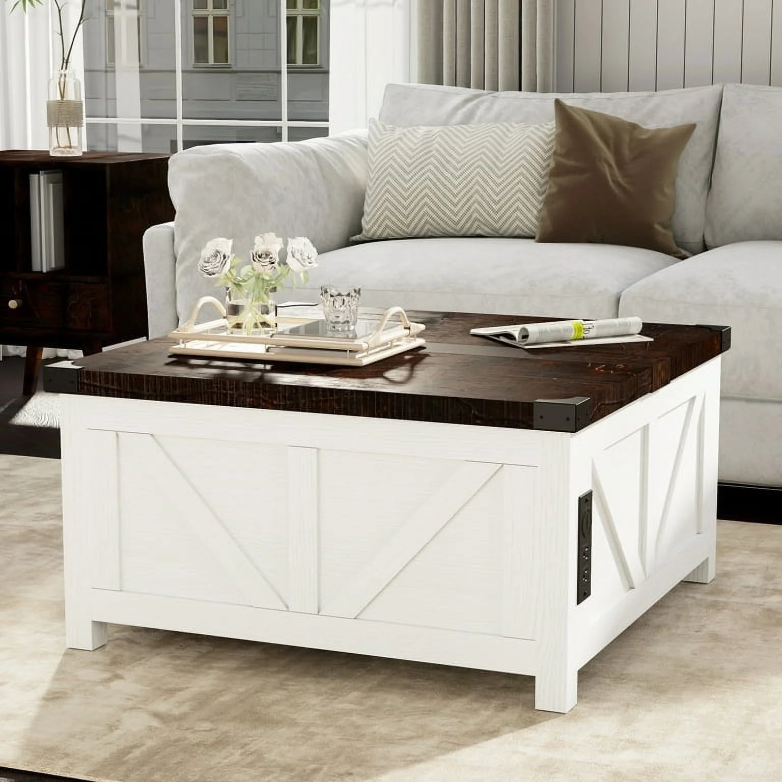 Farmhouse Charm: Our white square farmhouse coffee table is crafted from its original wood grain, classic farm barn shape design with metal corners decor to add a retro accent. Its farmhouse yet stylish design complements modern, rustic, industrial, or vintage decor. The unique square shape is just the right size to not only complement your sofa well but also fit well in both small and large spaces.