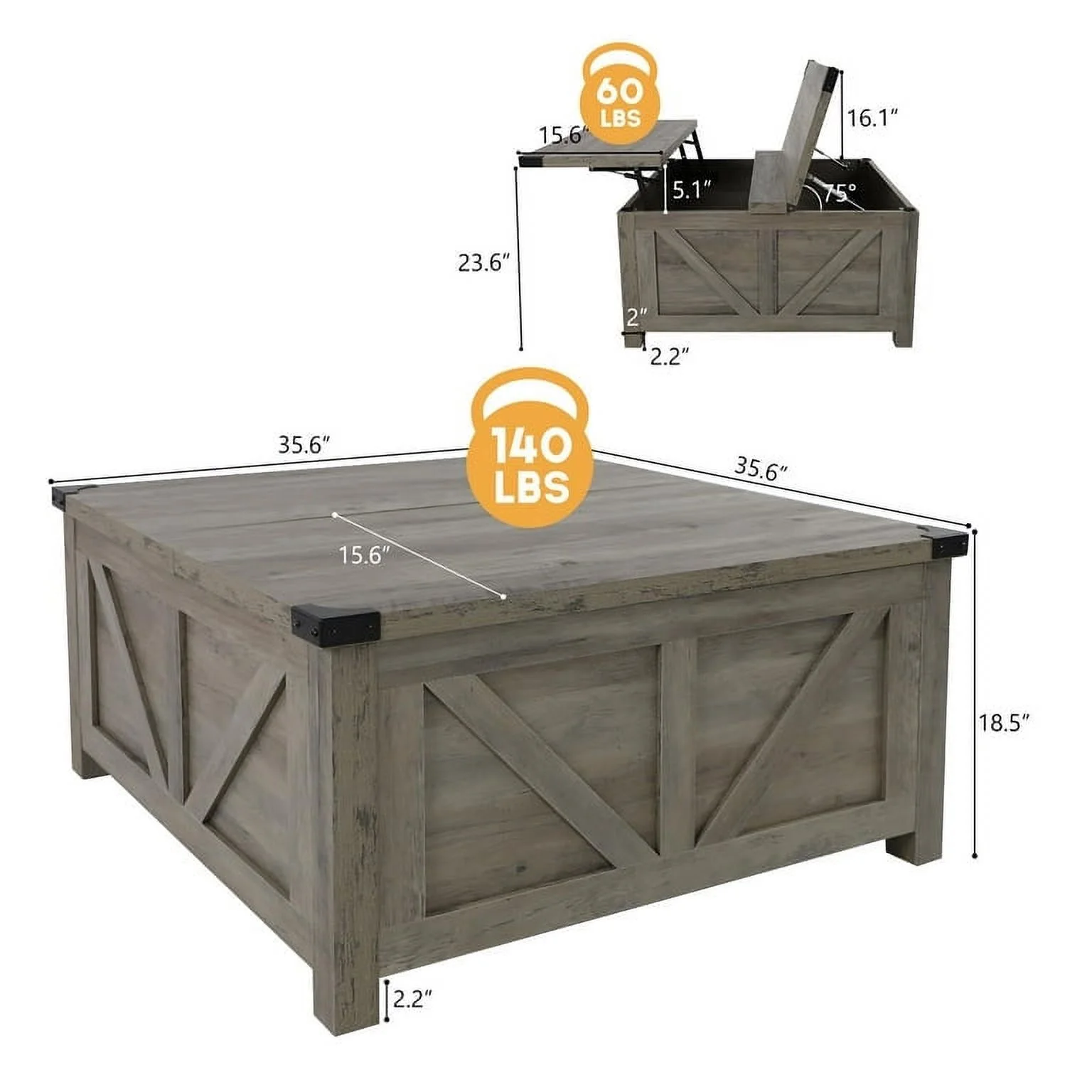 Product Size: 35.6" L x 35.6"W x 18.5"H