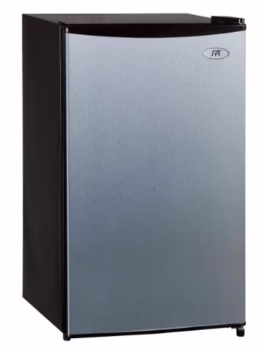 Flush back, compact design is ideal for college dorm room or office. Reversible doors offer versatility. Features tall bottle door rack, can storage, full-width freezer compartment and adjustable thermostat.