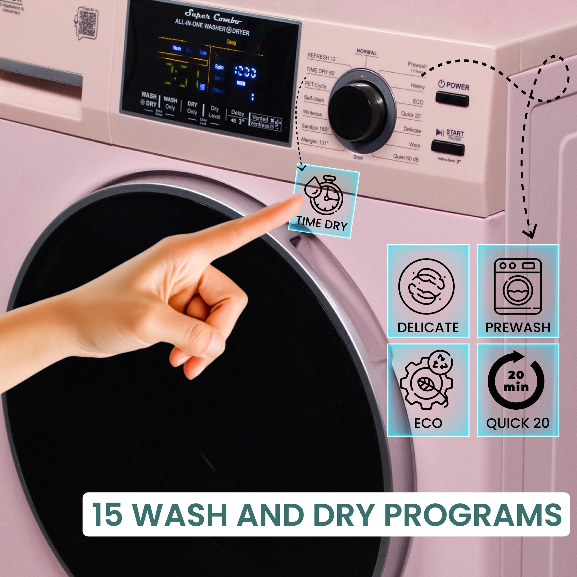 - All-in-One Washer + Dryer Combo Wash and dry in one machine, 1.62cf/15lbs capacity, ideal for apartments, studios, RVs, and space-conscious homes.