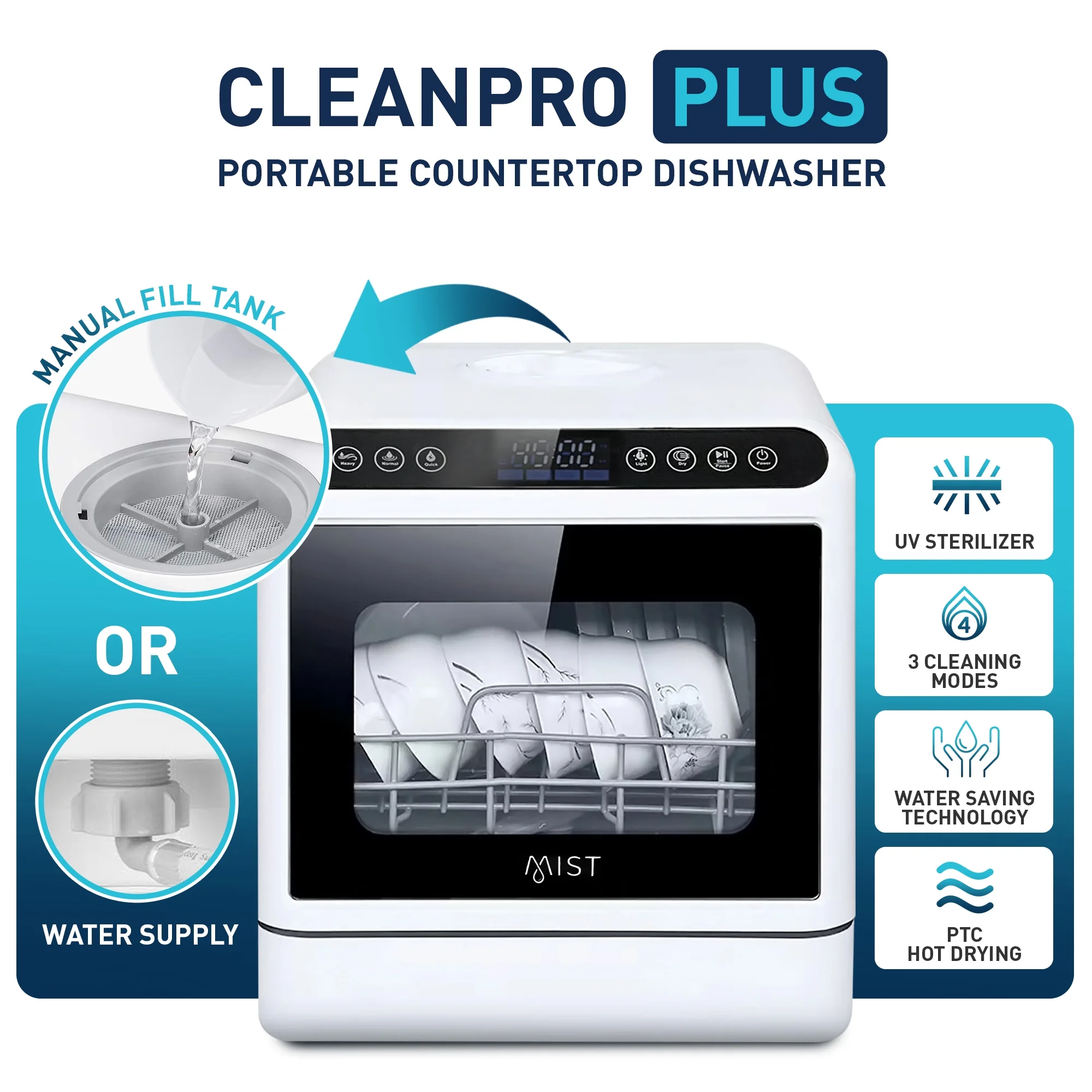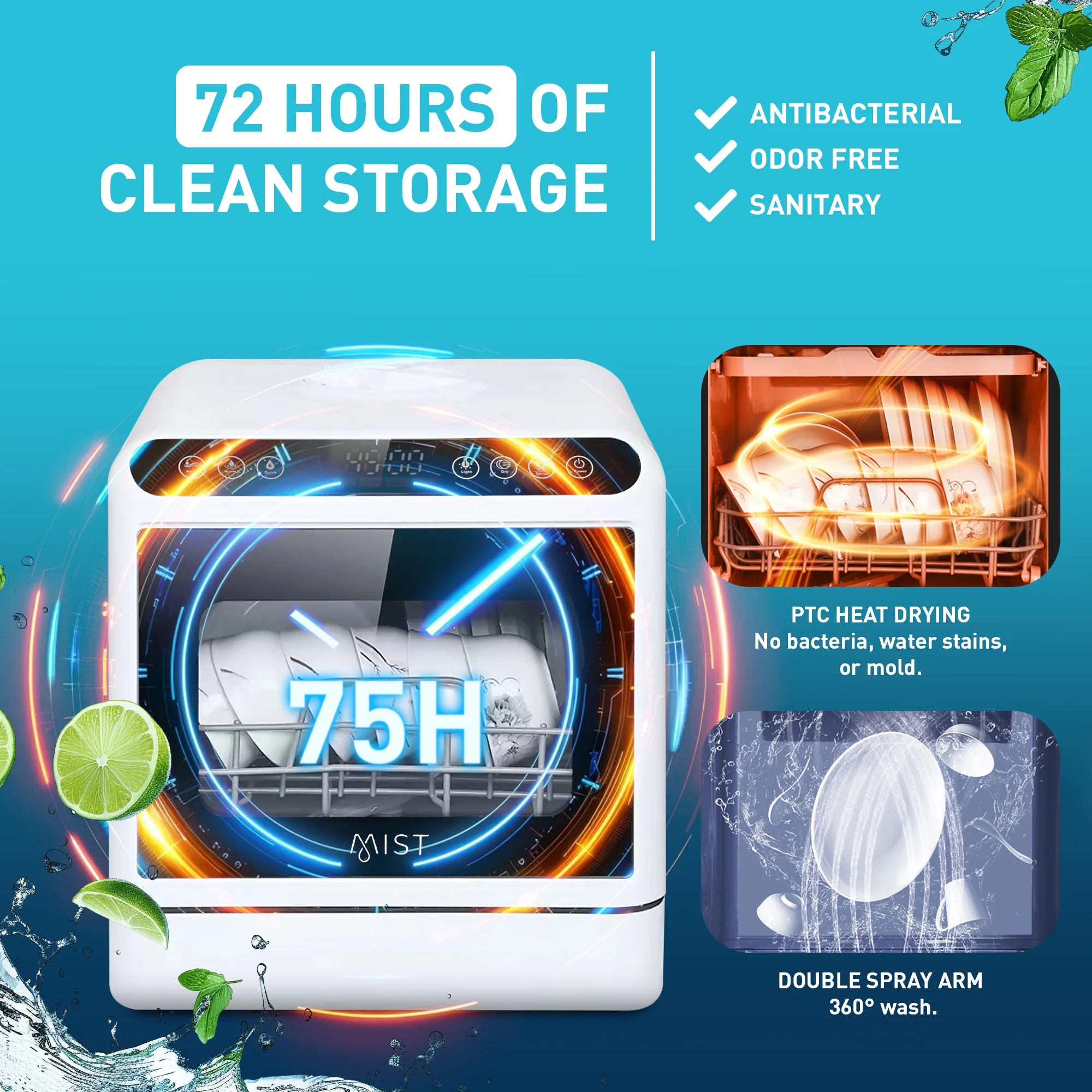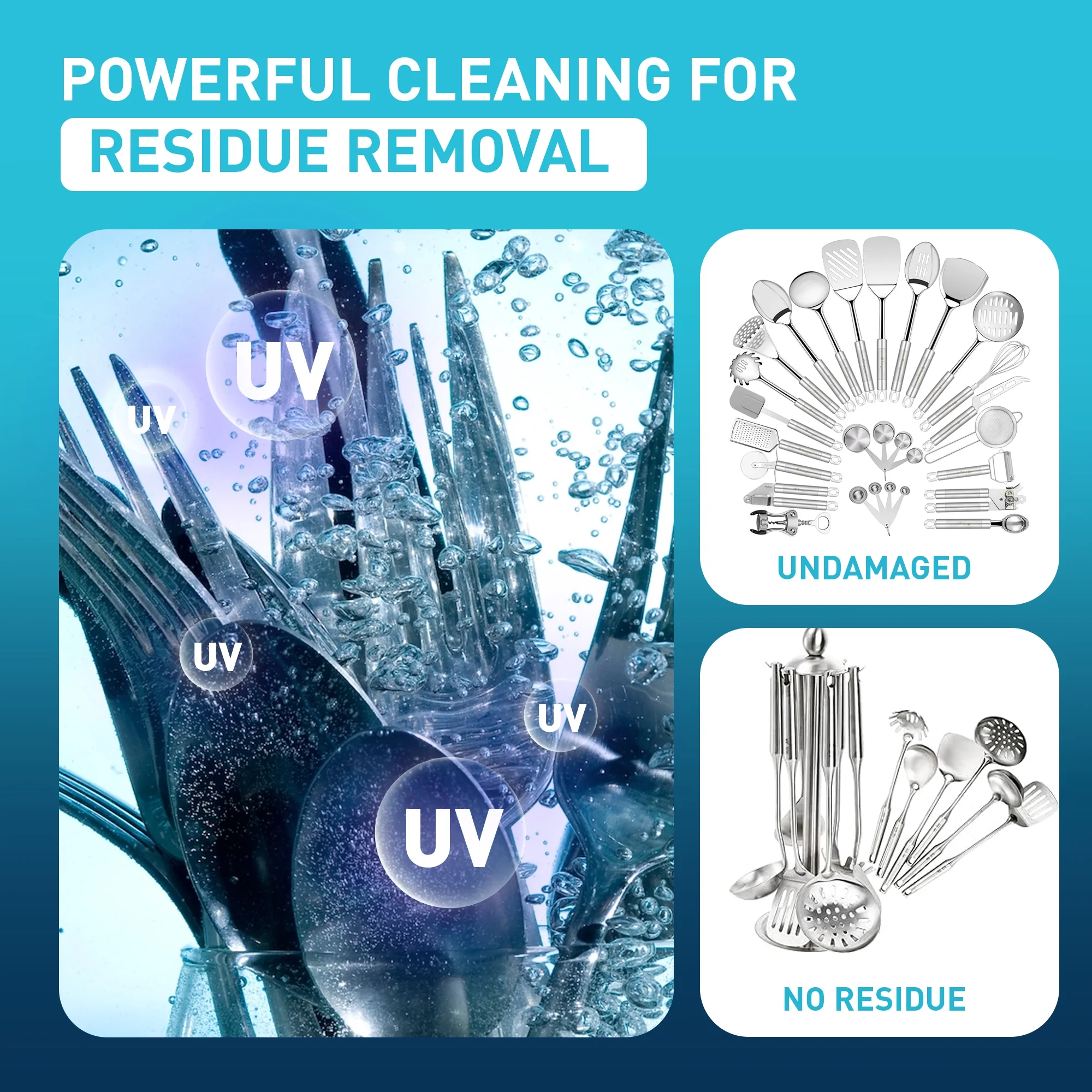 - High Pressure Cleaning + UV: Dual spray arms and UV sanitization