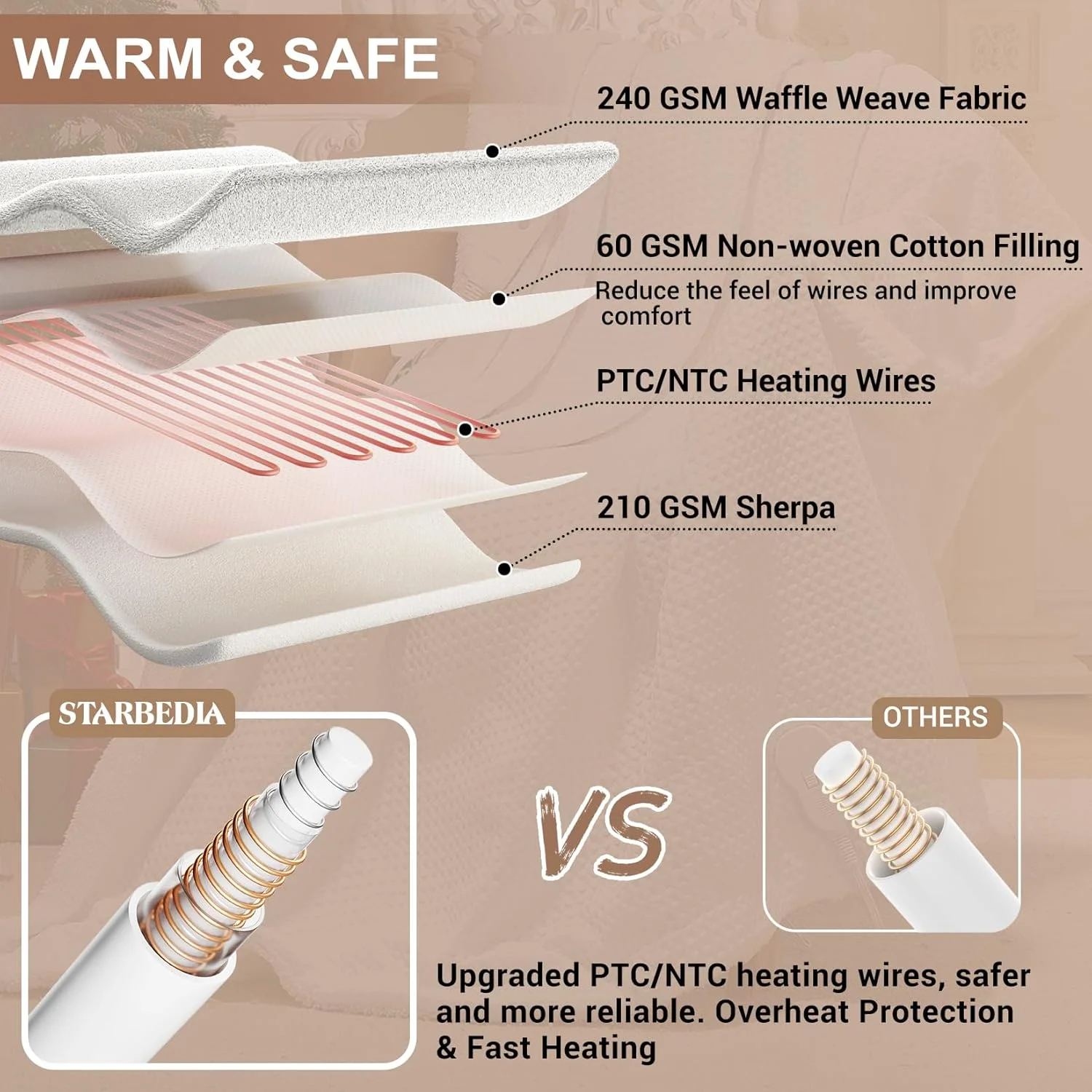 - Reliable Safety Features: Your safety is our top priority. This ETL certified heated blanket comes with smart heating wires that continuously monitor and regulate the temperature for safe use. You can relax and unwind in complete comfort, knowing that this blanket is designed with your well-being in mind.