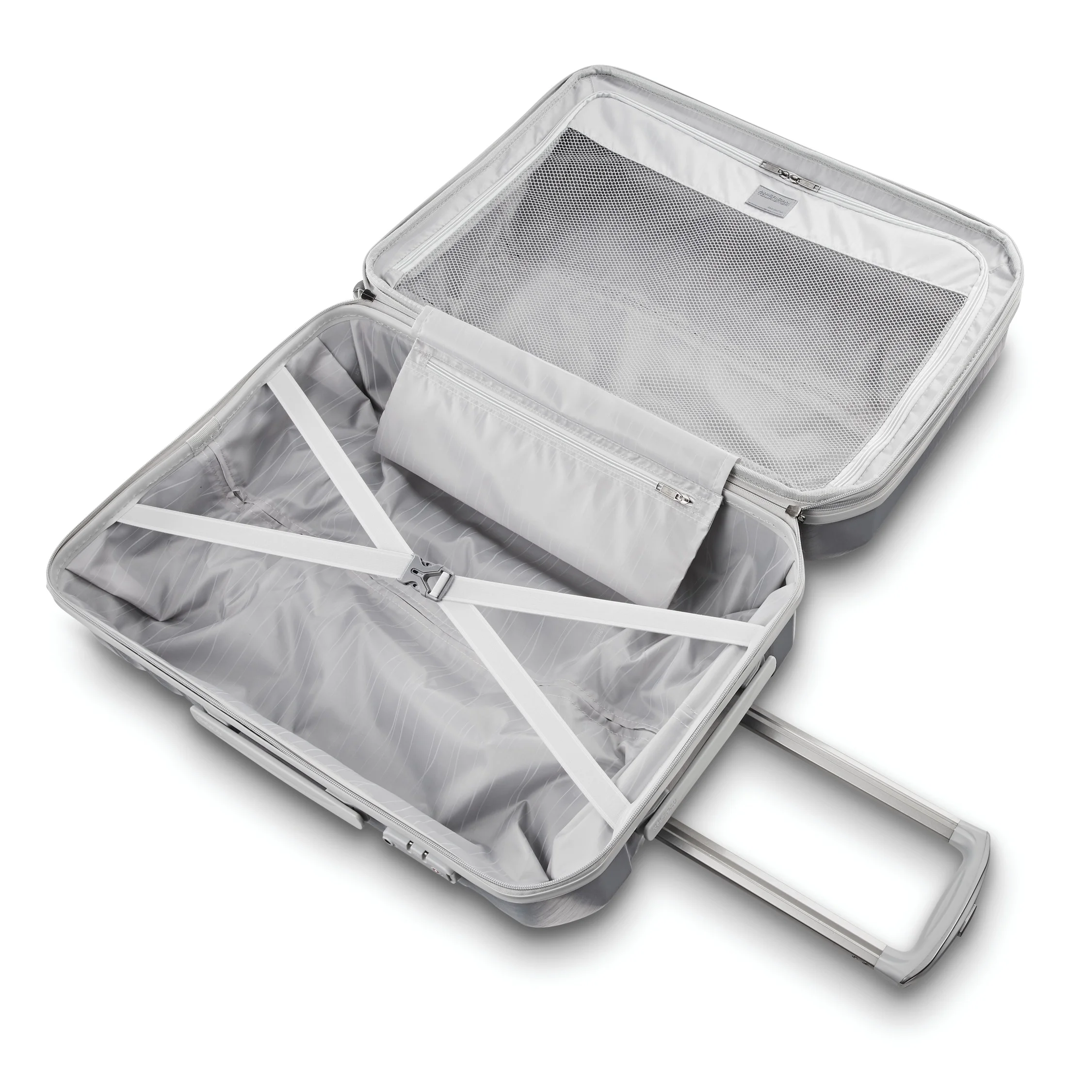 - Fully featured interior with modesty pocket, cross straps, and mesh divider panel