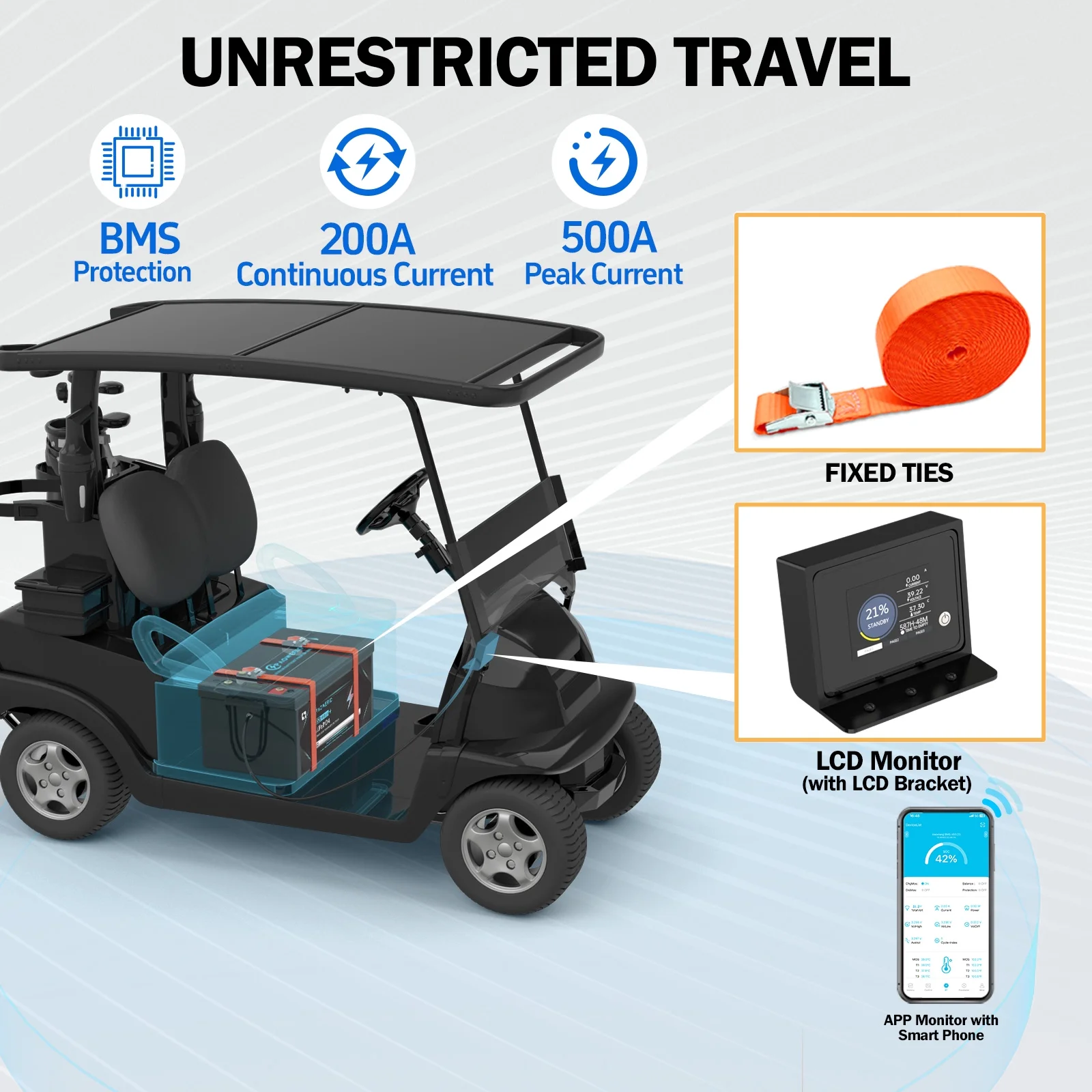 - ��Intelligent monitoring��Tailor-made intelligent devices support APP and display two ways to monitor the battery, can be more convenient, intelligent management of lithium batteries, you can real-time monitoring to understand the state of lithium batteries.