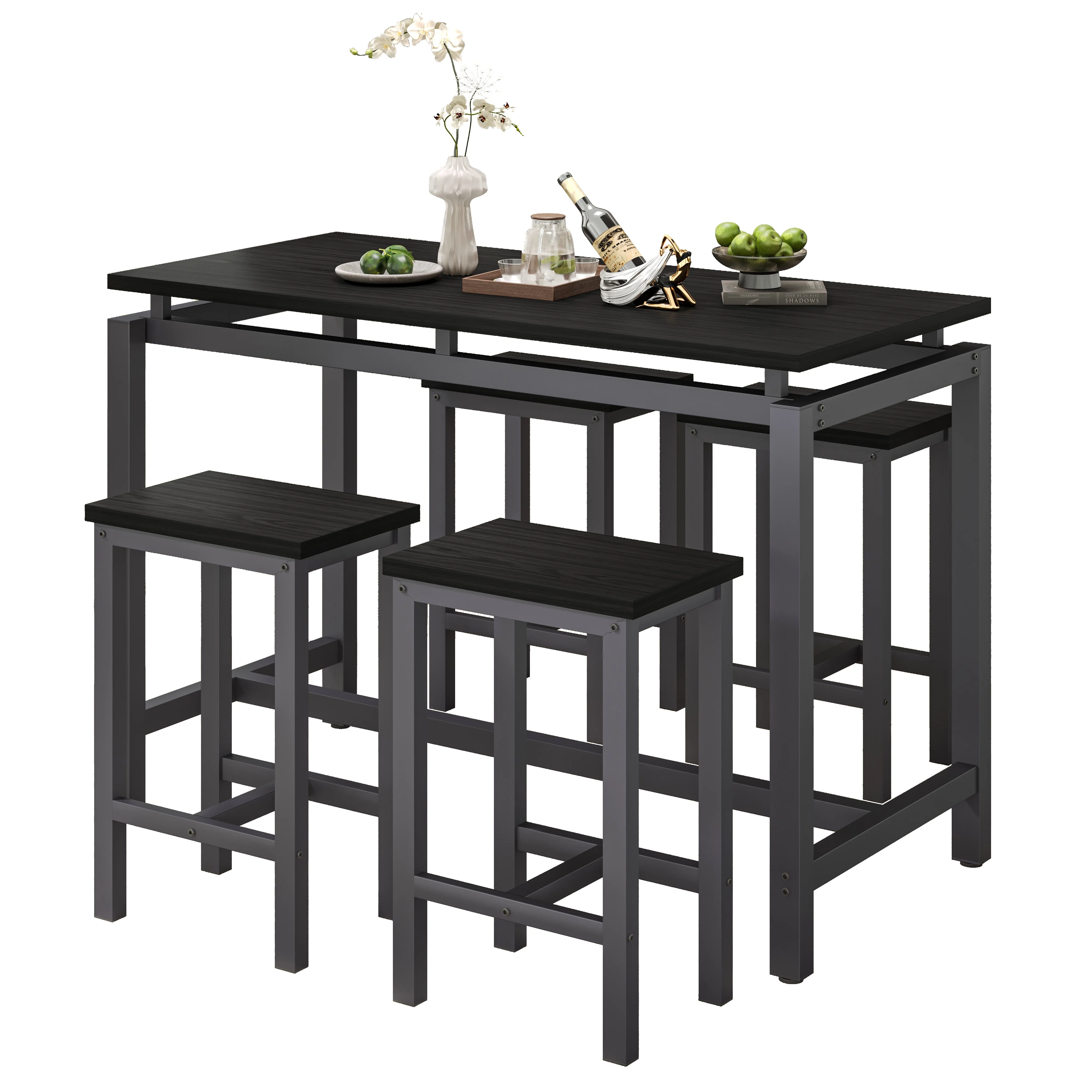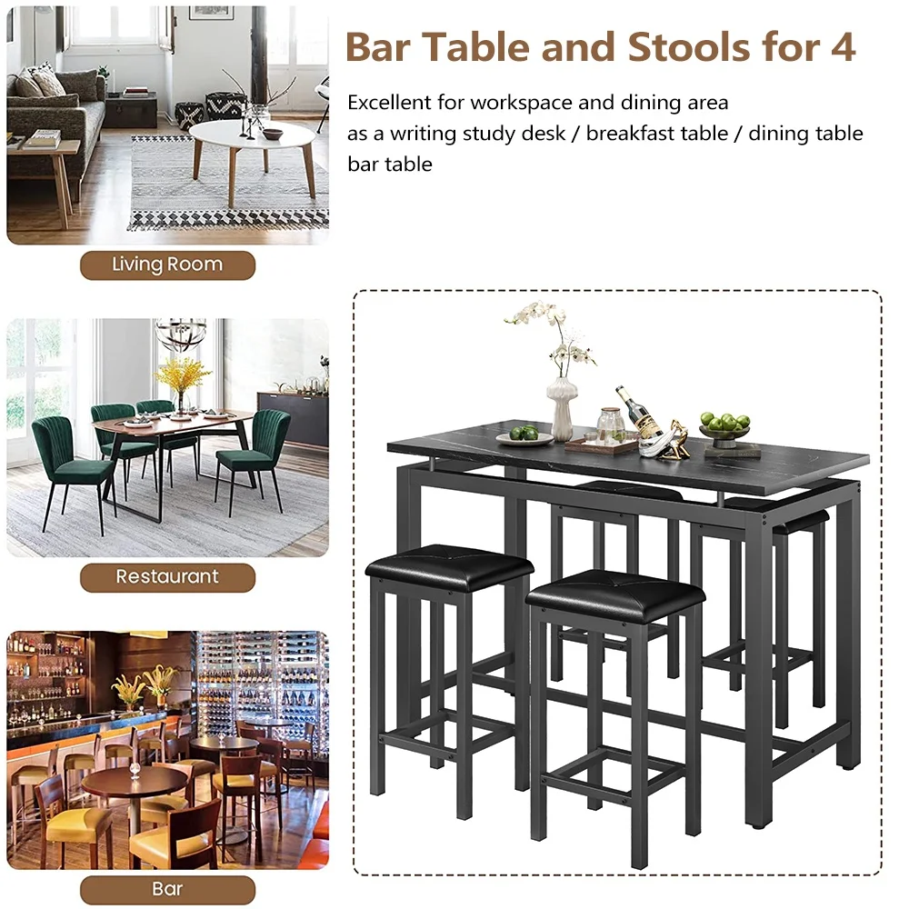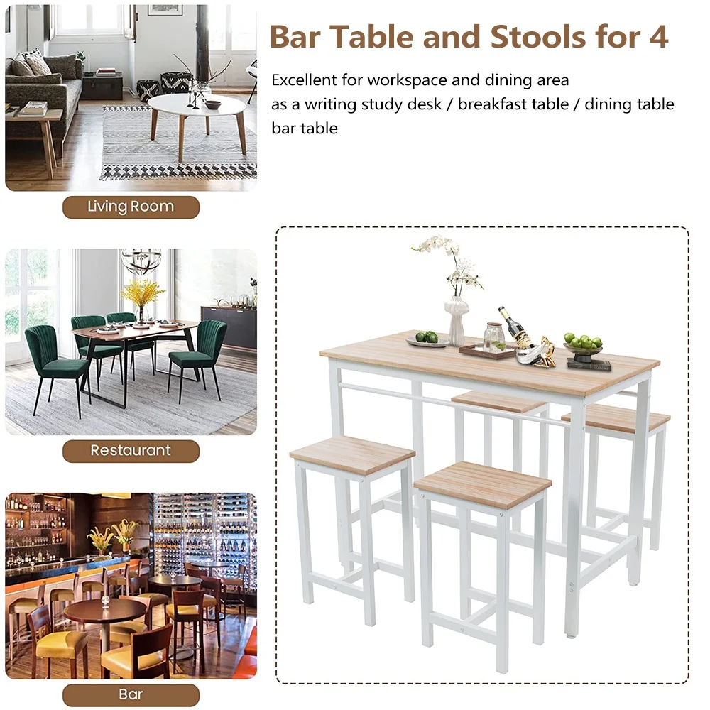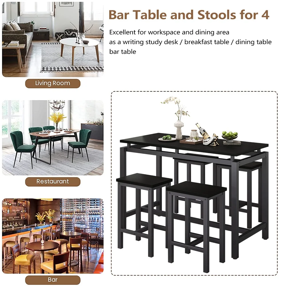 Our modern bar table set with 4 counter height stools has wide application. It is suitable for dorm, apartment, home, bistro, pubs, as well as your home, like the kitchen or dining room.