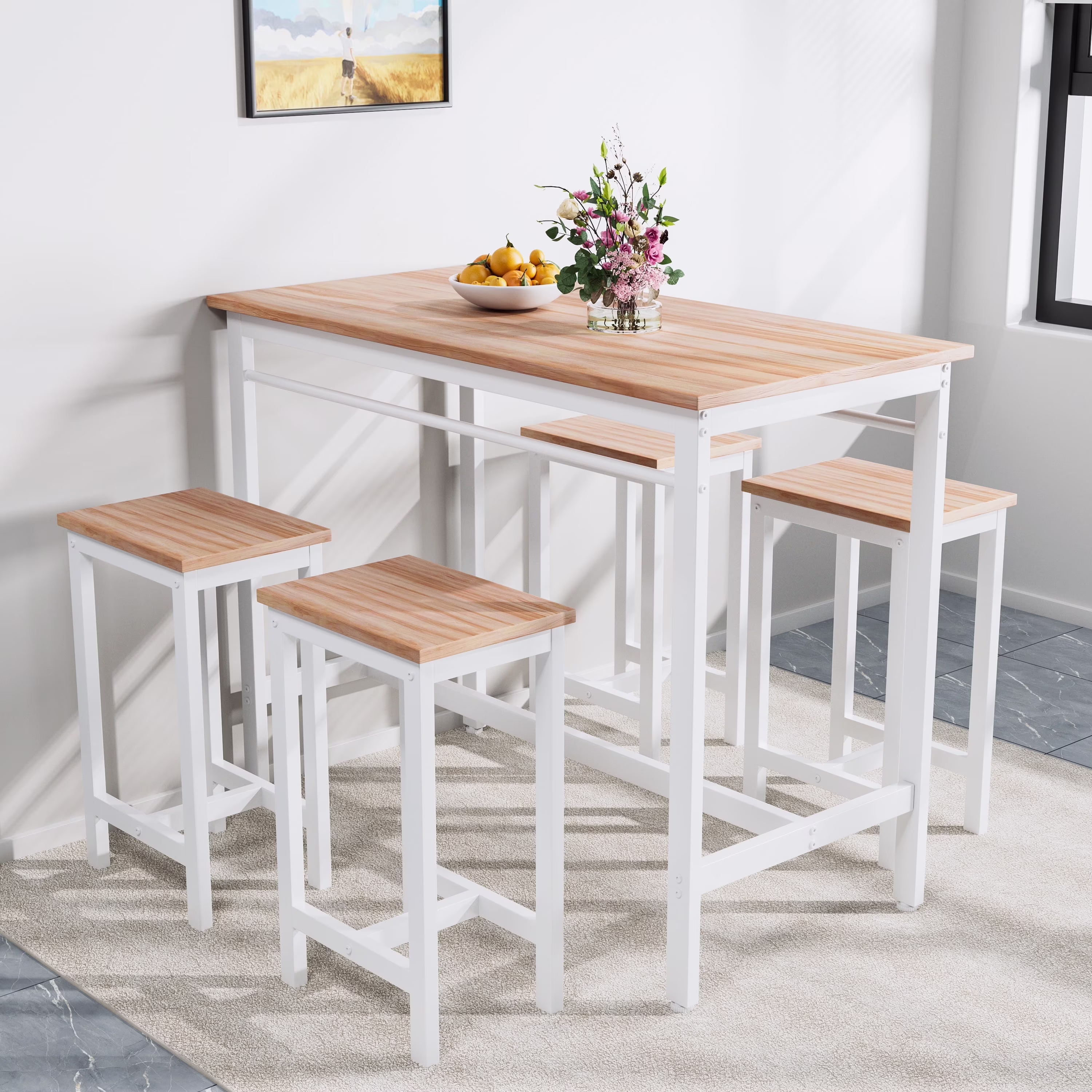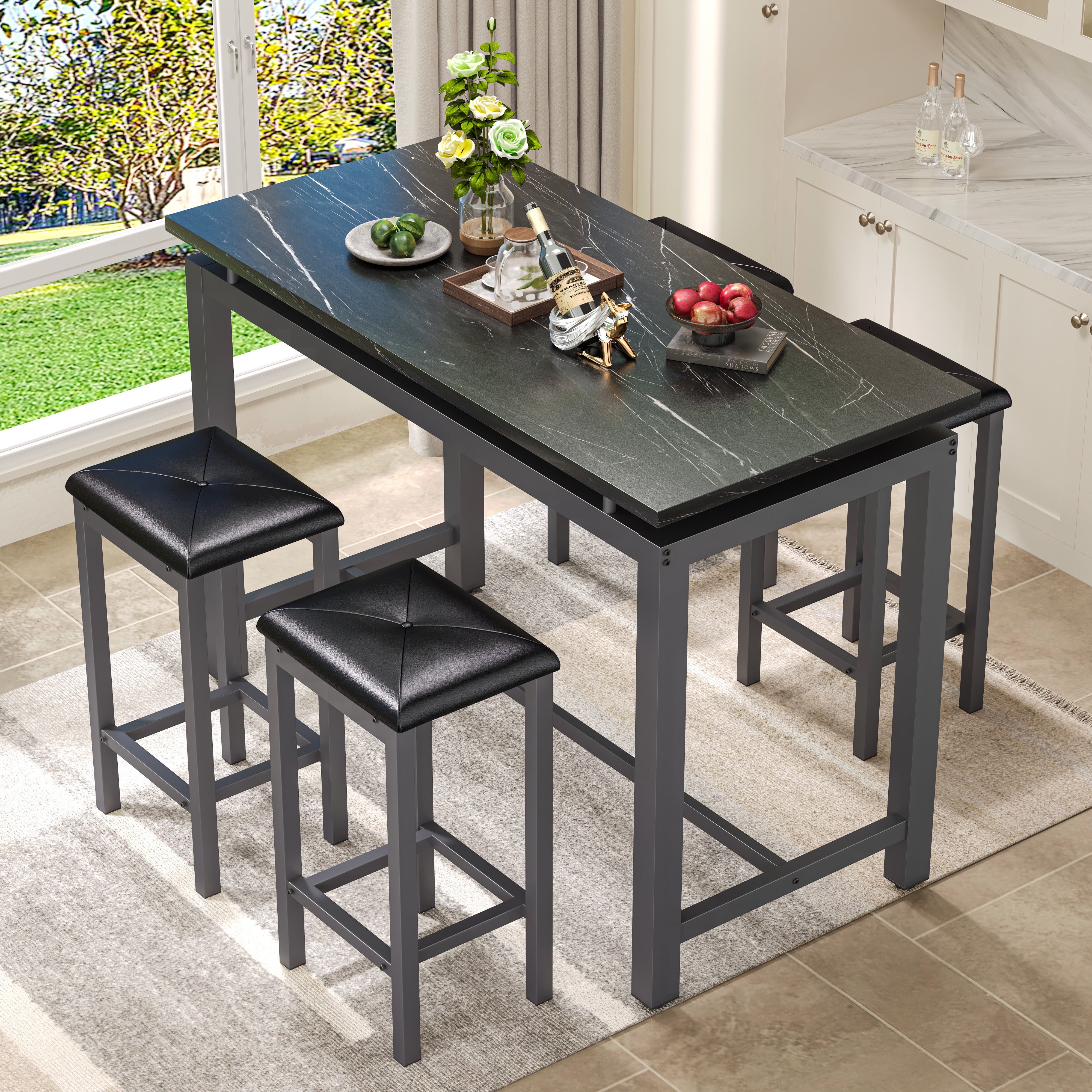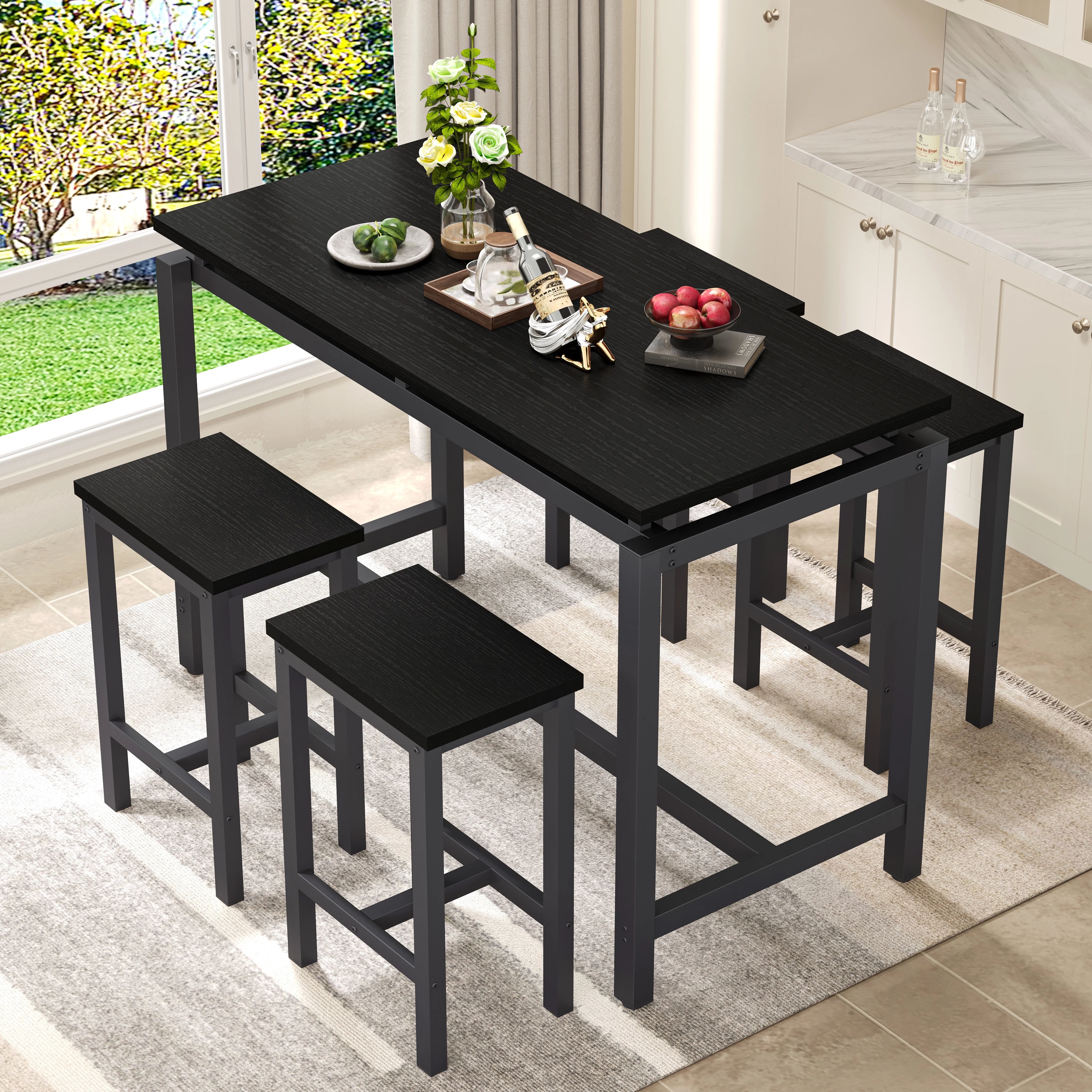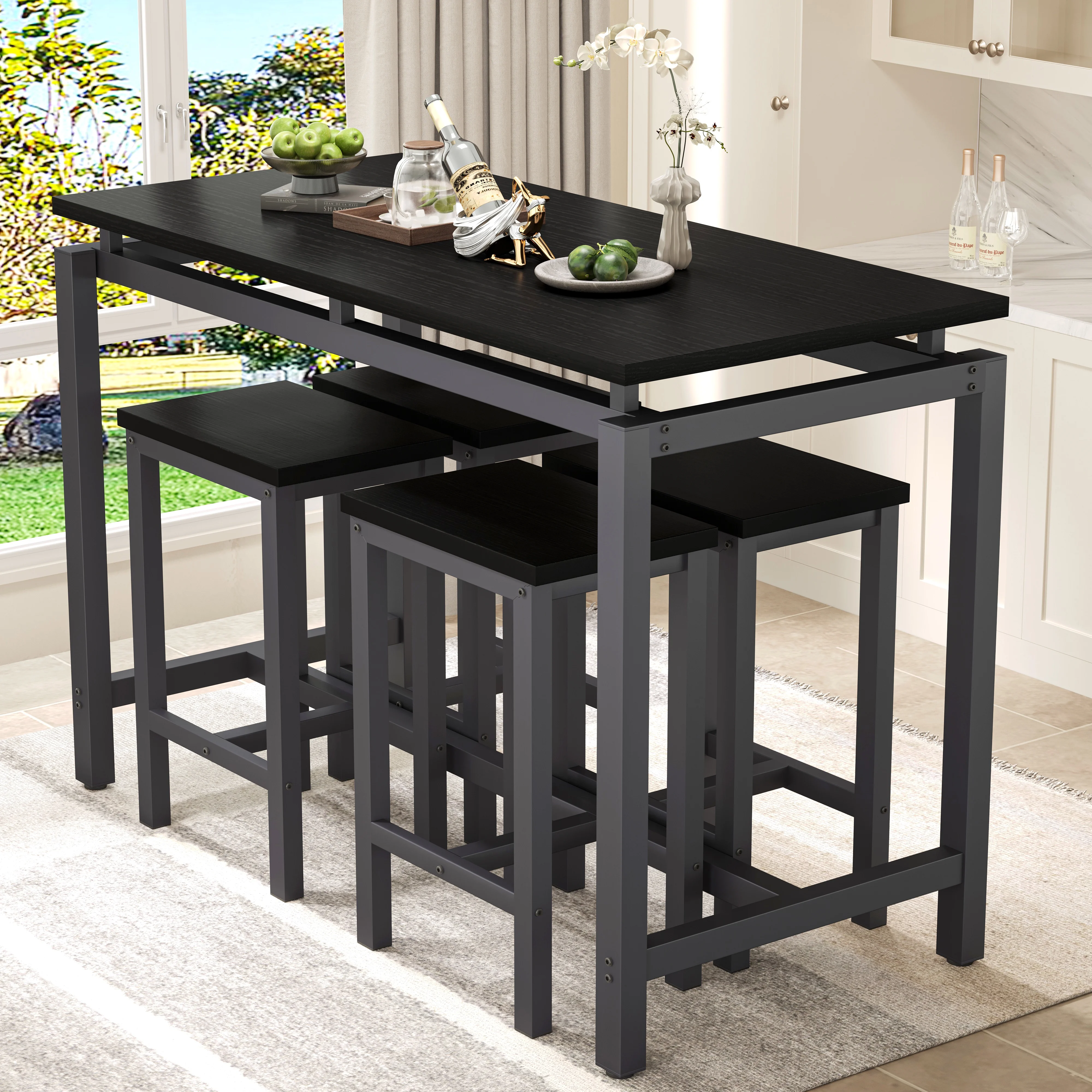 Our modern bar table set with 4 counter height stools has wide application. It is suitable for dorm, apartment, home, bistro, pubs, as well as your home, like the kitchen or dining room.