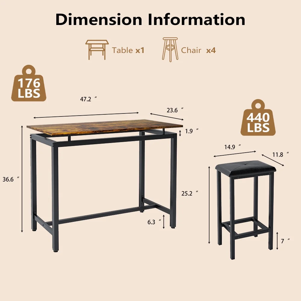 ?[Simple & Stylish Pub Style] - Designed with a simple pub-style. This dining room table set features a relaxed and stylish look, which will perfectly blend into any home d��cor and add the natural atmosphere. It is perfect for an office, restaurant, kitchen, living room and other places.
